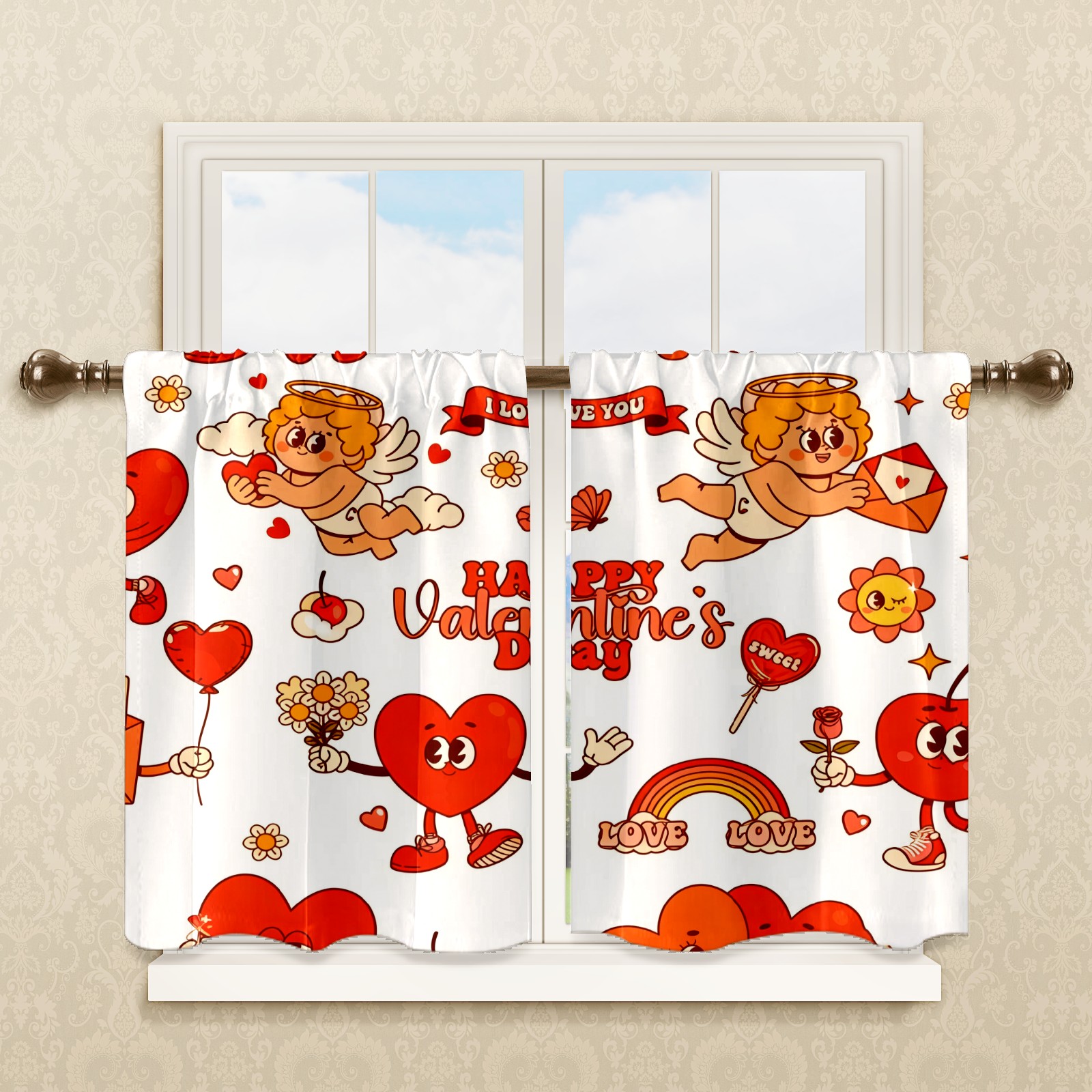 Шторы-панно для дома, декоративные драпировки для гостиной и спальни, легкие и прочные, Cheerful Valentine's Orange