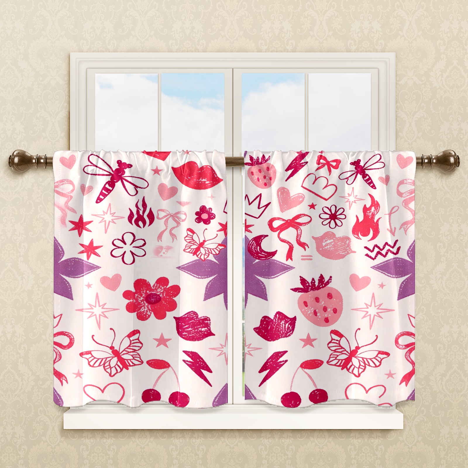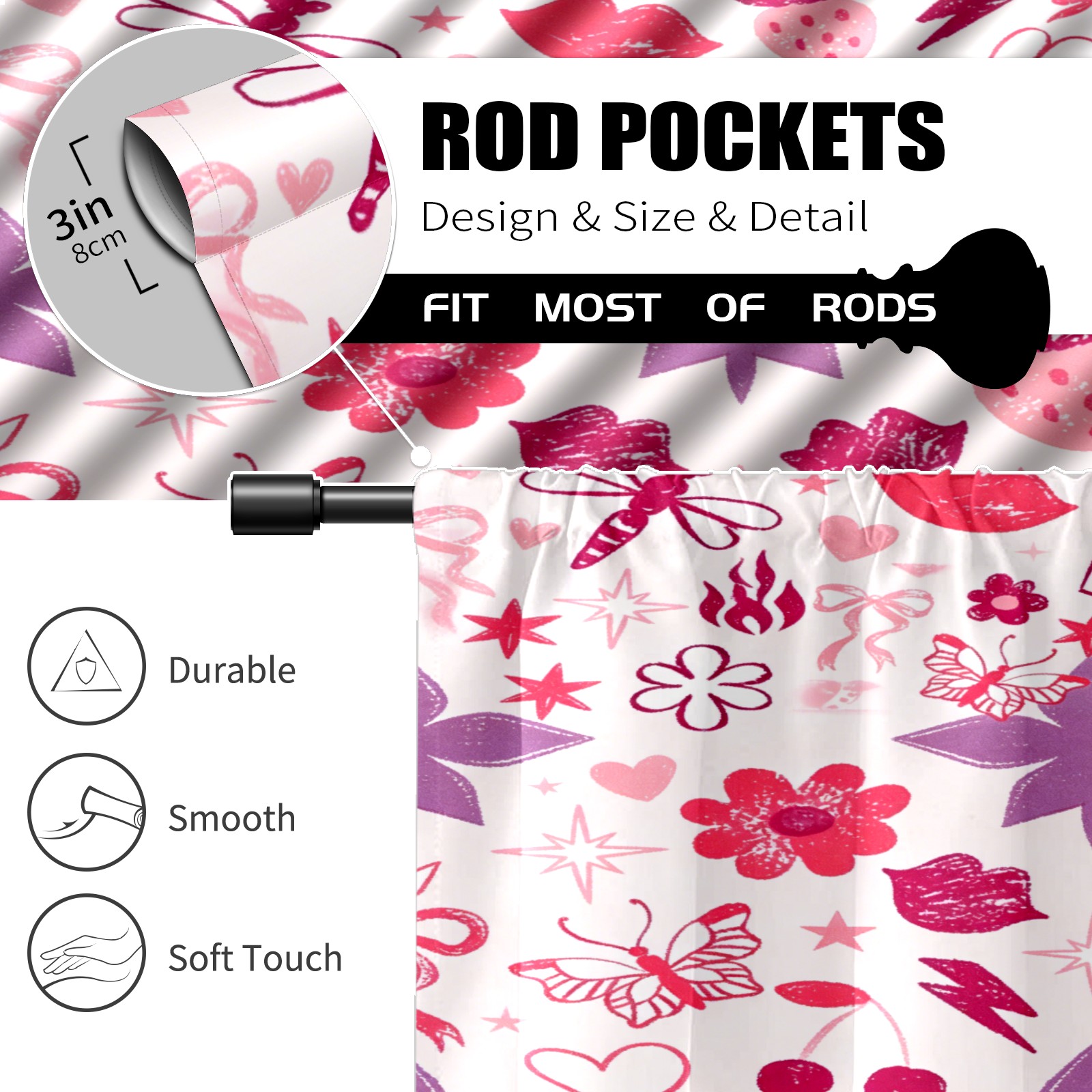 Шторы-панно для дома, декоративные драпировки для гостиной и спальни, легкие и прочные, Soft Floral Heart Pink