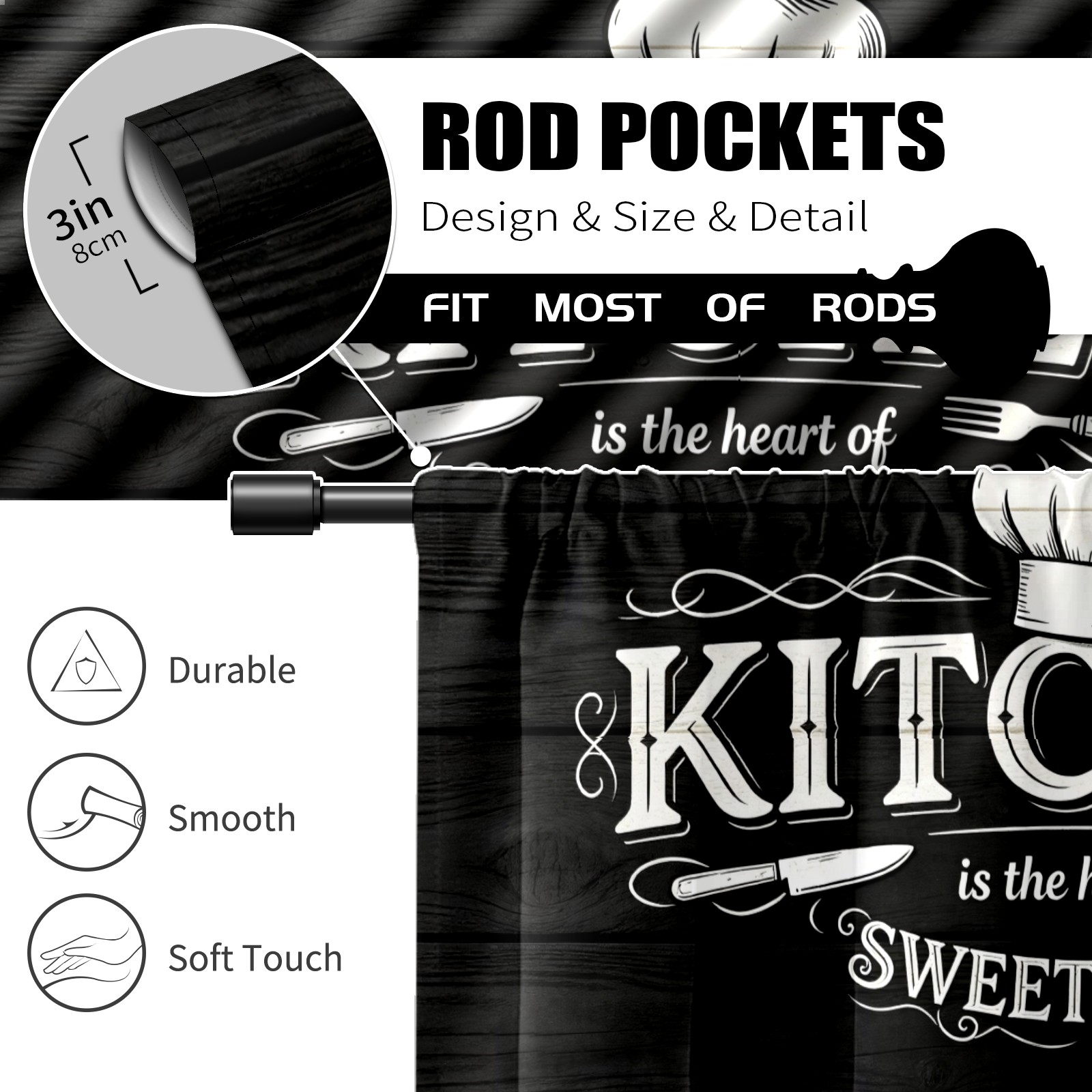 Шторы-панно для дома, декоративные драпировки для гостиной и спальни, легкие и прочные, Kitchen Is The Heart Of Sweet Home(044)