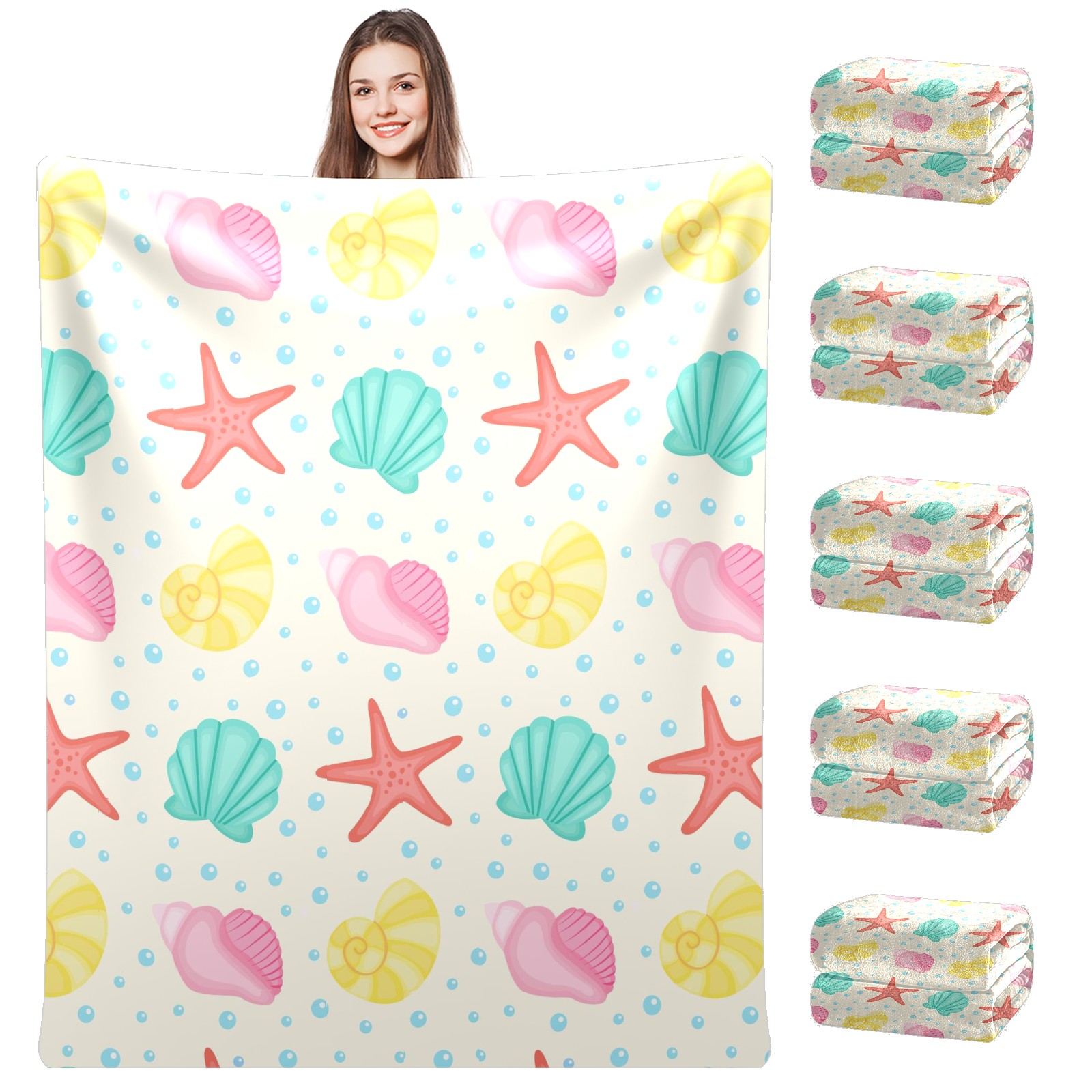 Flannel Blanket, Ultra-Soft Comfortable Home Decor Rug, The Perfect Comfort Gift for Both Men Women, Suitable for Beds, Sofas, Loungewear, and Travel 30x39in(貝殻 カラー かわいい)
