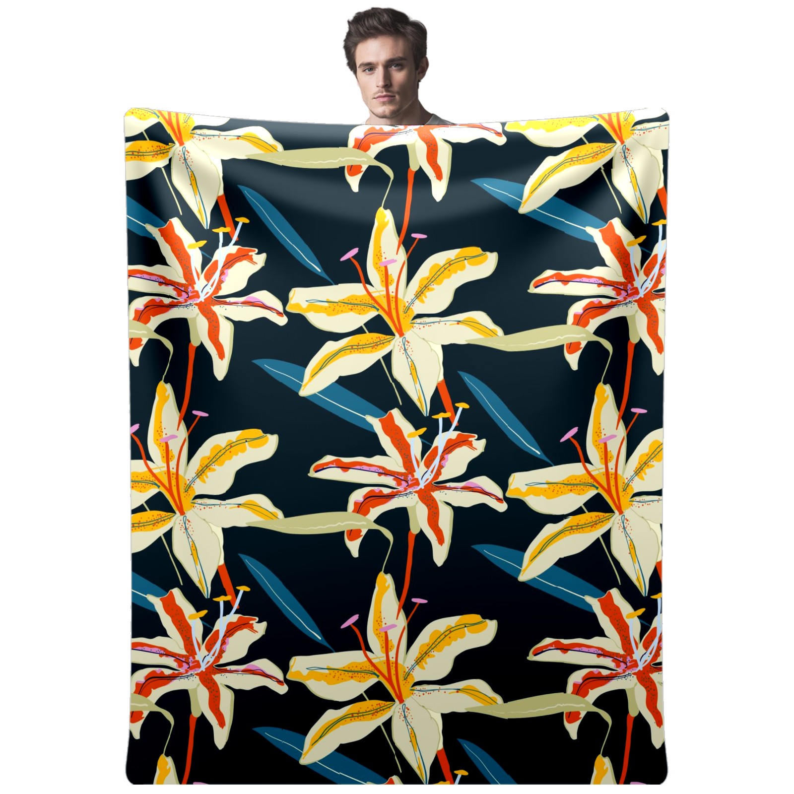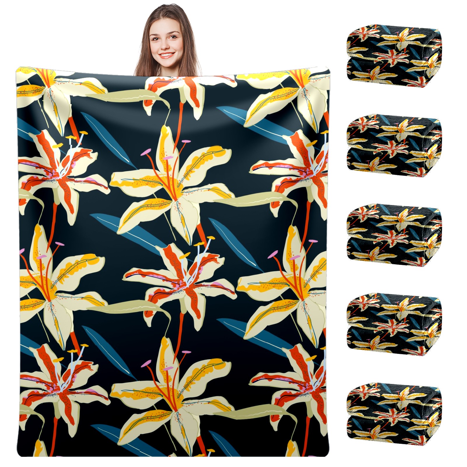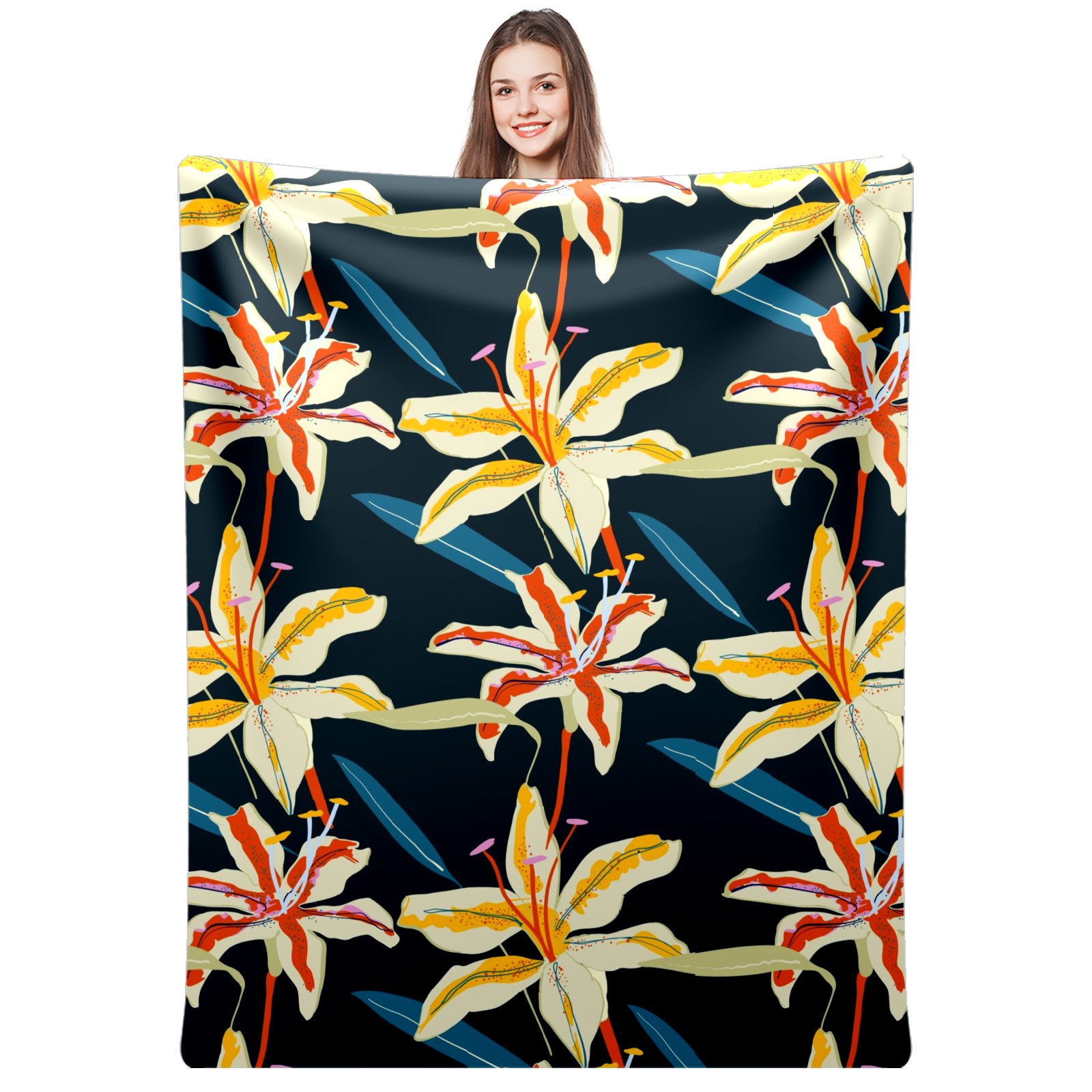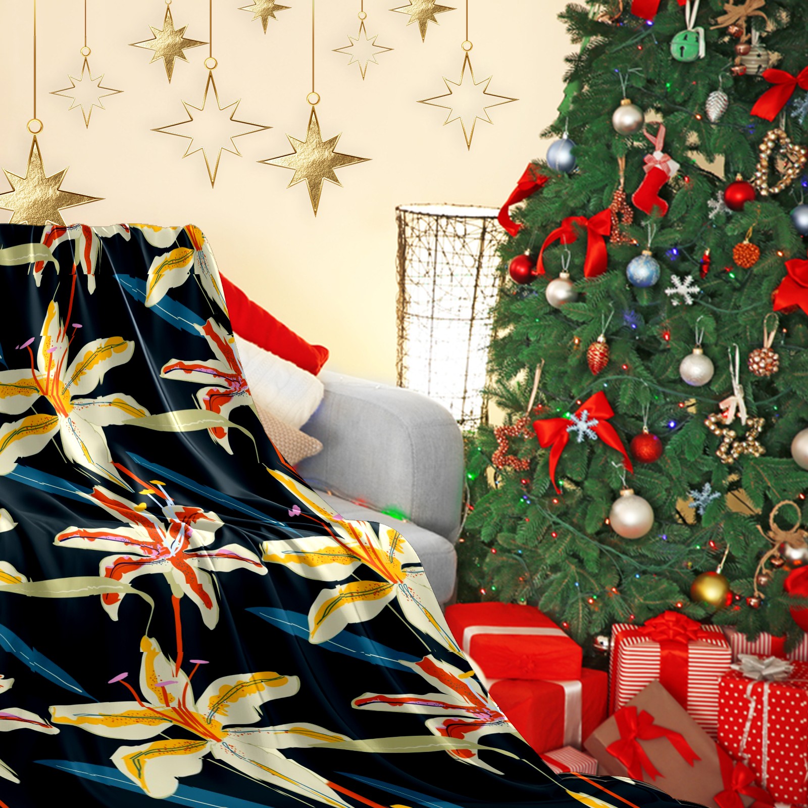 Flannel Blanket, Ultra-Soft Comfortable Home Decor Rug, The Perfect Comfort Gift for Both Men Women, Suitable for Beds, Sofas, Loungewear, and Travel 30x39in(百合 花柄 黒い)