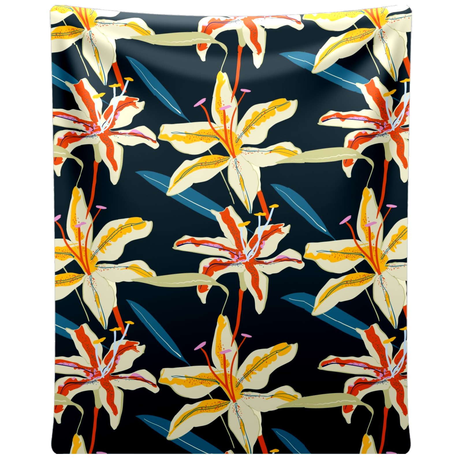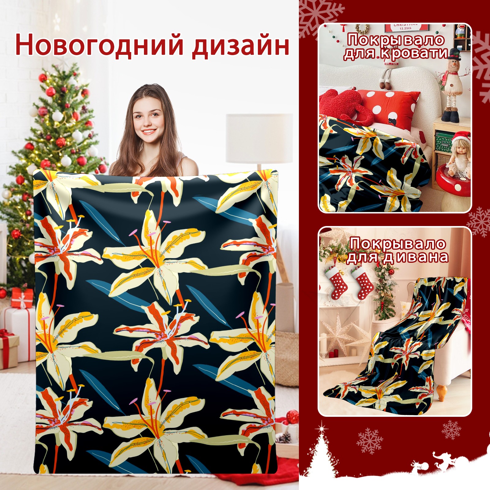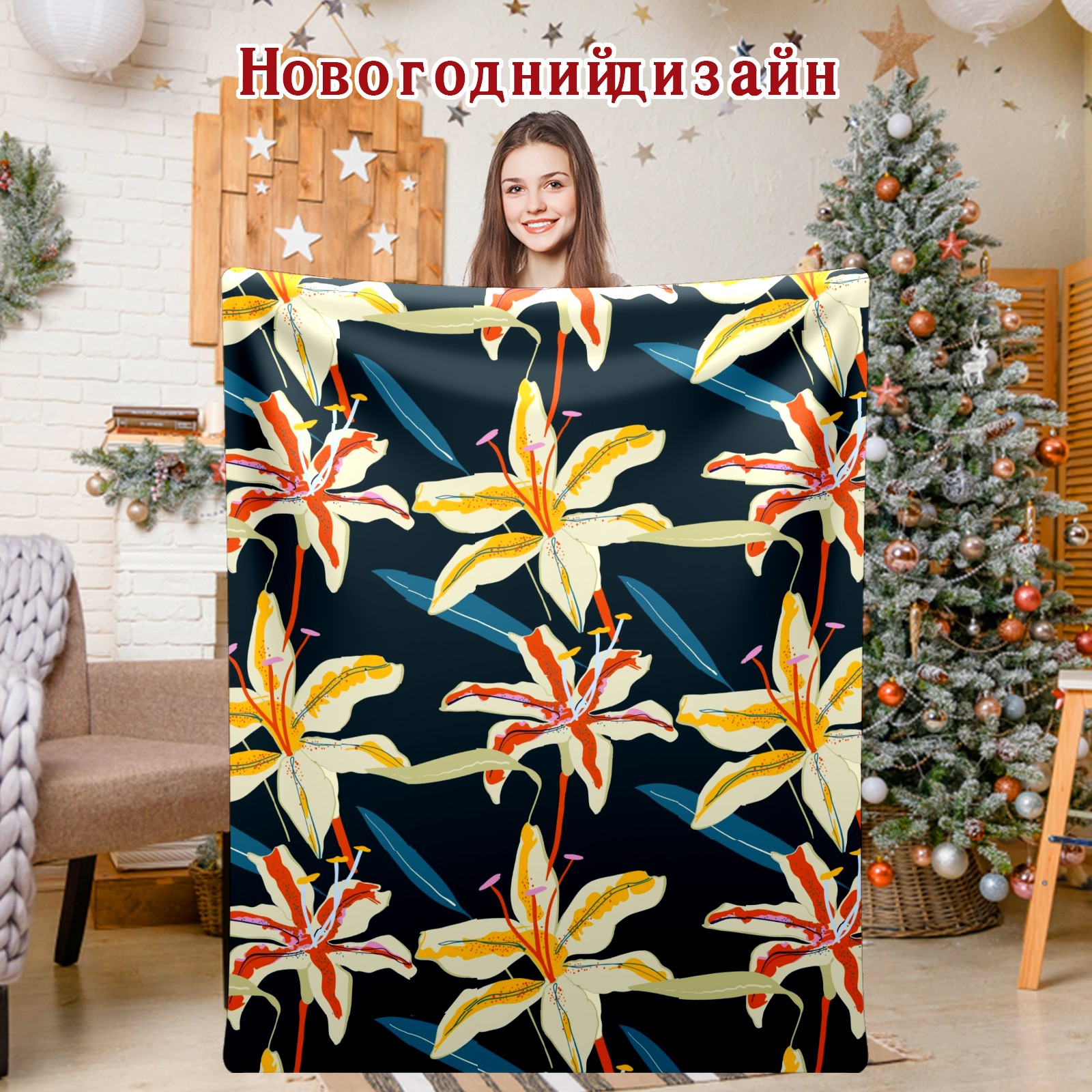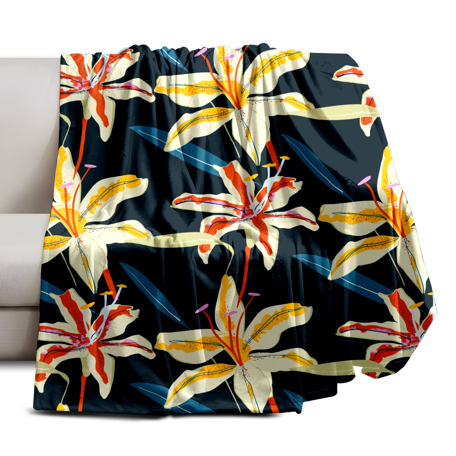 Flannel Blanket, Ultra-Soft Comfortable Home Decor Rug, The Perfect Comfort Gift for Both Men Women, Suitable for Beds, Sofas, Loungewear, and Travel 30x39in(百合 花柄 黒い)