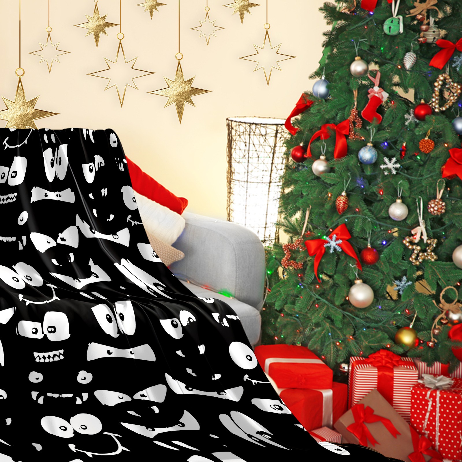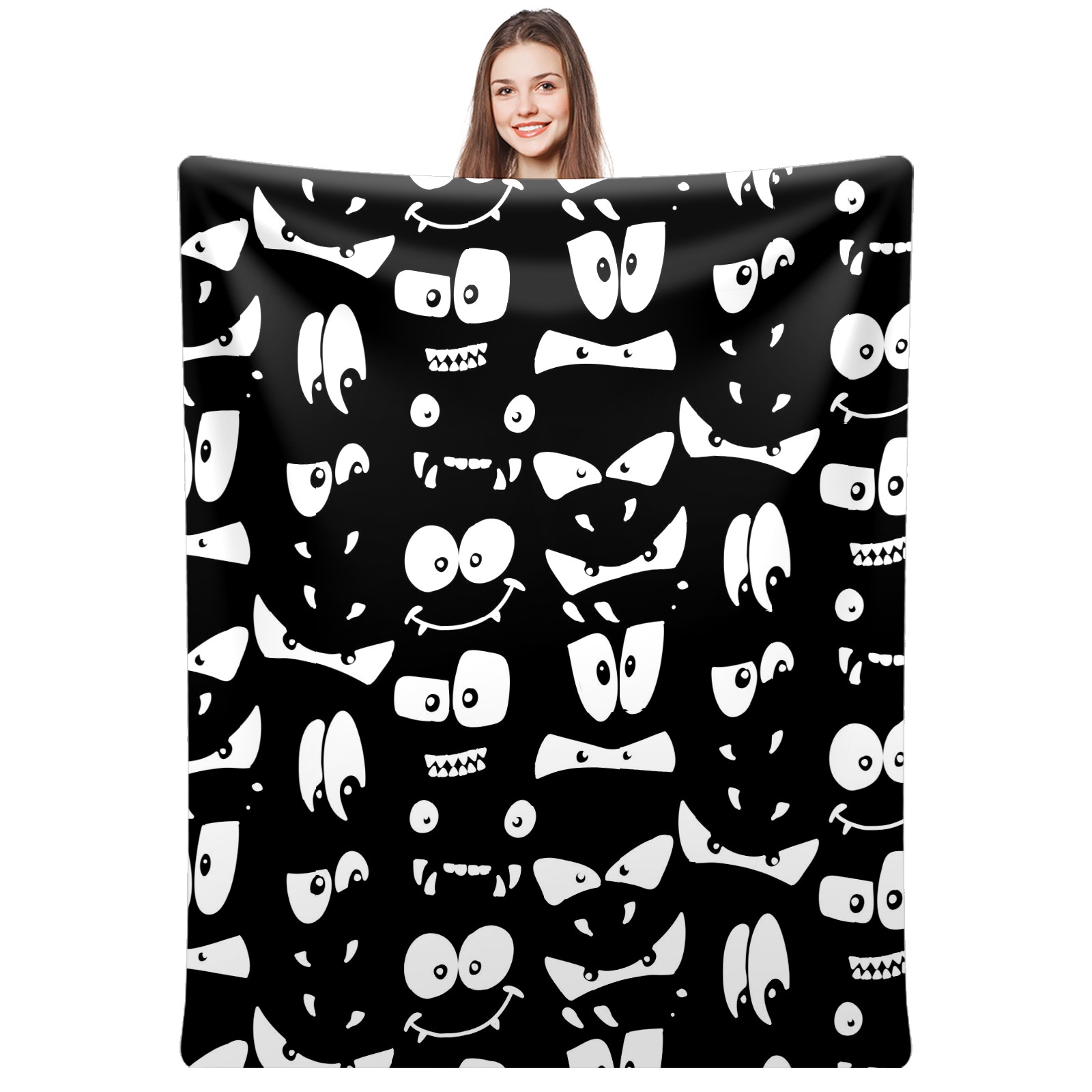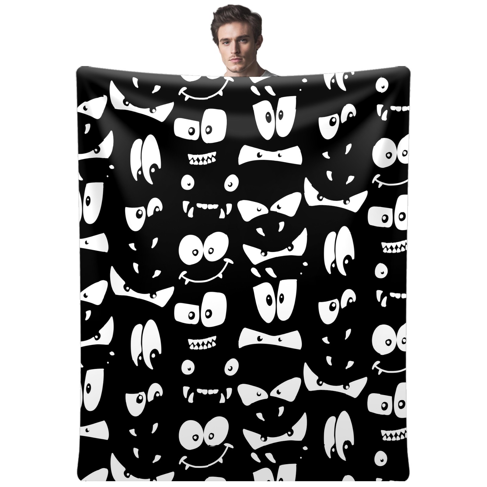 Flannel Blanket, Ultra-Soft Comfortable Home Decor Rug, The Perfect Comfort Gift for Both Men Women, Suitable for Beds, Sofas, Loungewear, and Travel 30x39in(白黒 かわいい 目)
