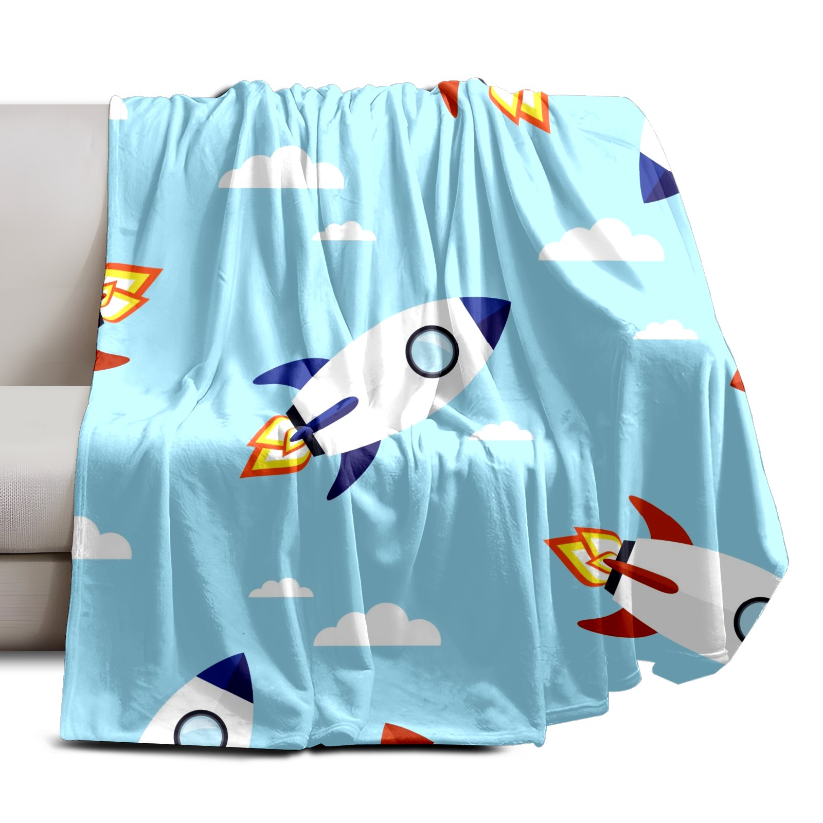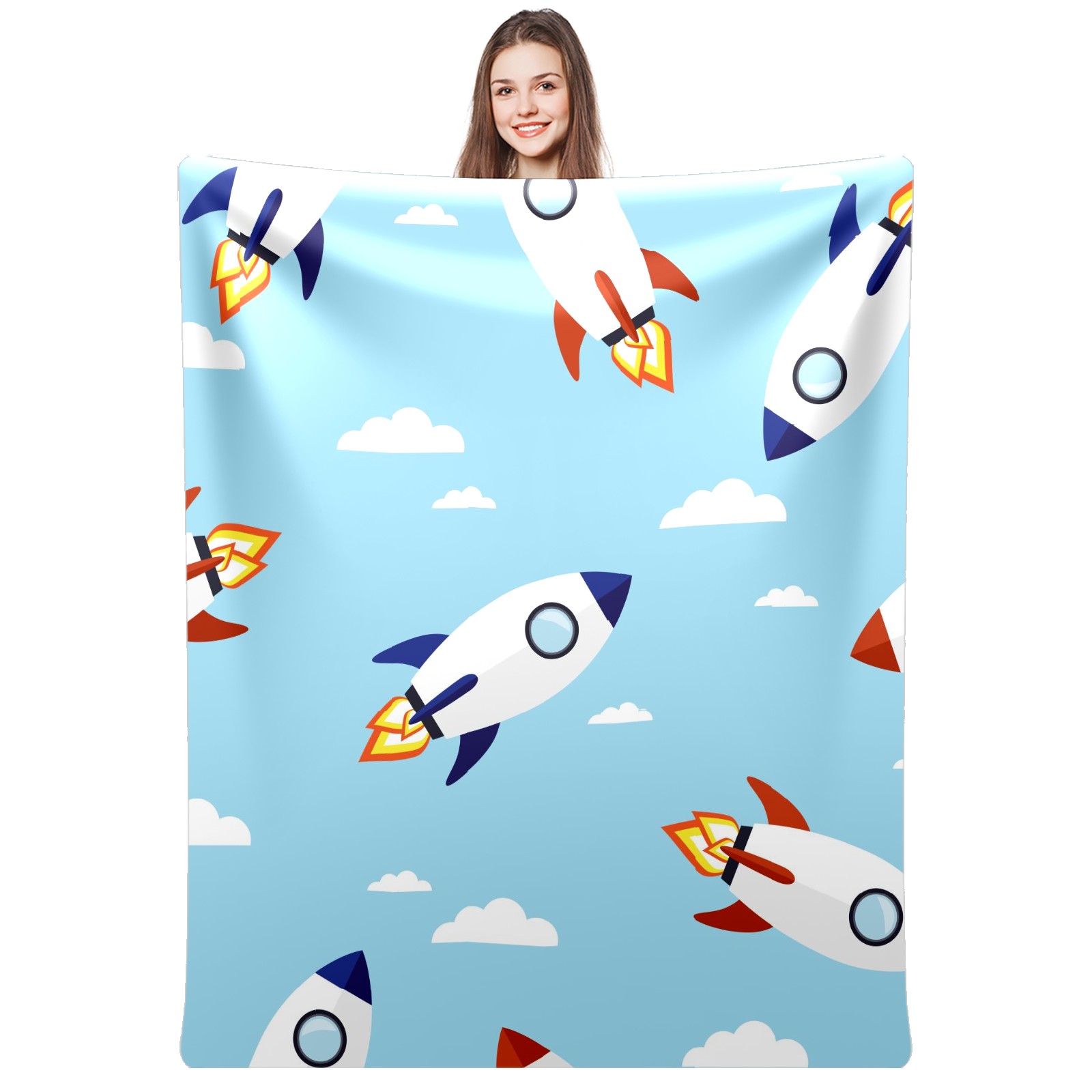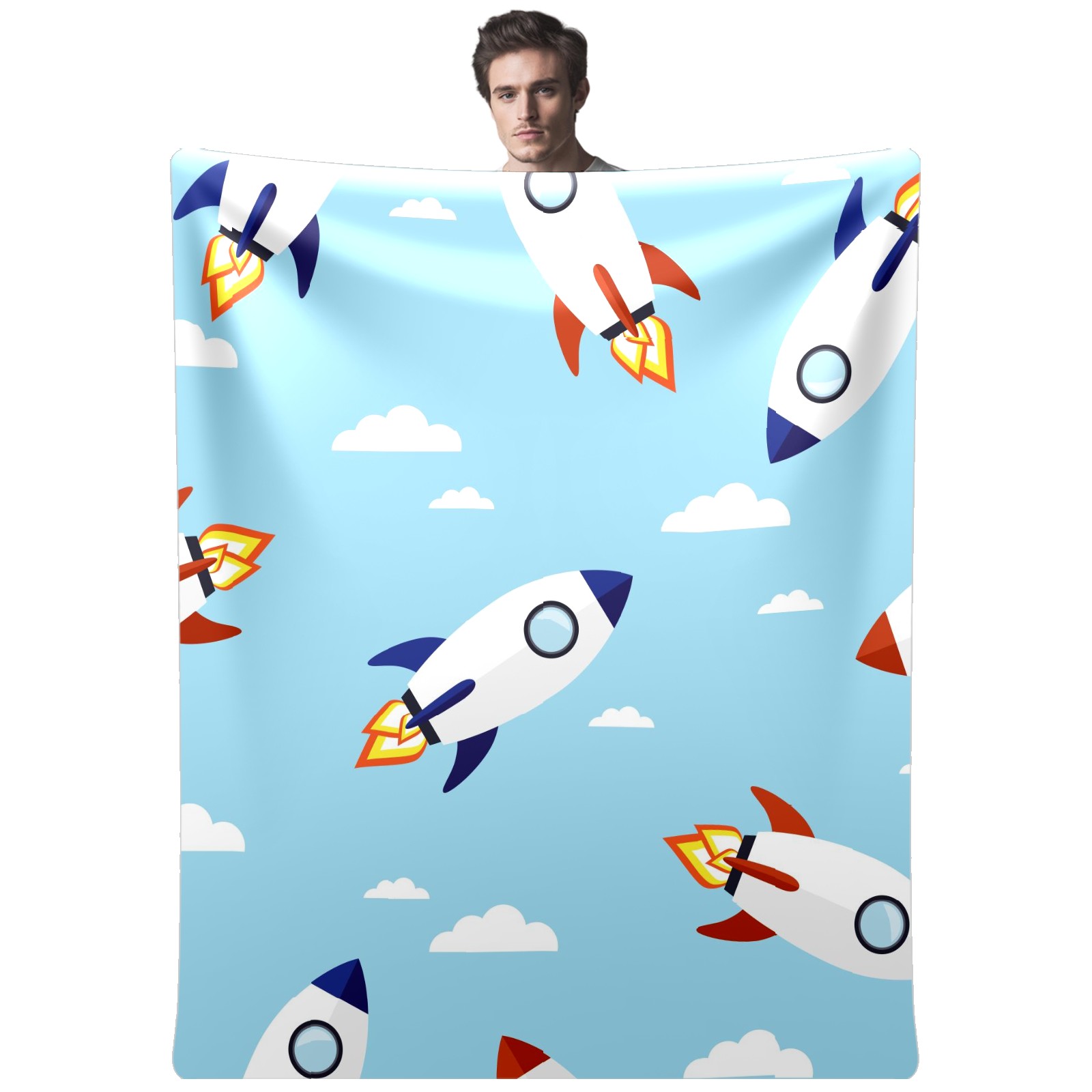 Flannel Blanket, Ultra-Soft Comfortable Home Decor Rug, The Perfect Comfort Gift for Both Men Women, Suitable for Beds, Sofas, Loungewear, and Travel 30x39in(ロケット柄 青空 かわいい)