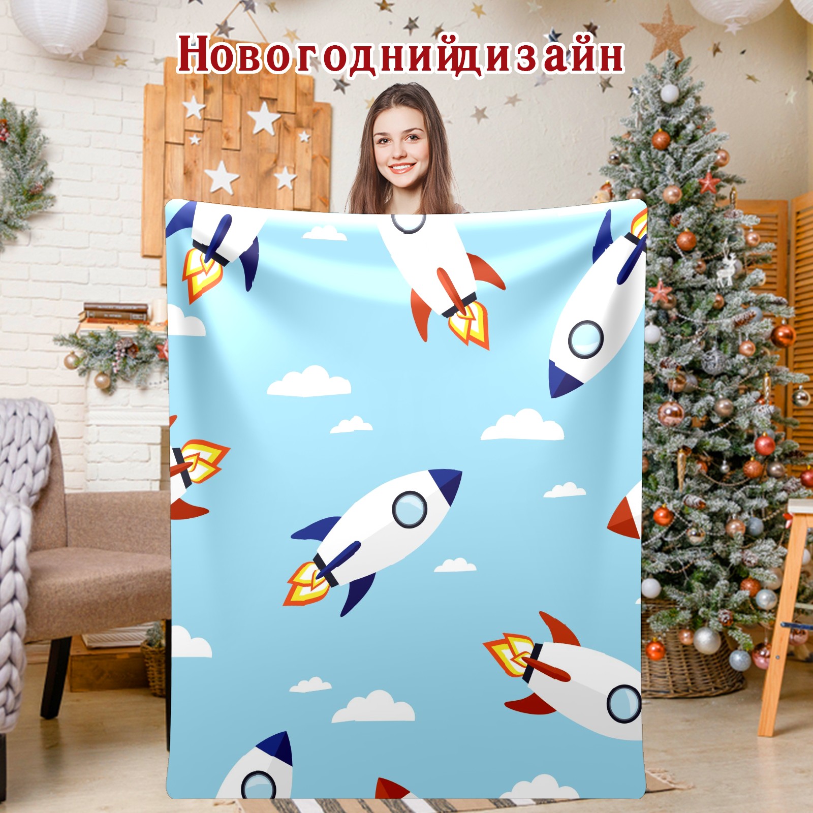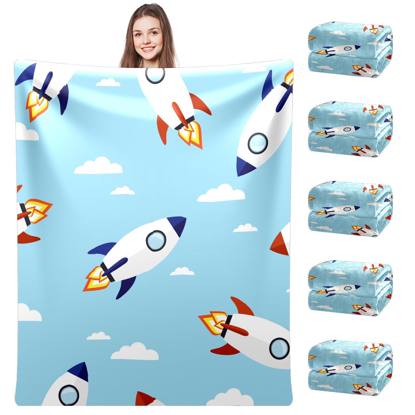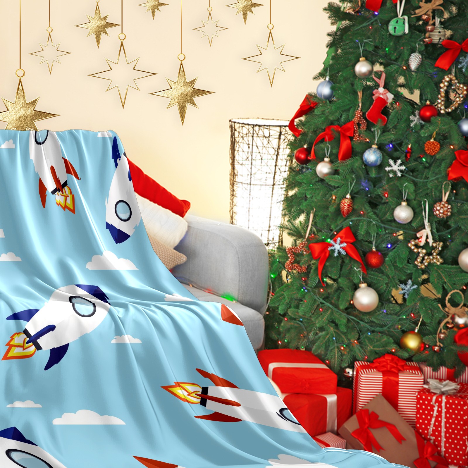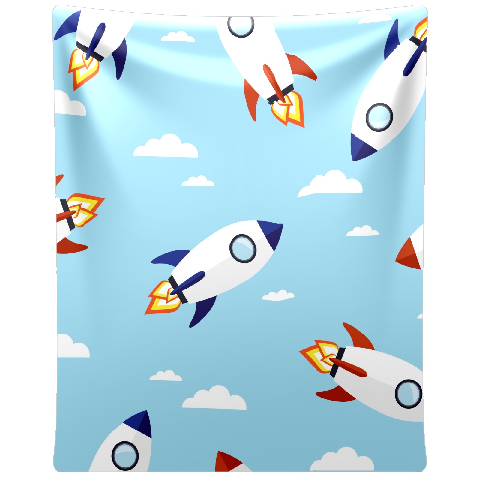 Flannel Blanket, Ultra-Soft Comfortable Home Decor Rug, The Perfect Comfort Gift for Both Men Women, Suitable for Beds, Sofas, Loungewear, and Travel 30x39in(ロケット柄 青空 かわいい)