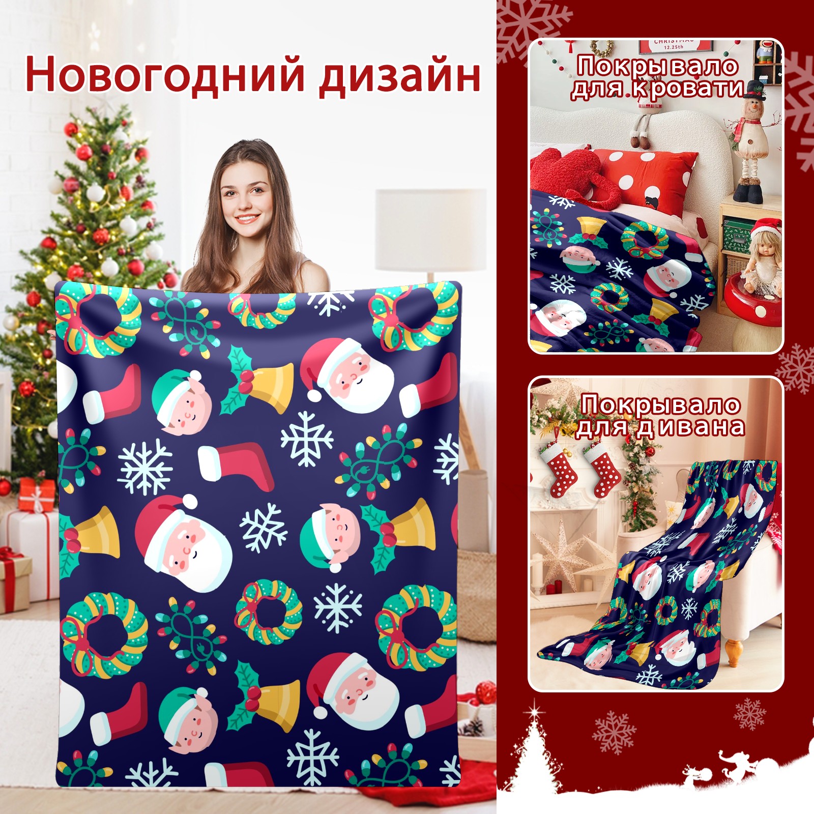 Flannel Blanket, Ultra-Soft Comfortable Home Decor Rug, The Perfect Comfort Gift for Both Men Women, Suitable for Beds, Sofas, Loungewear, and Travel 30x39in(サンタクロース 雪 かわいい)