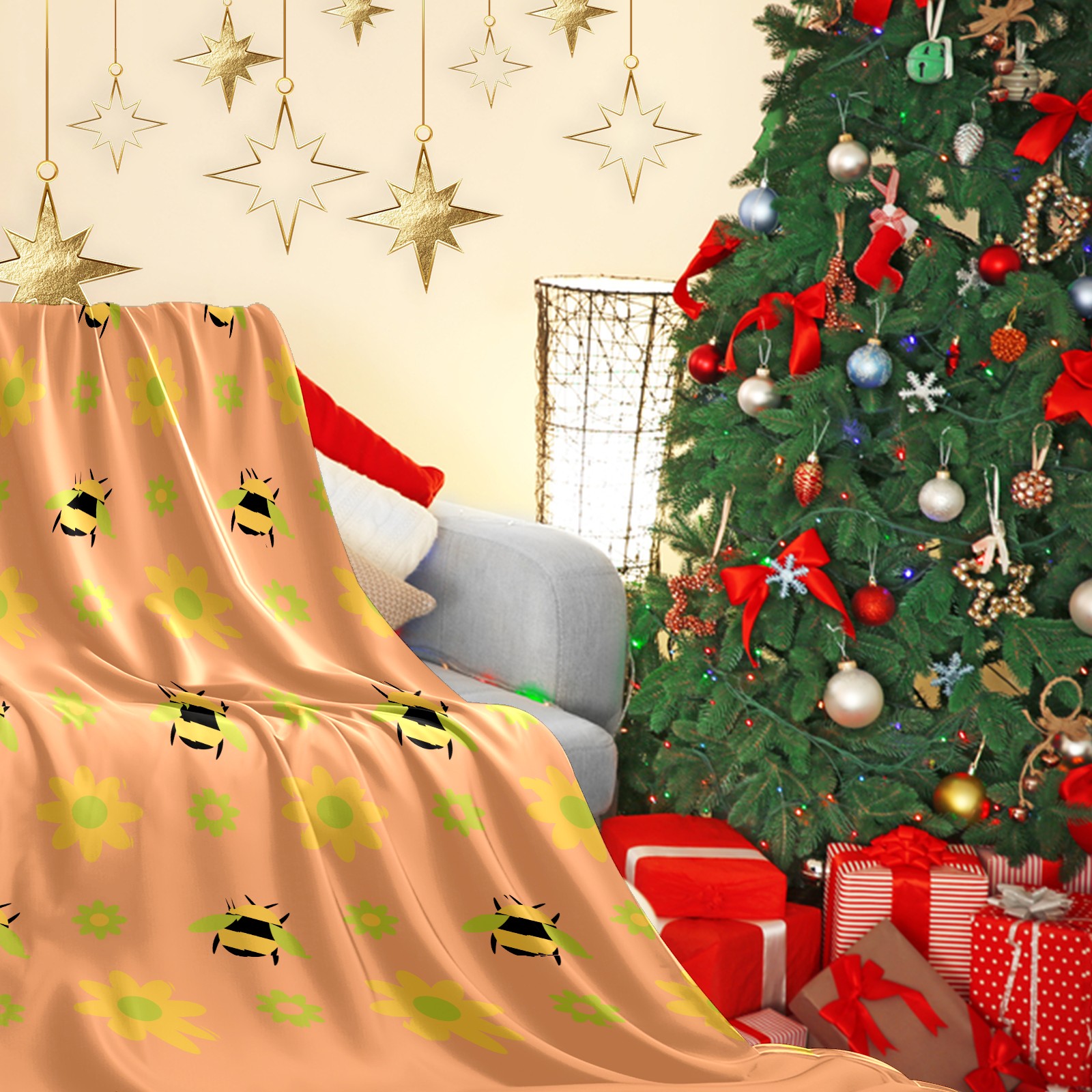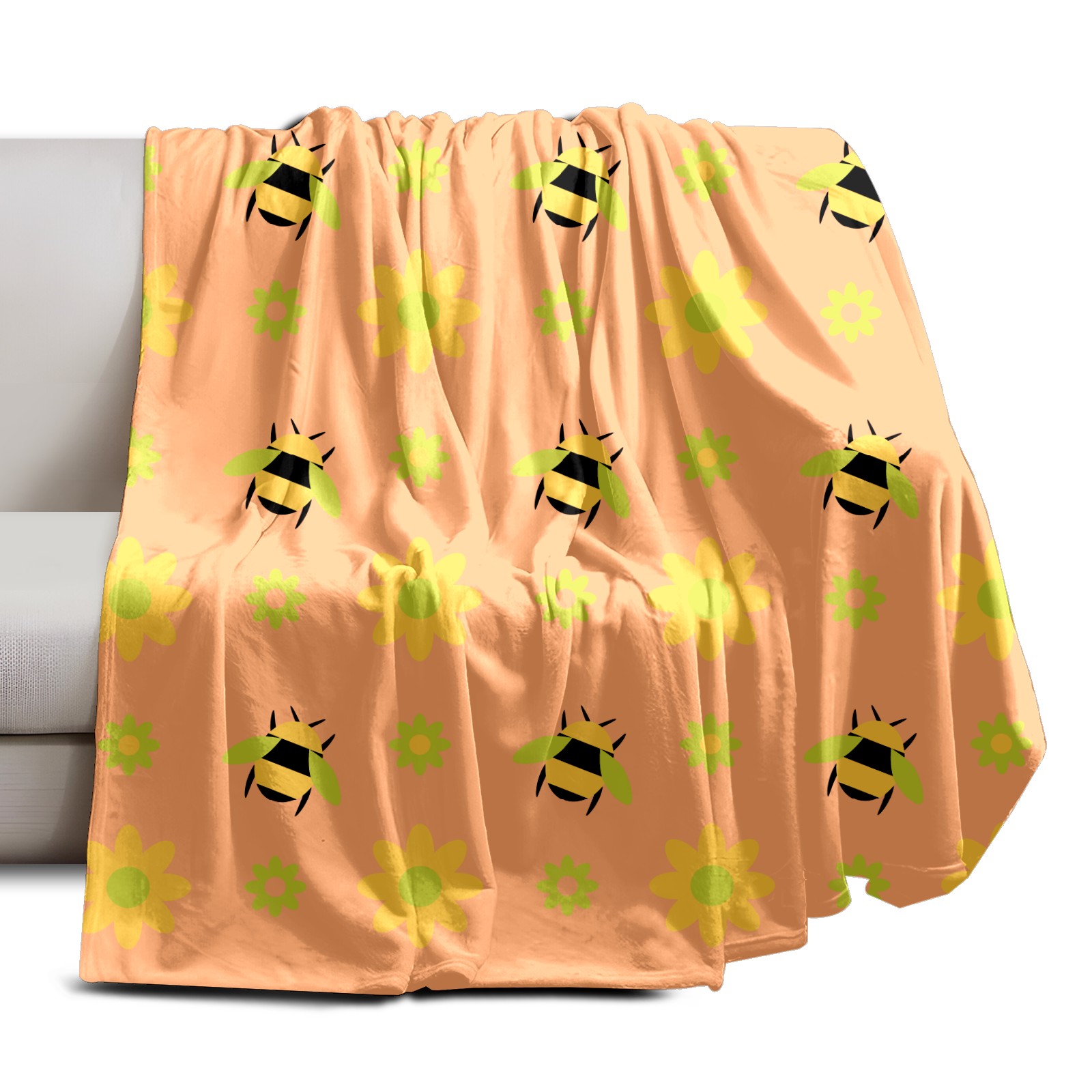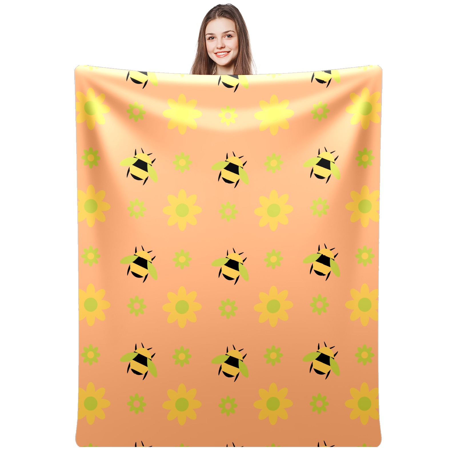 Flannel Blanket, Ultra-Soft Comfortable Home Decor Rug, The Perfect Comfort Gift for Both Men Women, Suitable for Beds, Sofas, Loungewear, and Travel 30x39in(ハチ 花 かわいい)