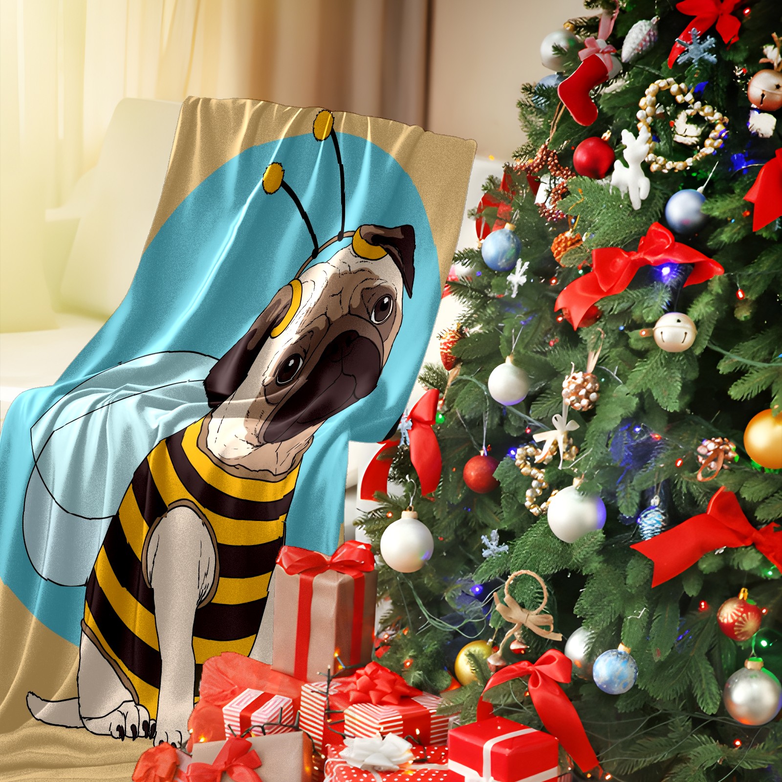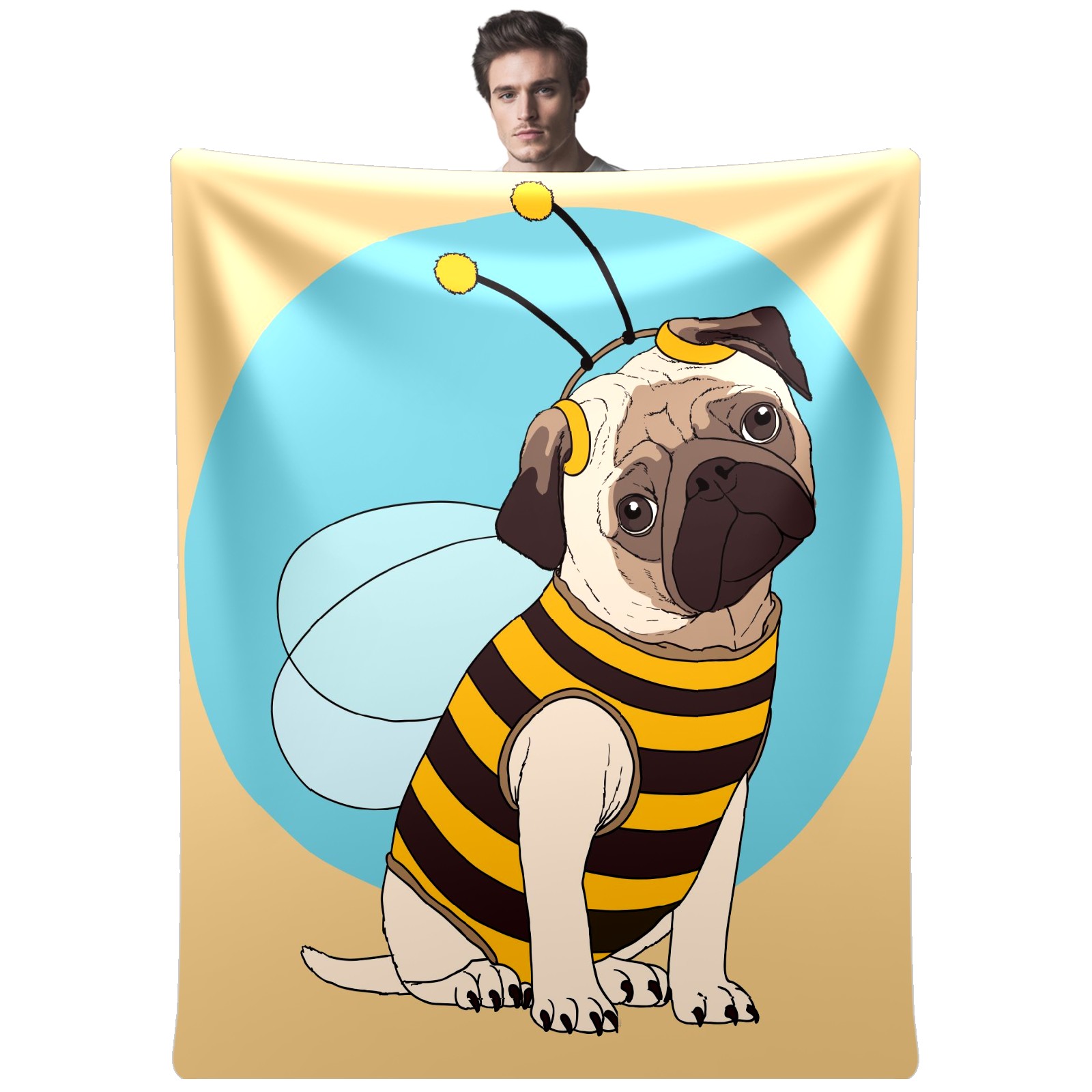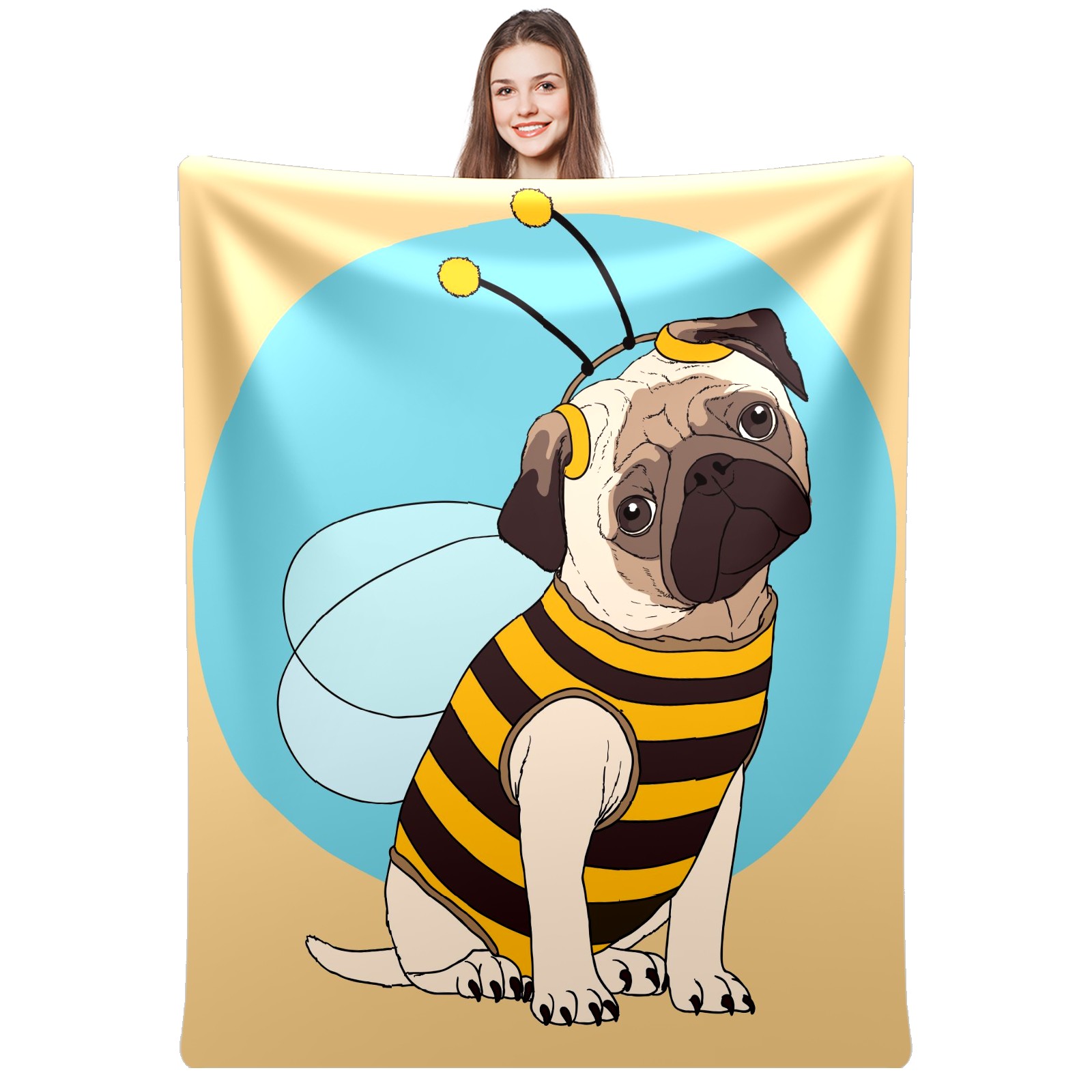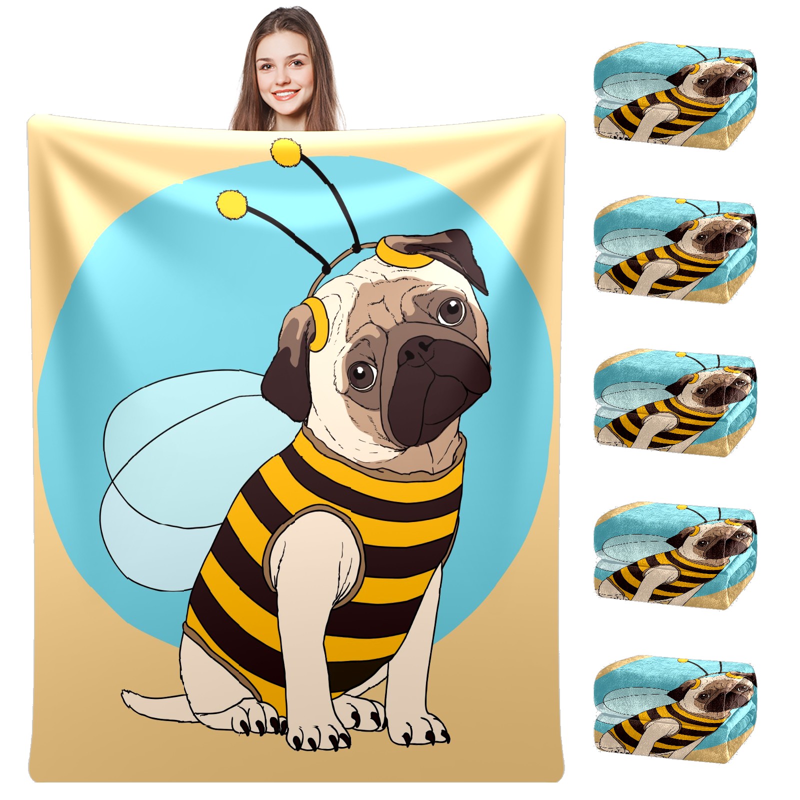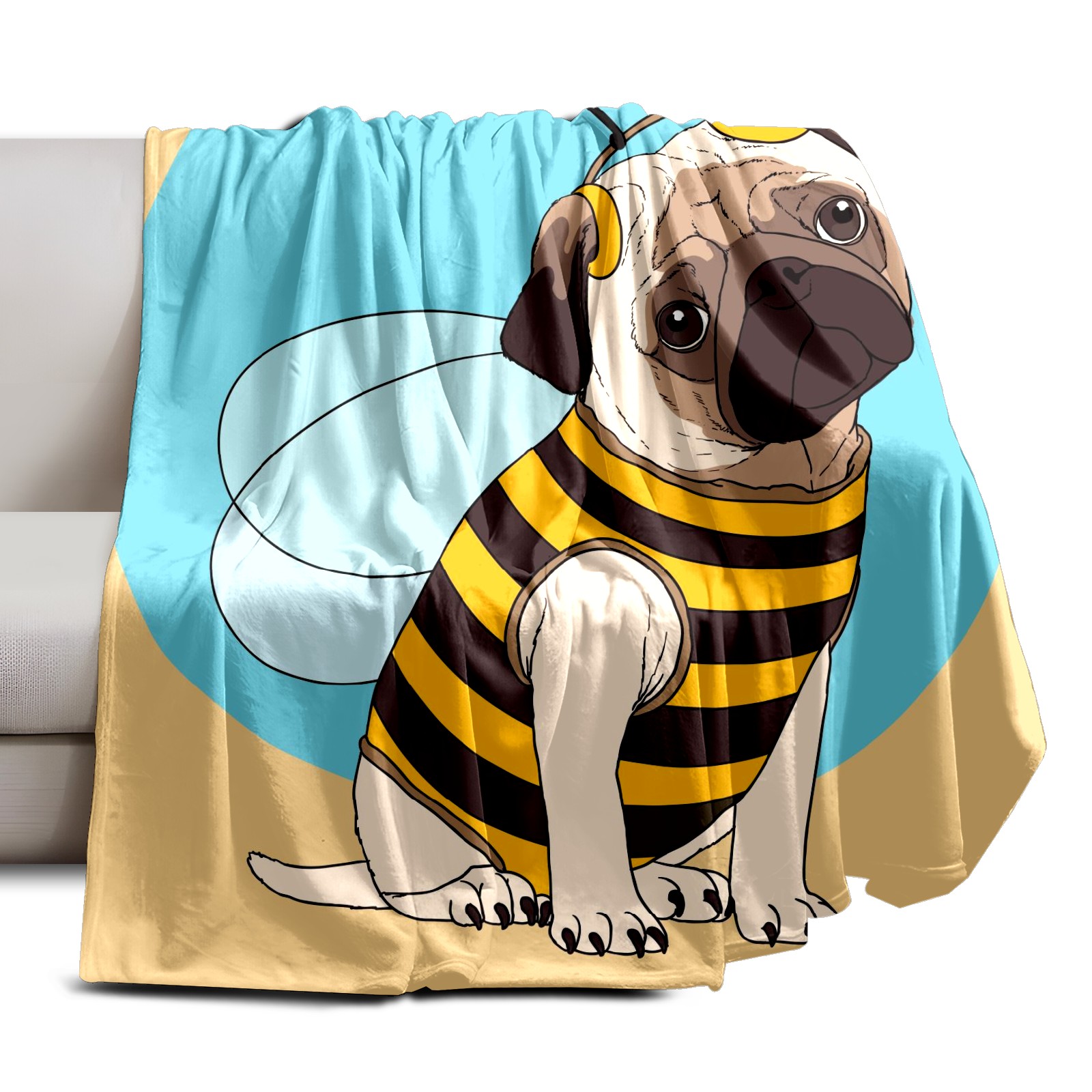 Flannel Blanket, Ultra-Soft Comfortable Home Decor Rug, The Perfect Comfort Gift for Both Men Women, Suitable for Beds, Sofas, Loungewear, and Travel 30x39in(パグ ハチ かわいい)