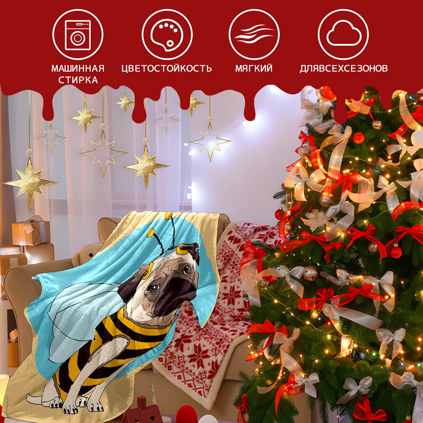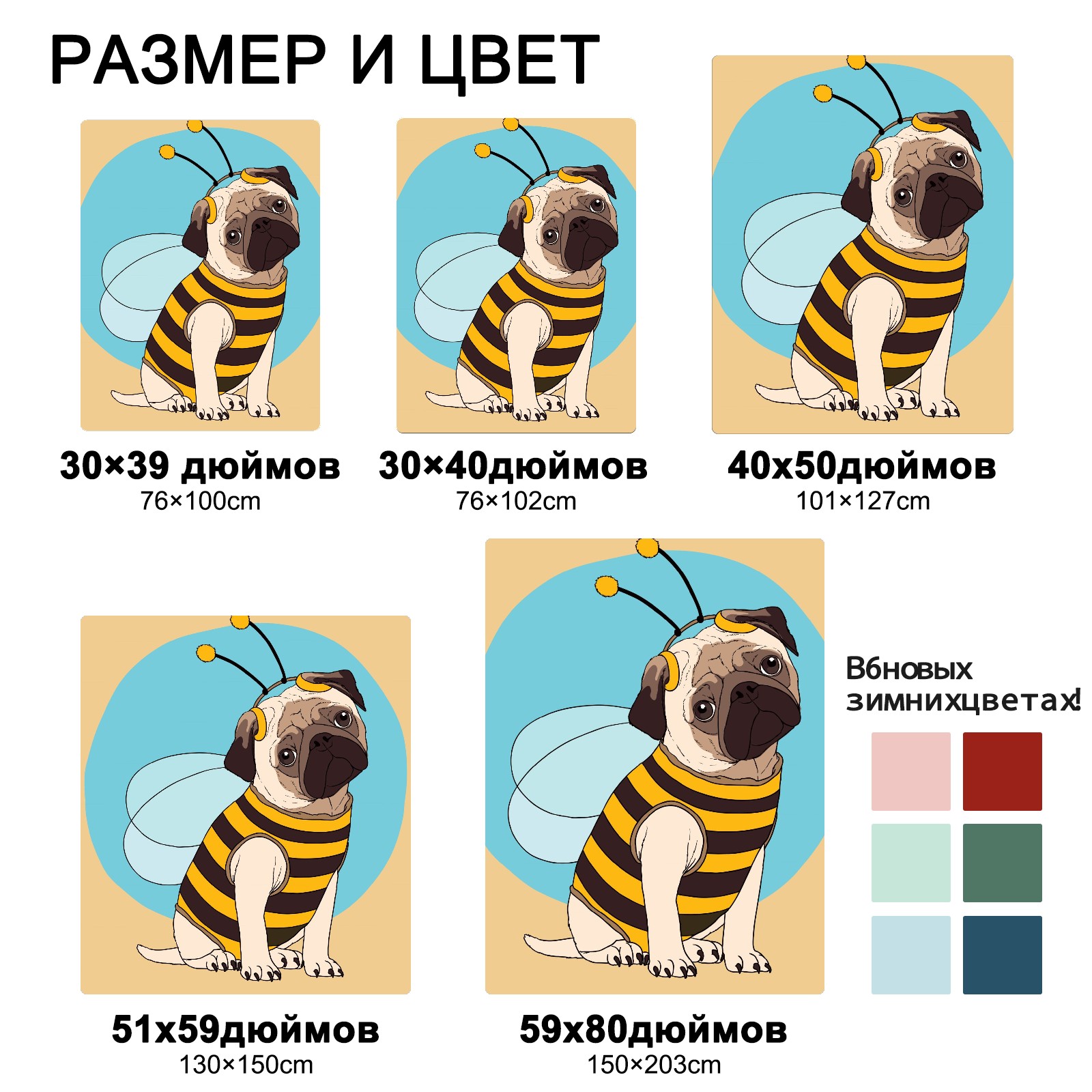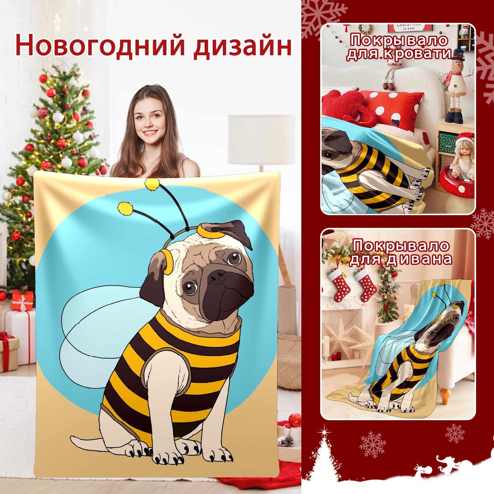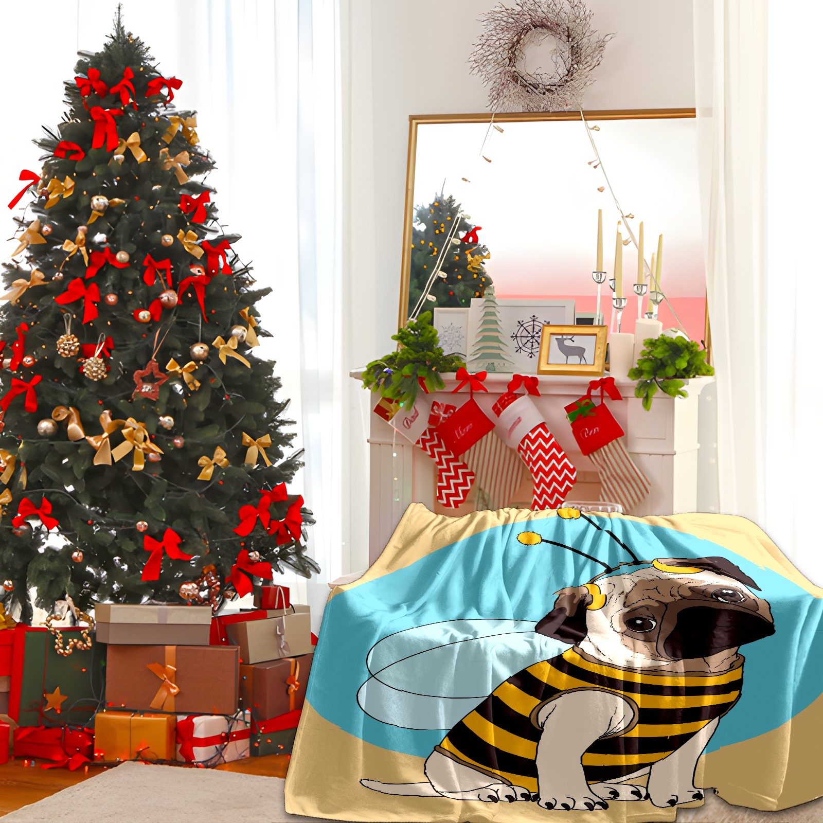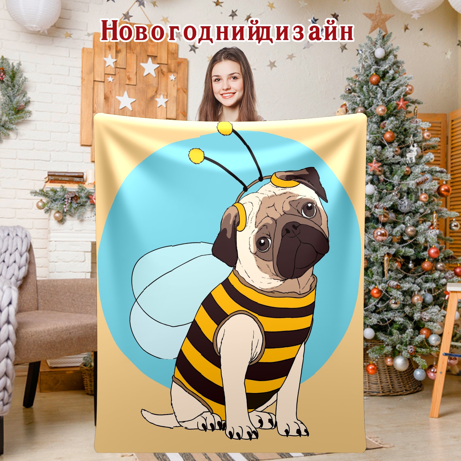 Flannel Blanket, Ultra-Soft Comfortable Home Decor Rug, The Perfect Comfort Gift for Both Men Women, Suitable for Beds, Sofas, Loungewear, and Travel 30x39in(パグ ハチ かわいい)