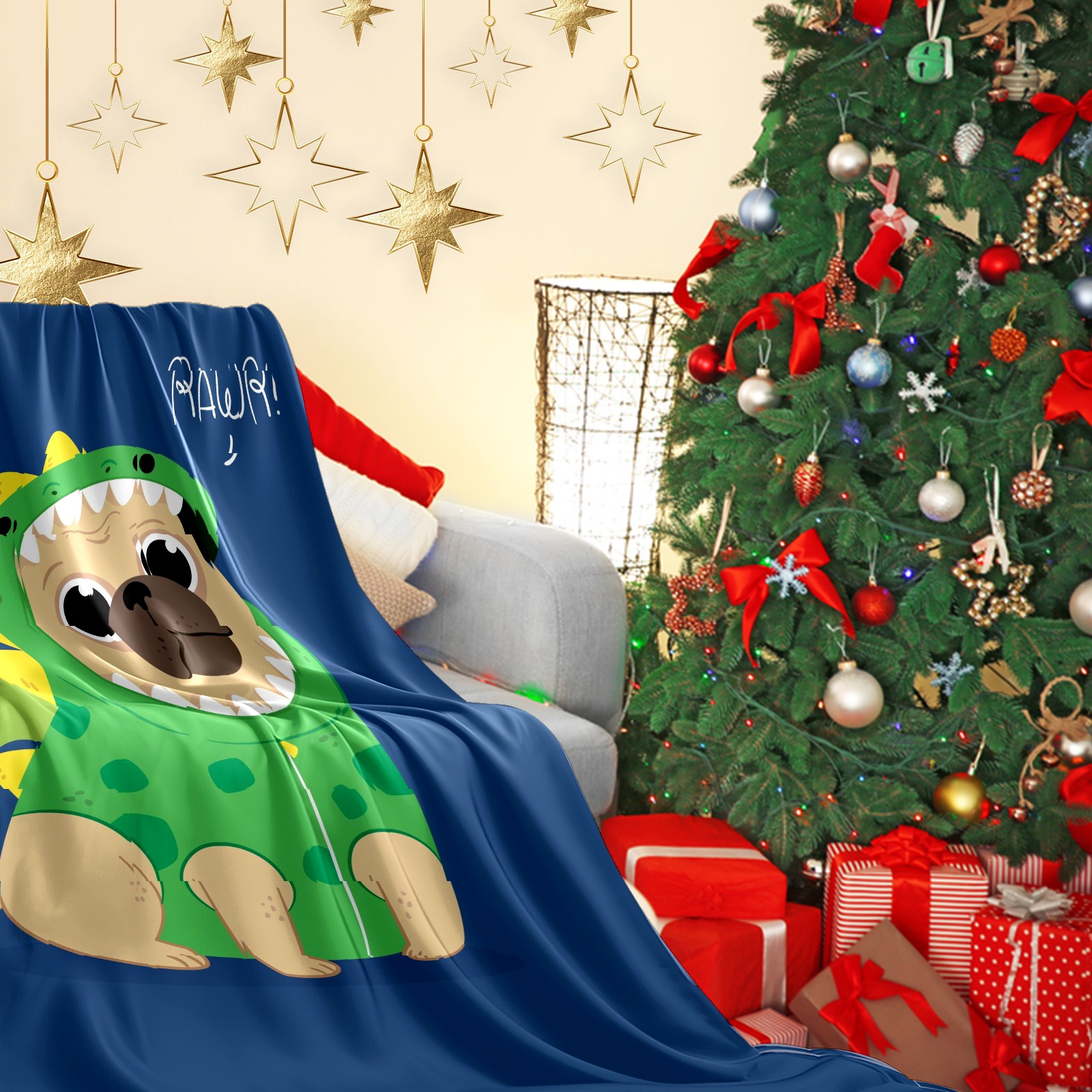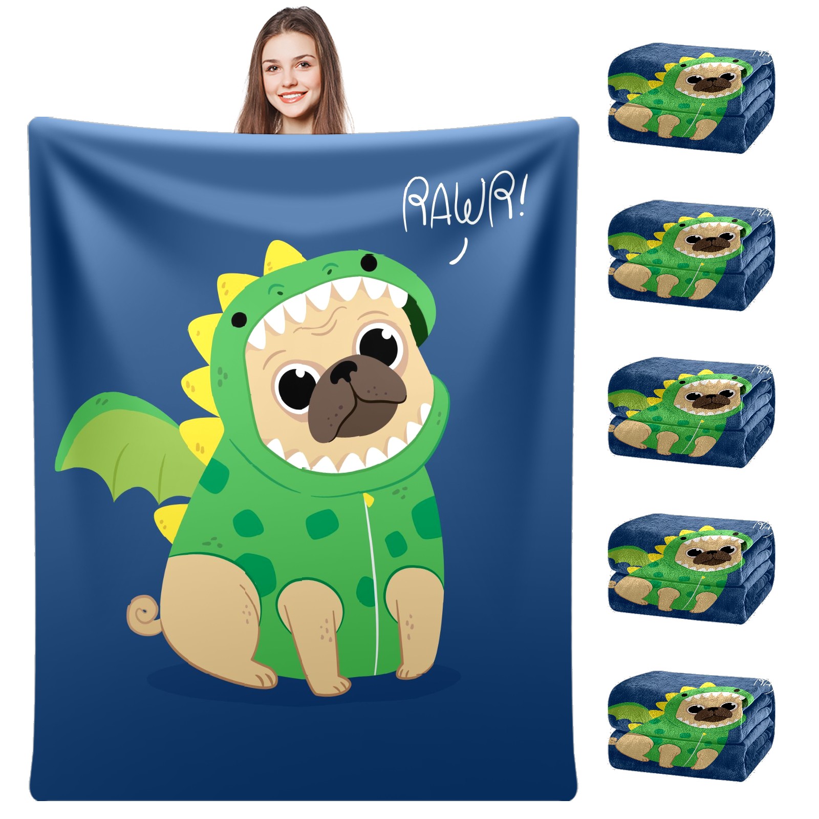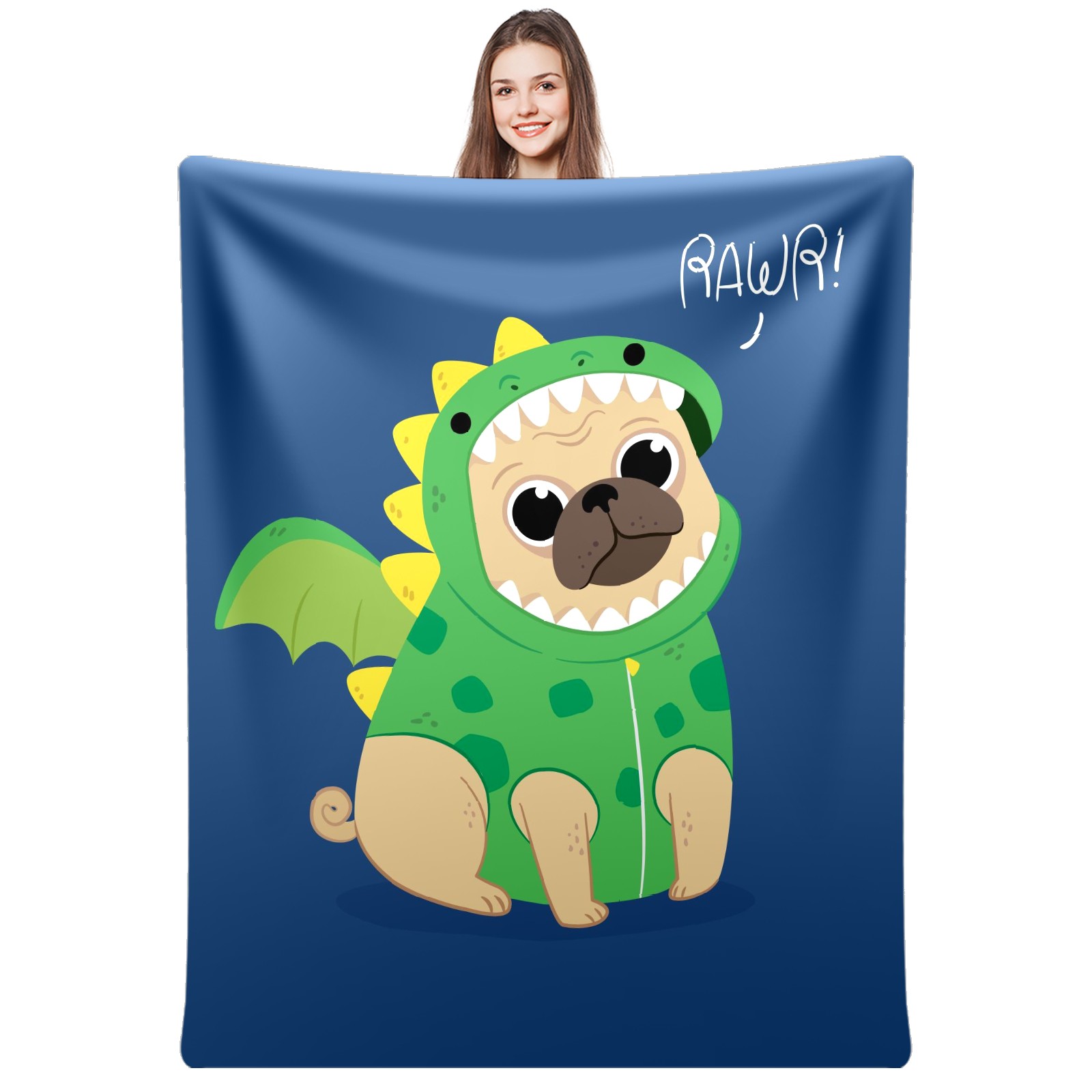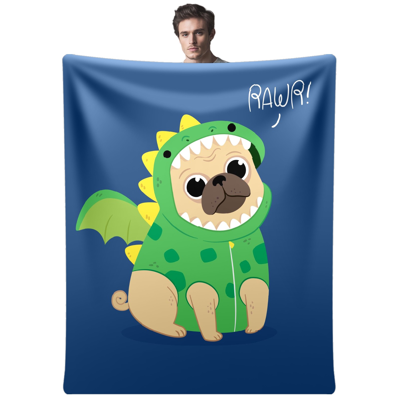 Flannel Blanket, Ultra-Soft Comfortable Home Decor Rug, The Perfect Comfort Gift for Both Men Women, Suitable for Beds, Sofas, Loungewear, and Travel 30x39in(パグ 恐竜 ブルー かわいい)