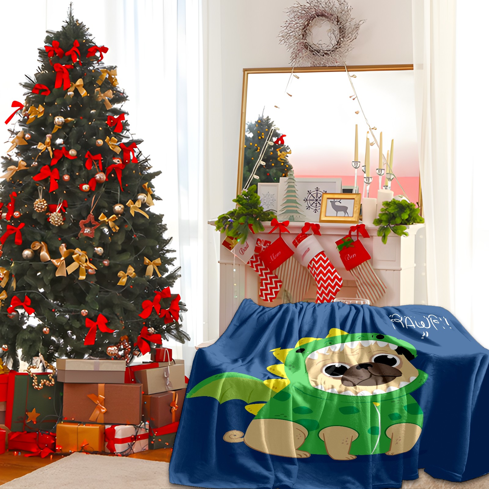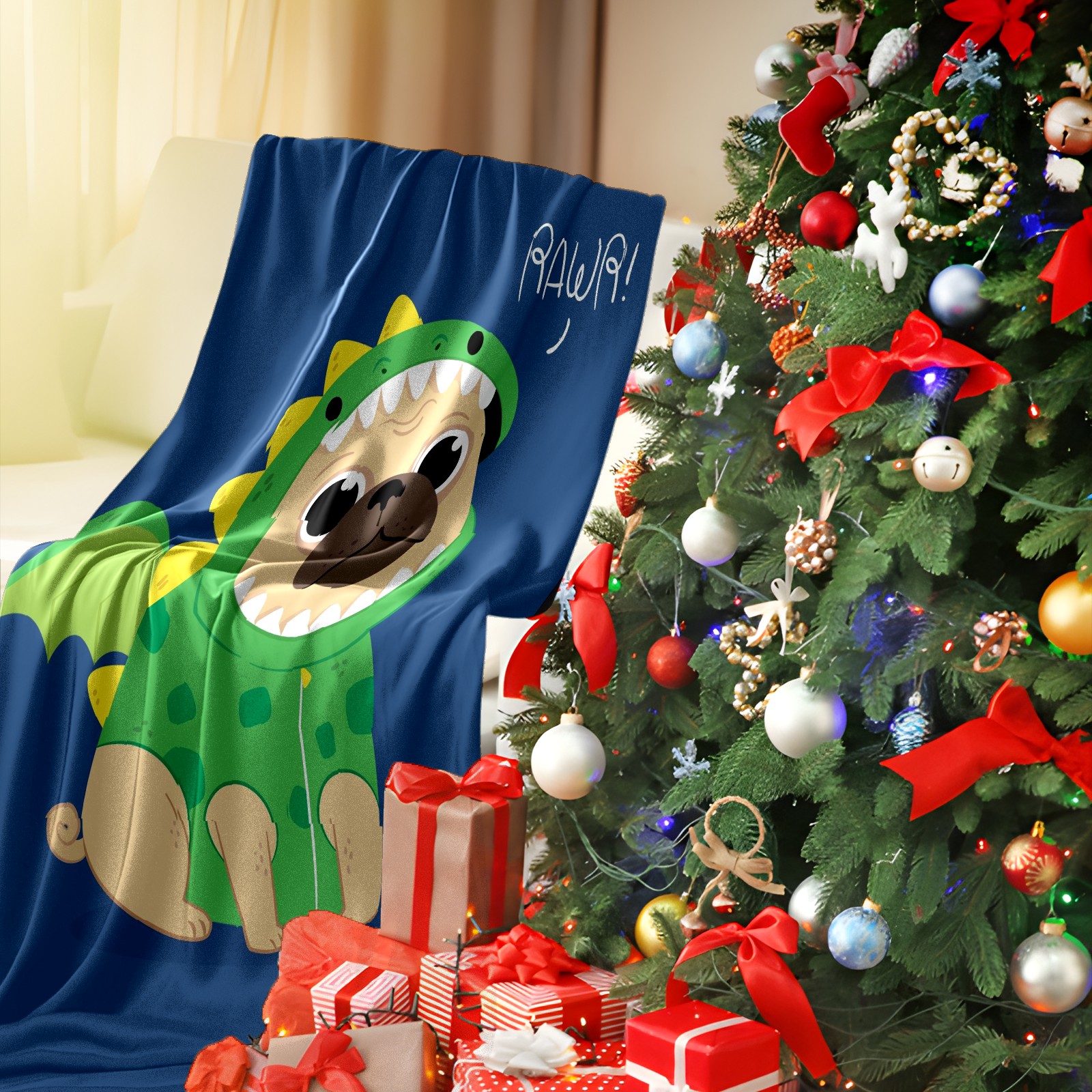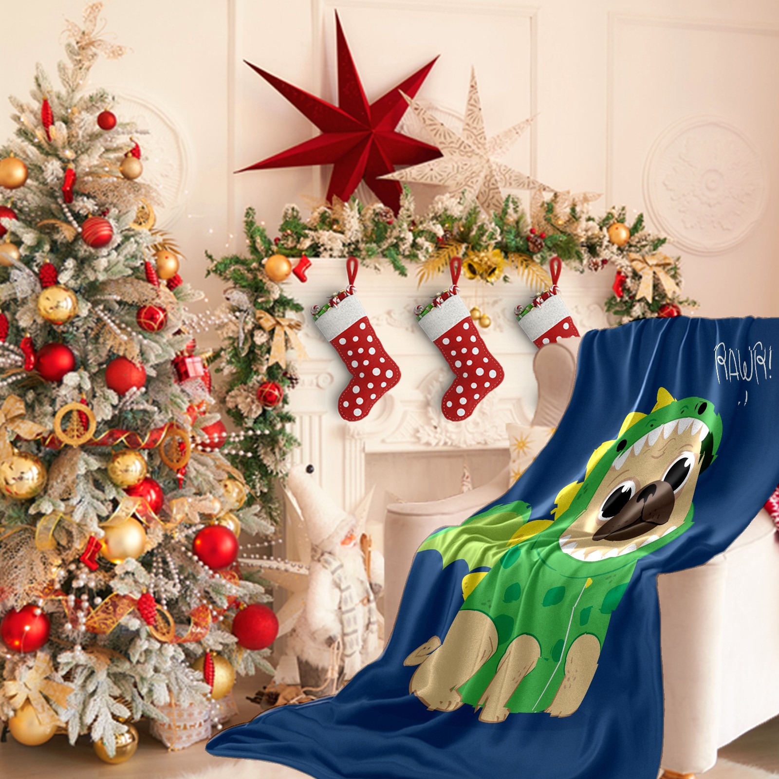 Flannel Blanket, Ultra-Soft Comfortable Home Decor Rug, The Perfect Comfort Gift for Both Men Women, Suitable for Beds, Sofas, Loungewear, and Travel 30x39in(パグ 恐竜 ブルー かわいい)