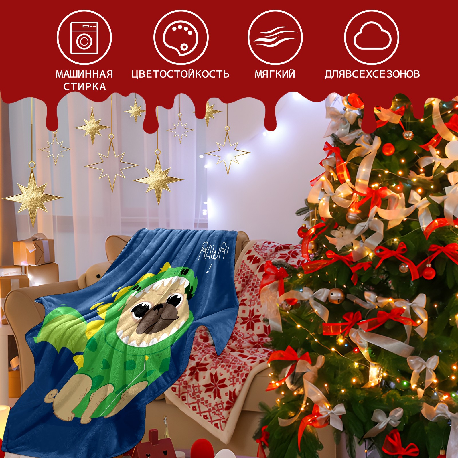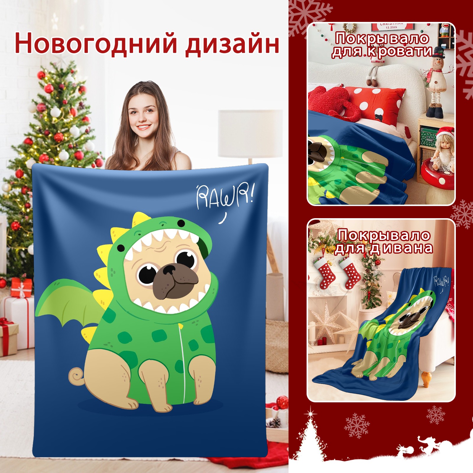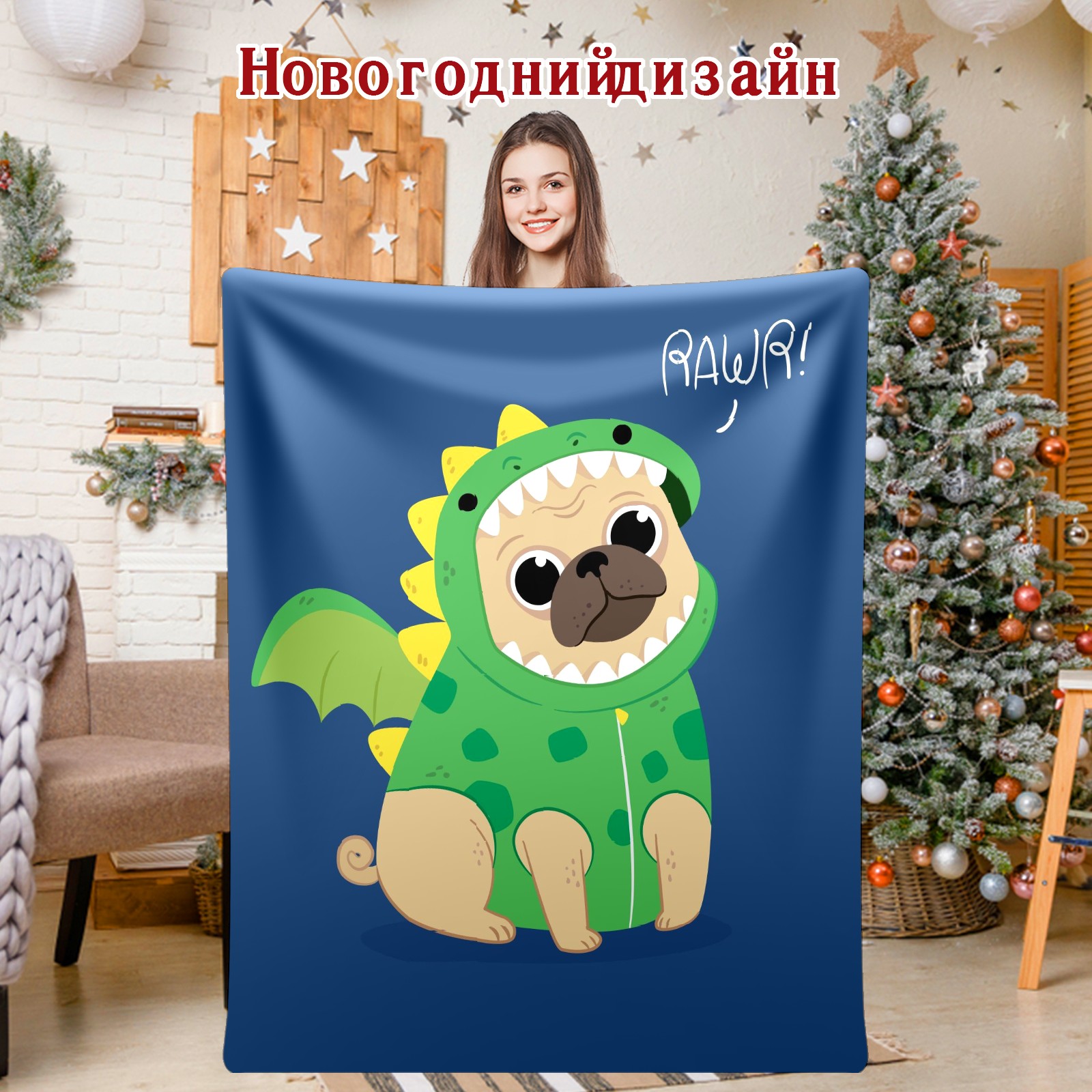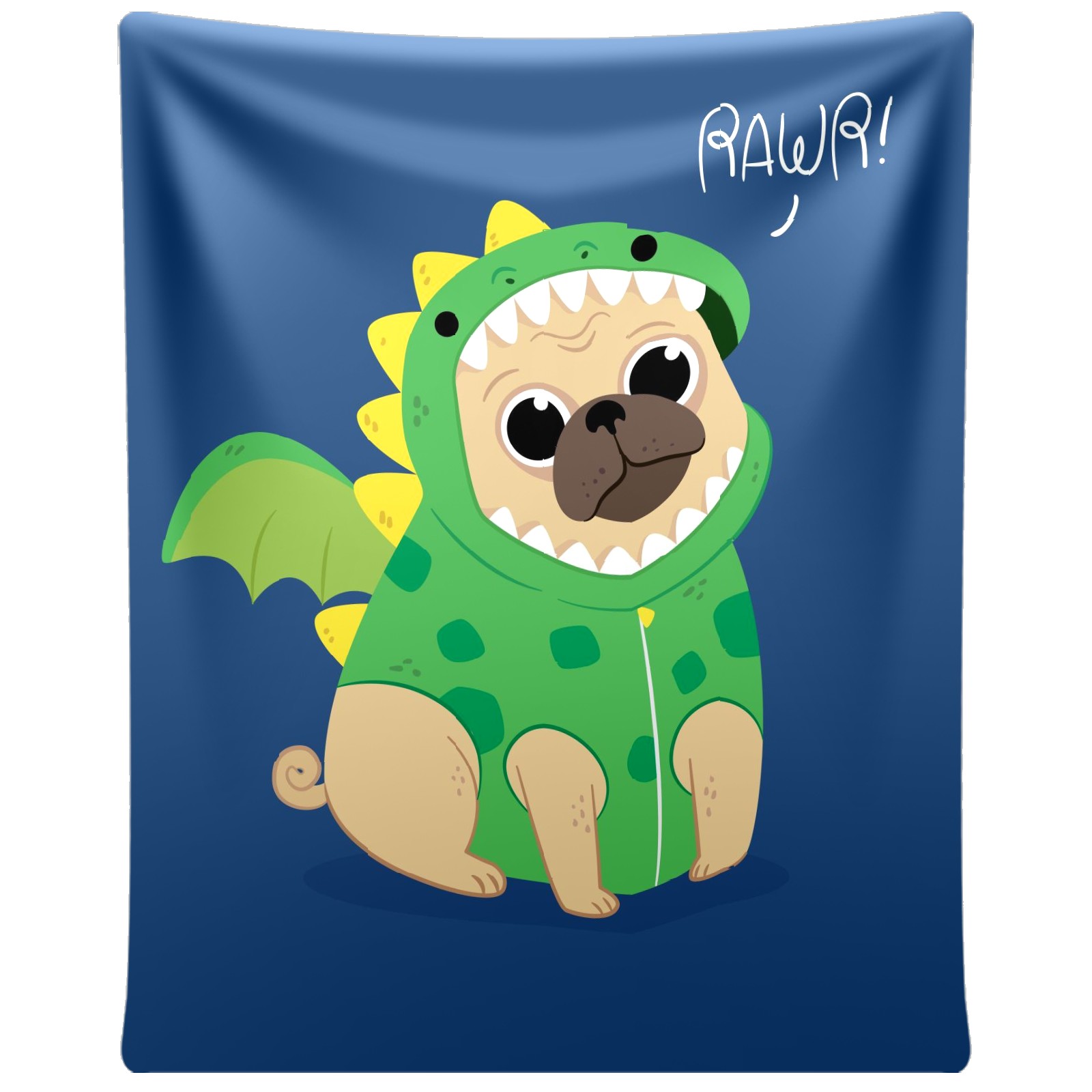Flannel Blanket, Ultra-Soft Comfortable Home Decor Rug, The Perfect Comfort Gift for Both Men Women, Suitable for Beds, Sofas, Loungewear, and Travel 30x39in(パグ 恐竜 ブルー かわいい)