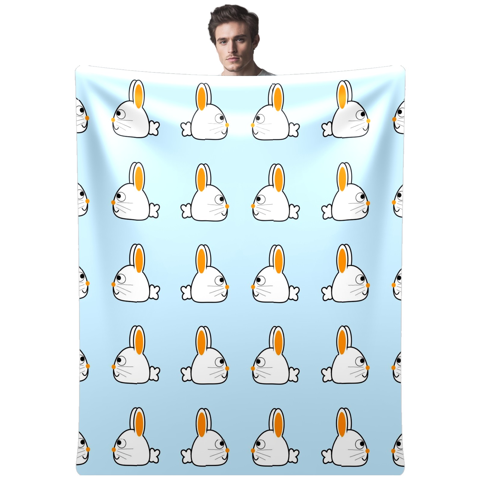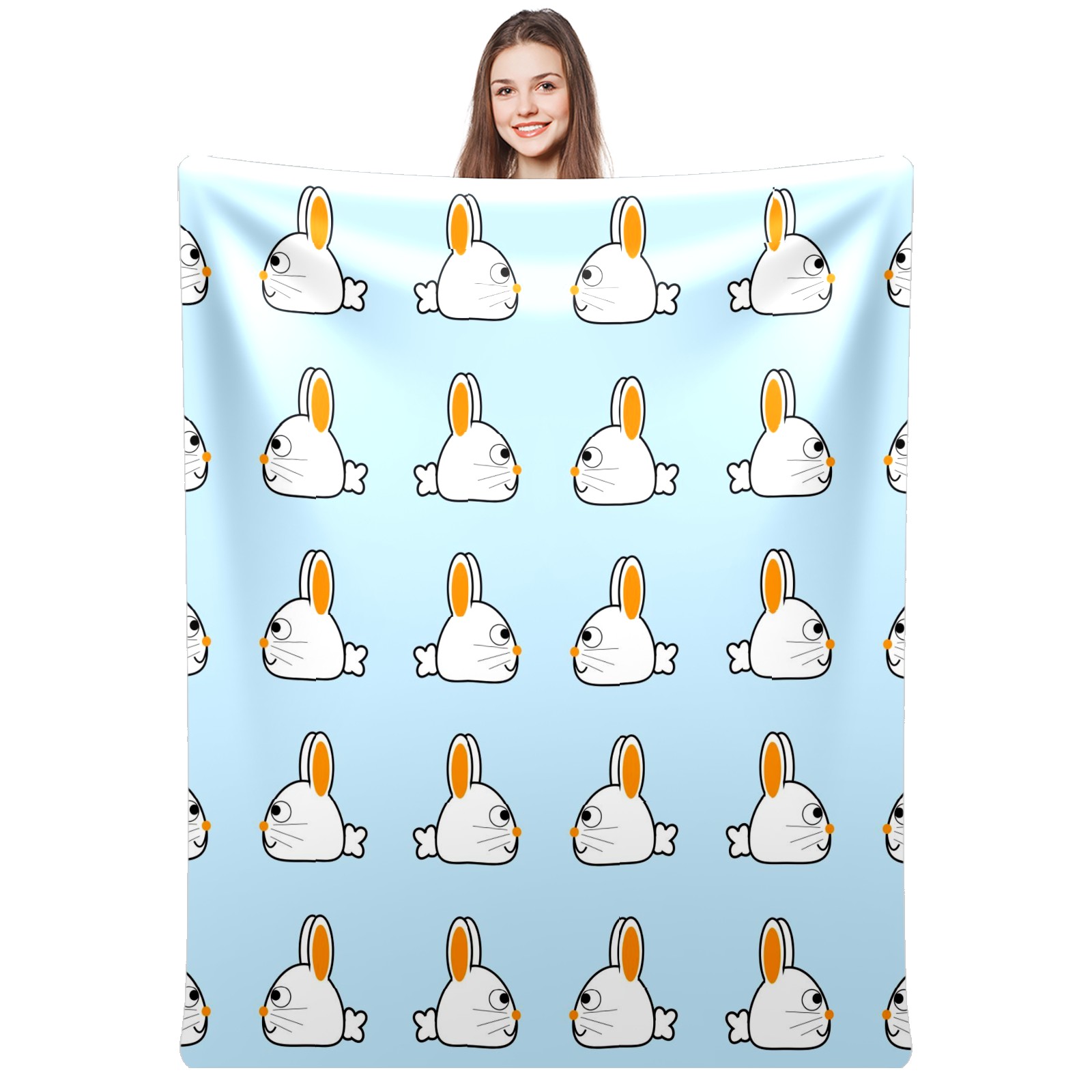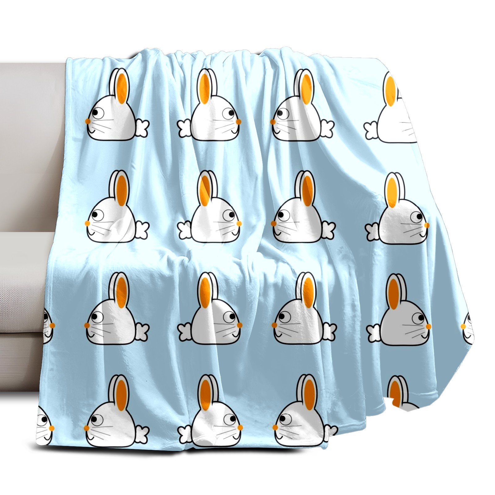 Flannel Blanket, Ultra-Soft Comfortable Home Decor Rug, The Perfect Comfort Gift for Both Men Women, Suitable for Beds, Sofas, Loungewear, and Travel 30x39in(ウサギ 白い イエロー)