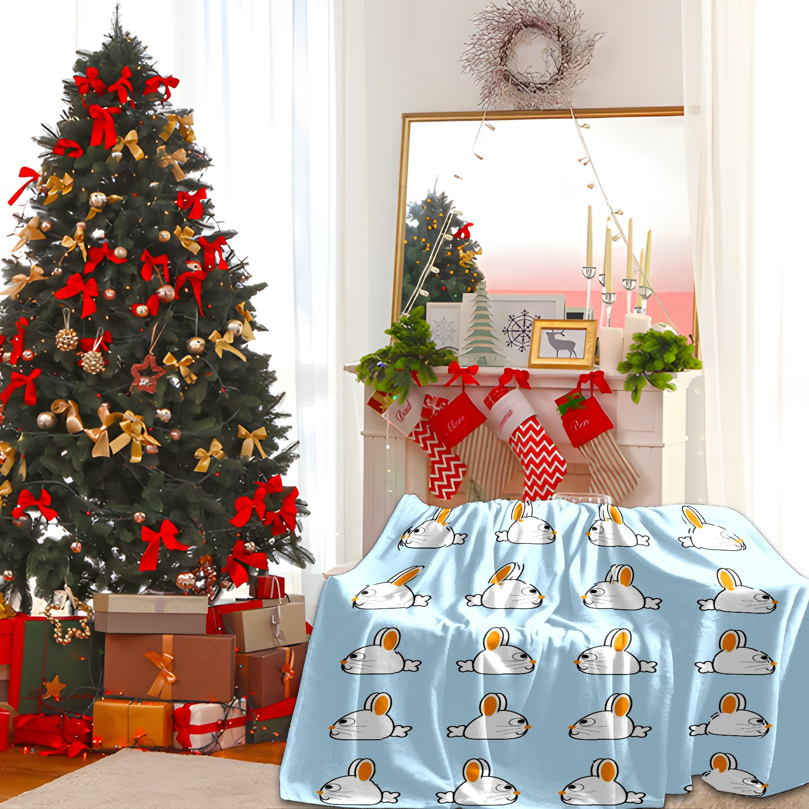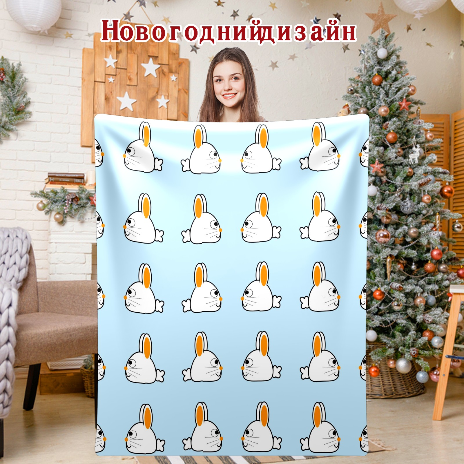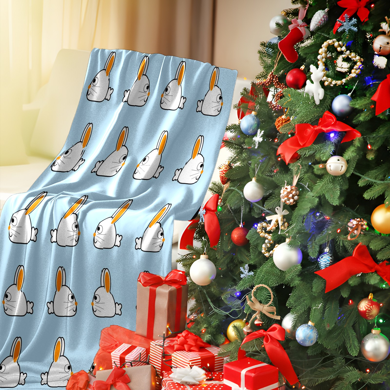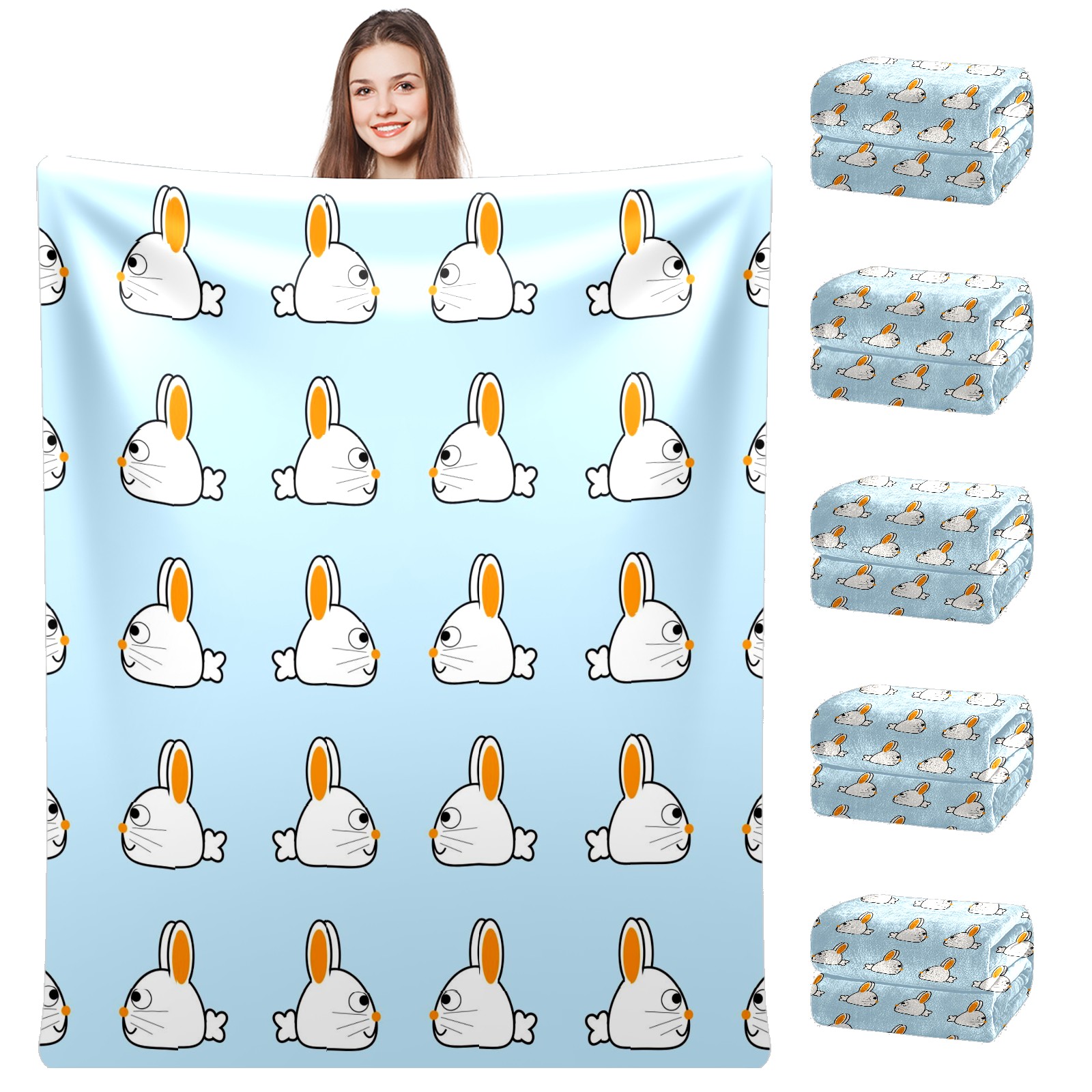 Flannel Blanket, Ultra-Soft Comfortable Home Decor Rug, The Perfect Comfort Gift for Both Men Women, Suitable for Beds, Sofas, Loungewear, and Travel 30x39in(ウサギ 白い イエロー)
