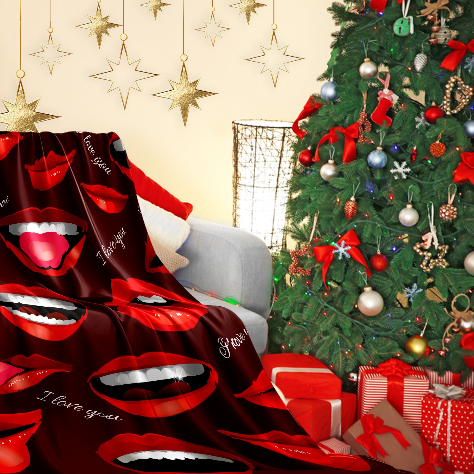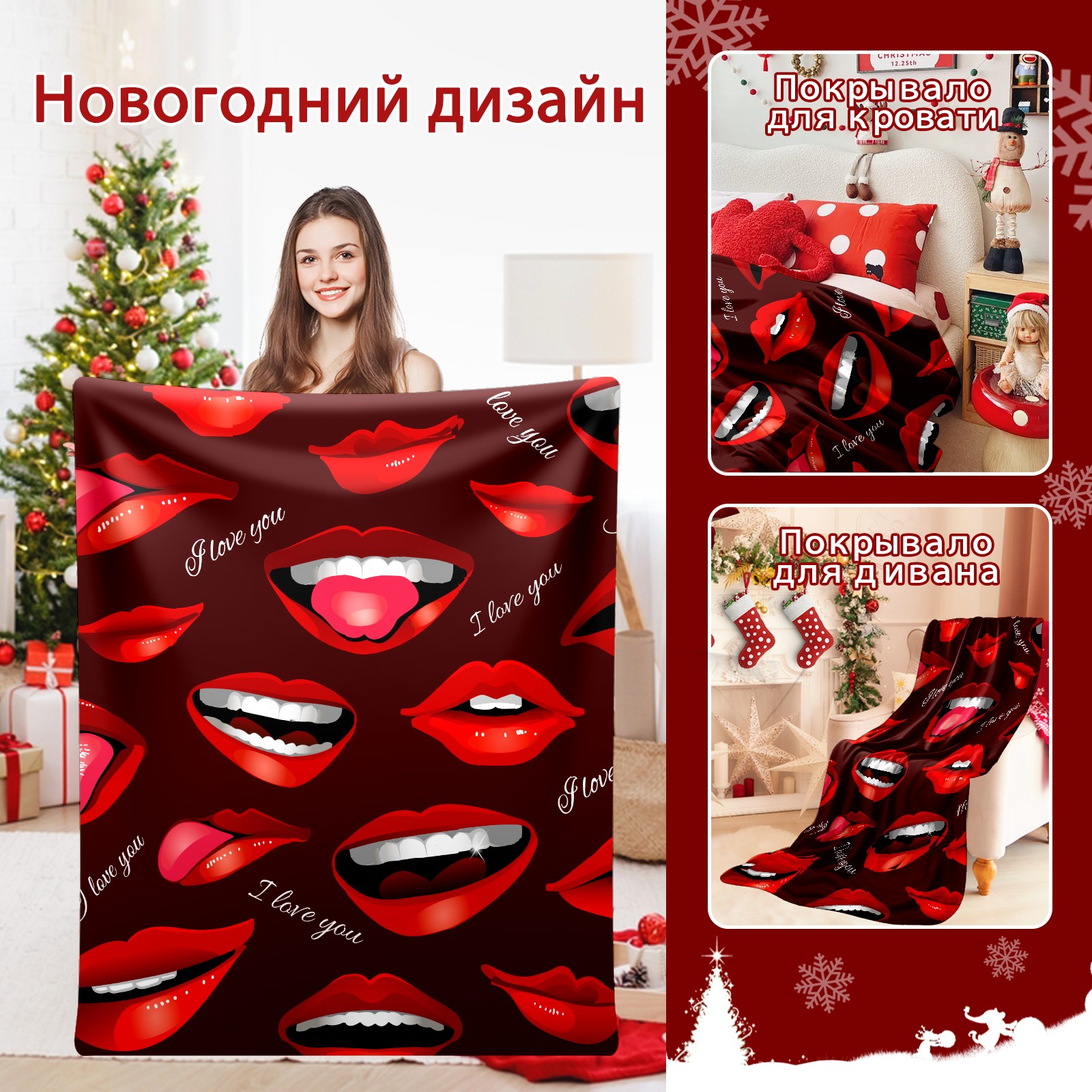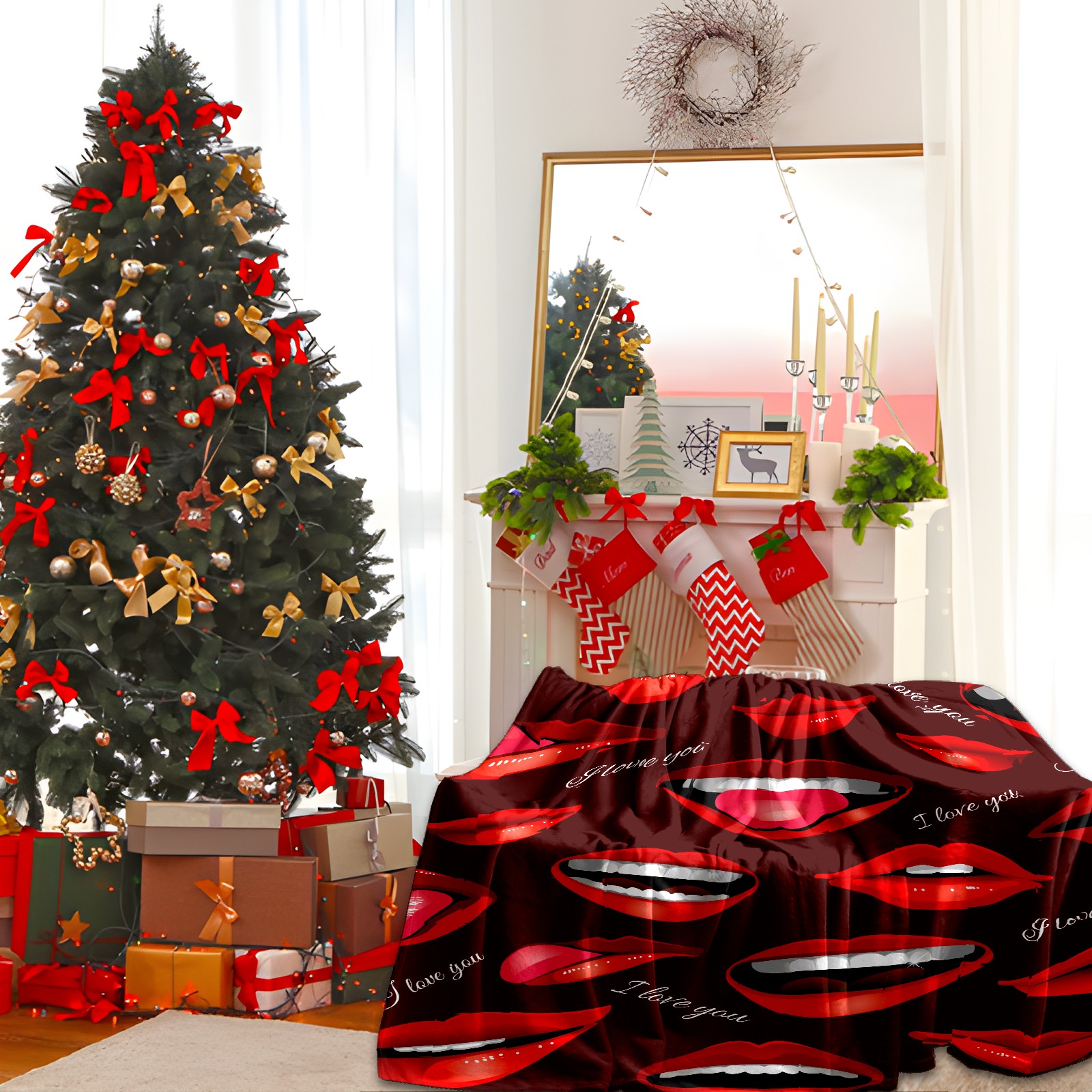 Flannel Blanket, Ultra-Soft Comfortable Home Decor Rug, The Perfect Comfort Gift for Both Men Women, Suitable for Beds, Sofas, Loungewear, and Travel 30x39in(Red Kiss)