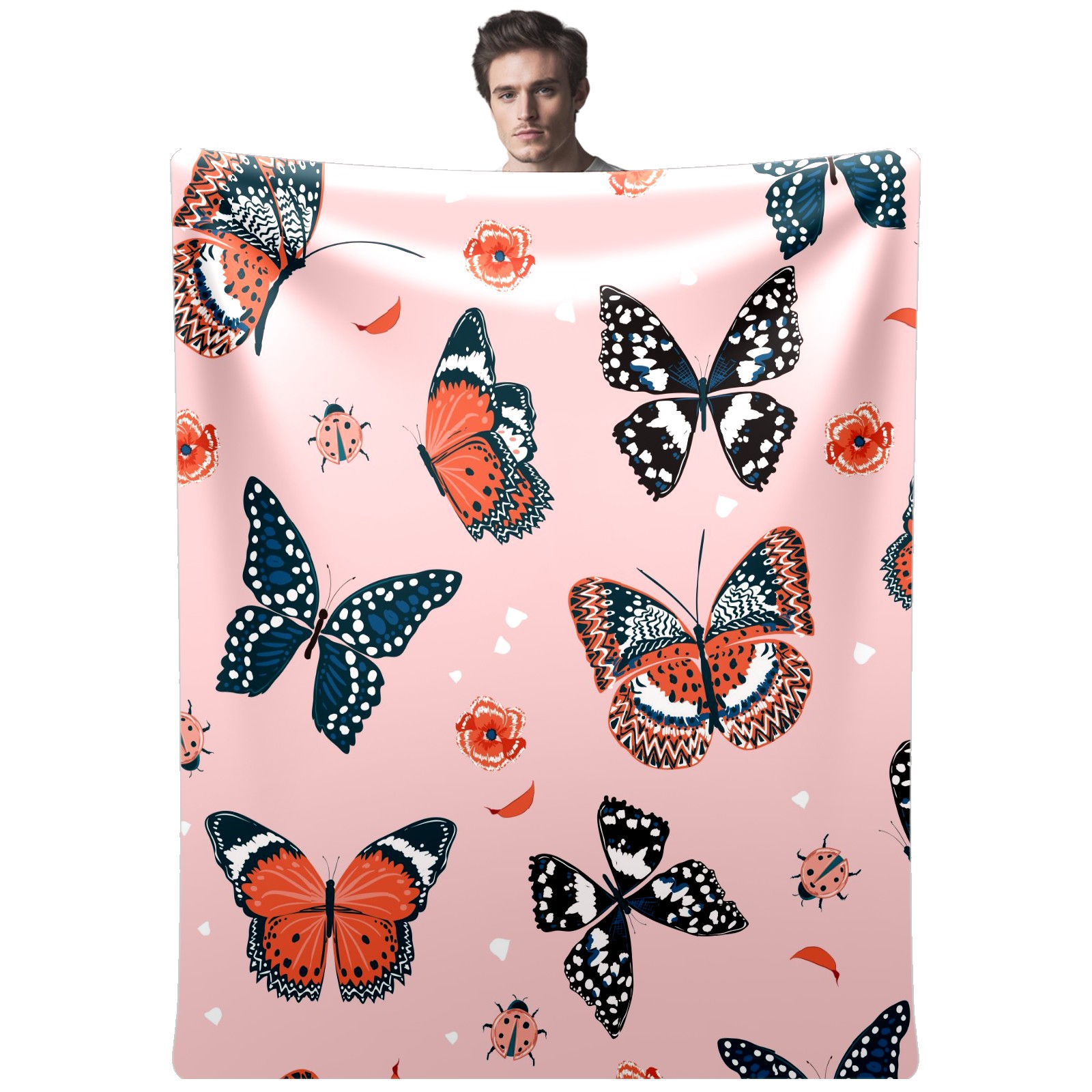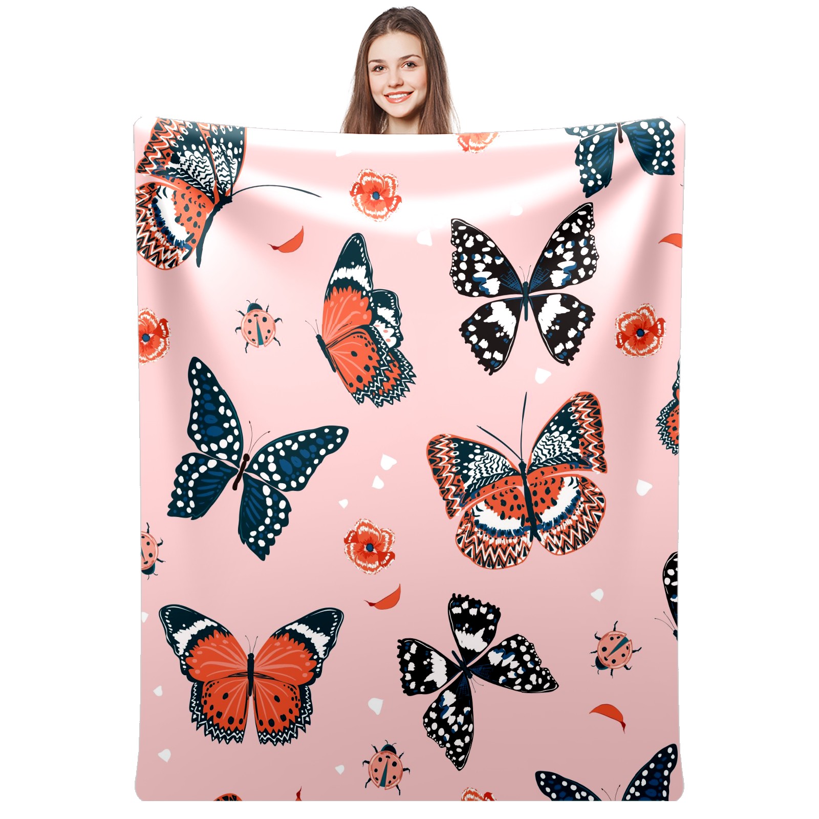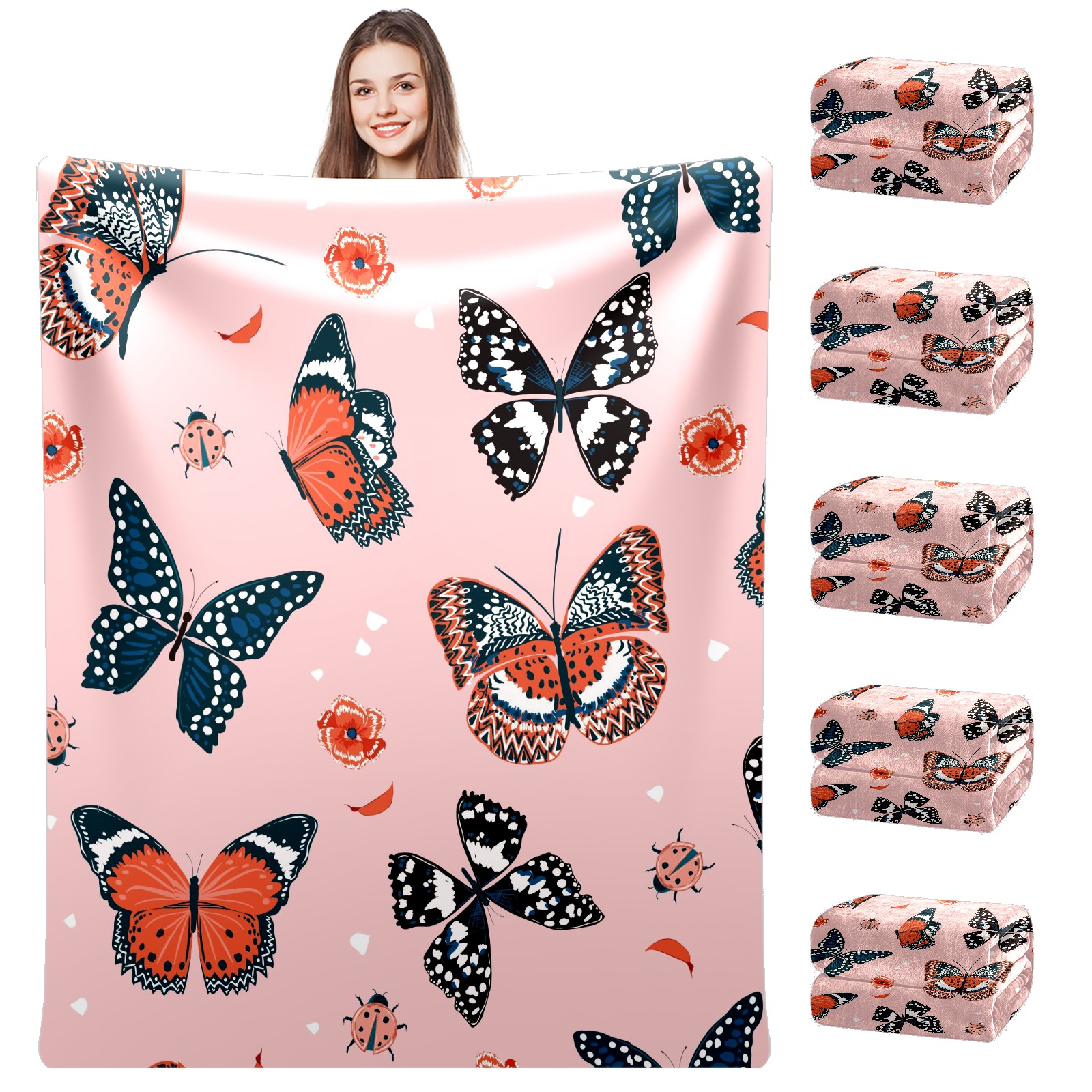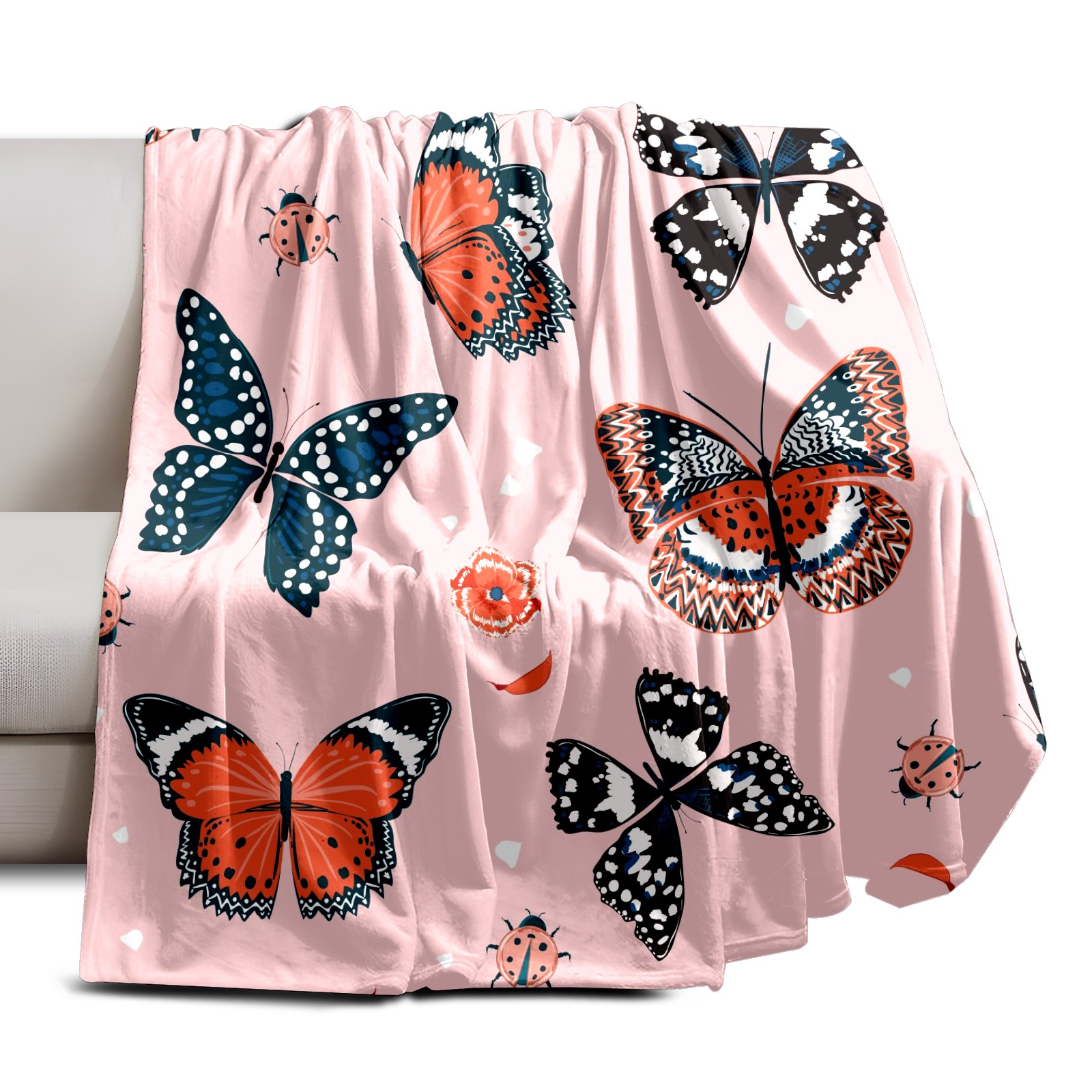 Flannel Blanket, Ultra-Soft Comfortable Home Decor Rug, The Perfect Comfort Gift for Both Men Women, Suitable for Beds, Sofas, Loungewear, and Travel 30x39in(Pink Pattern Butterfly Beetle)