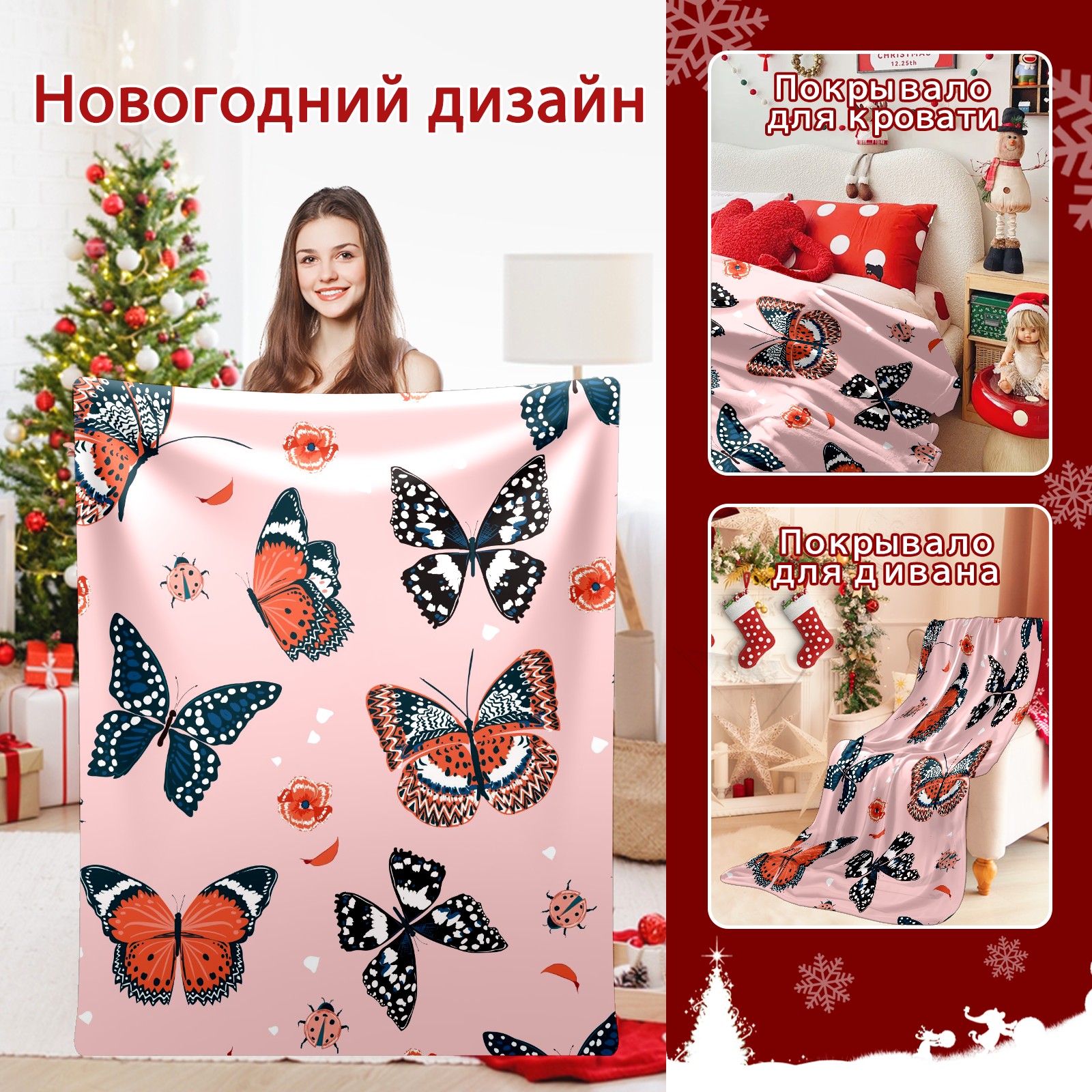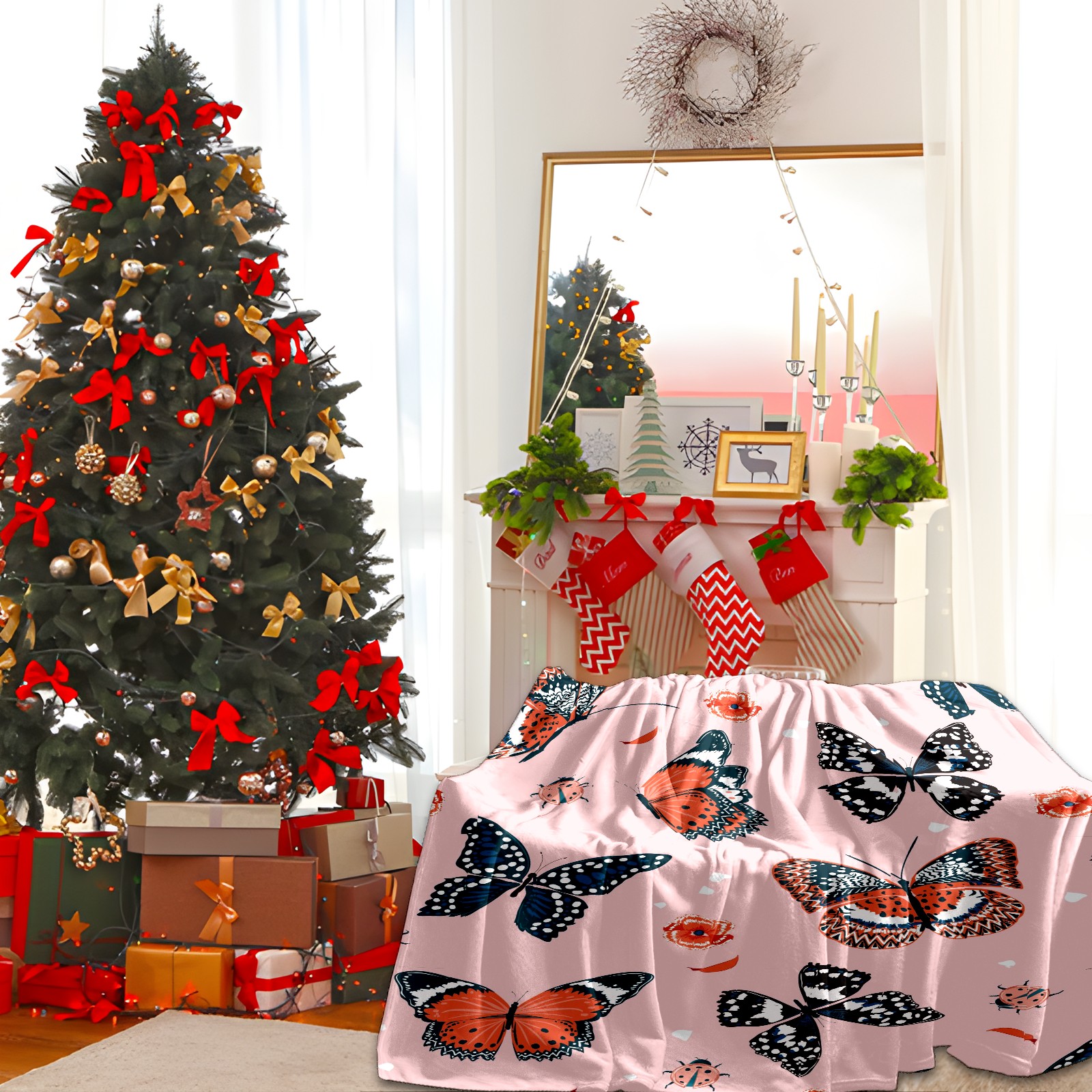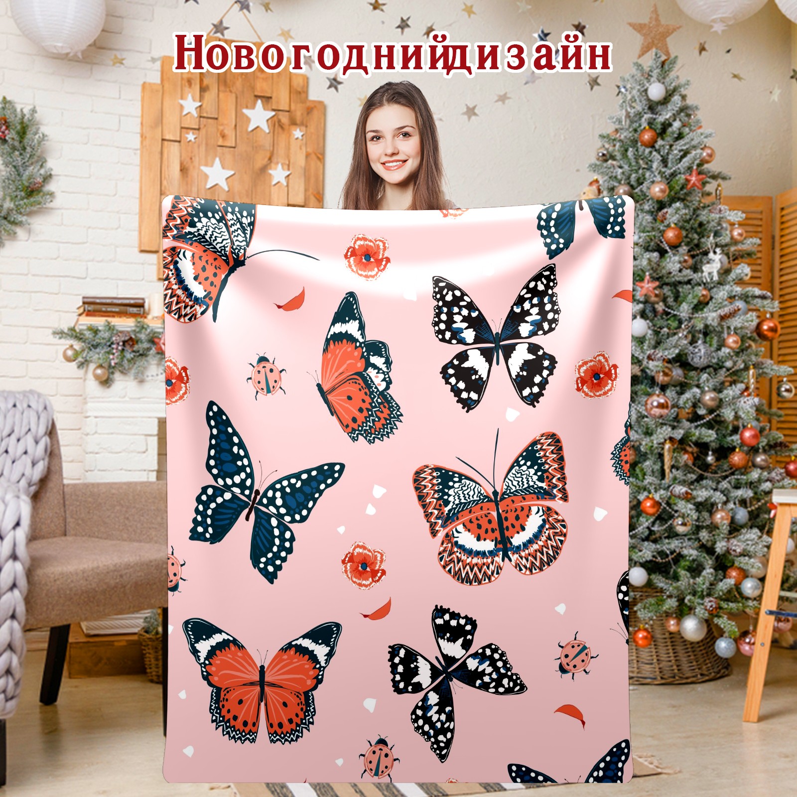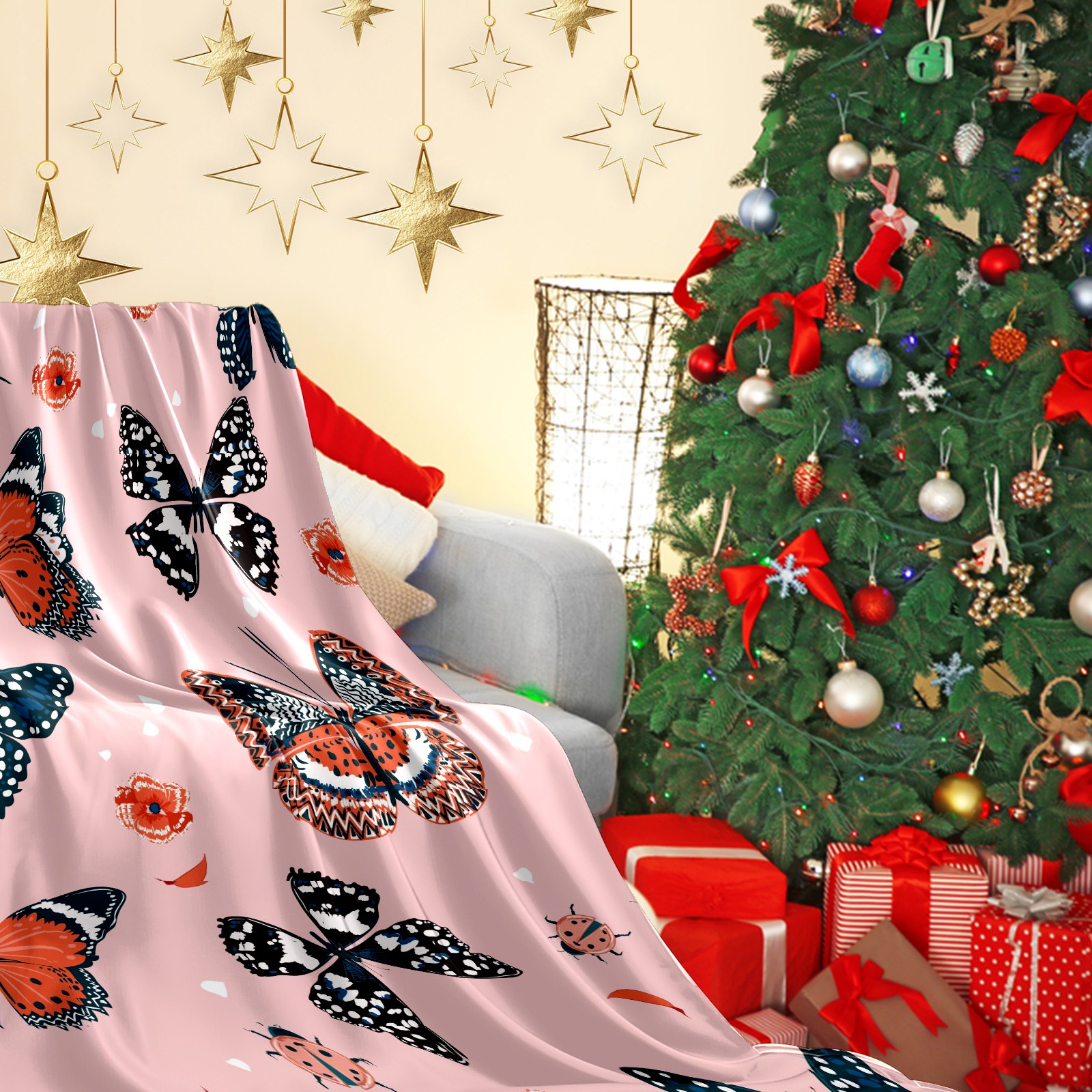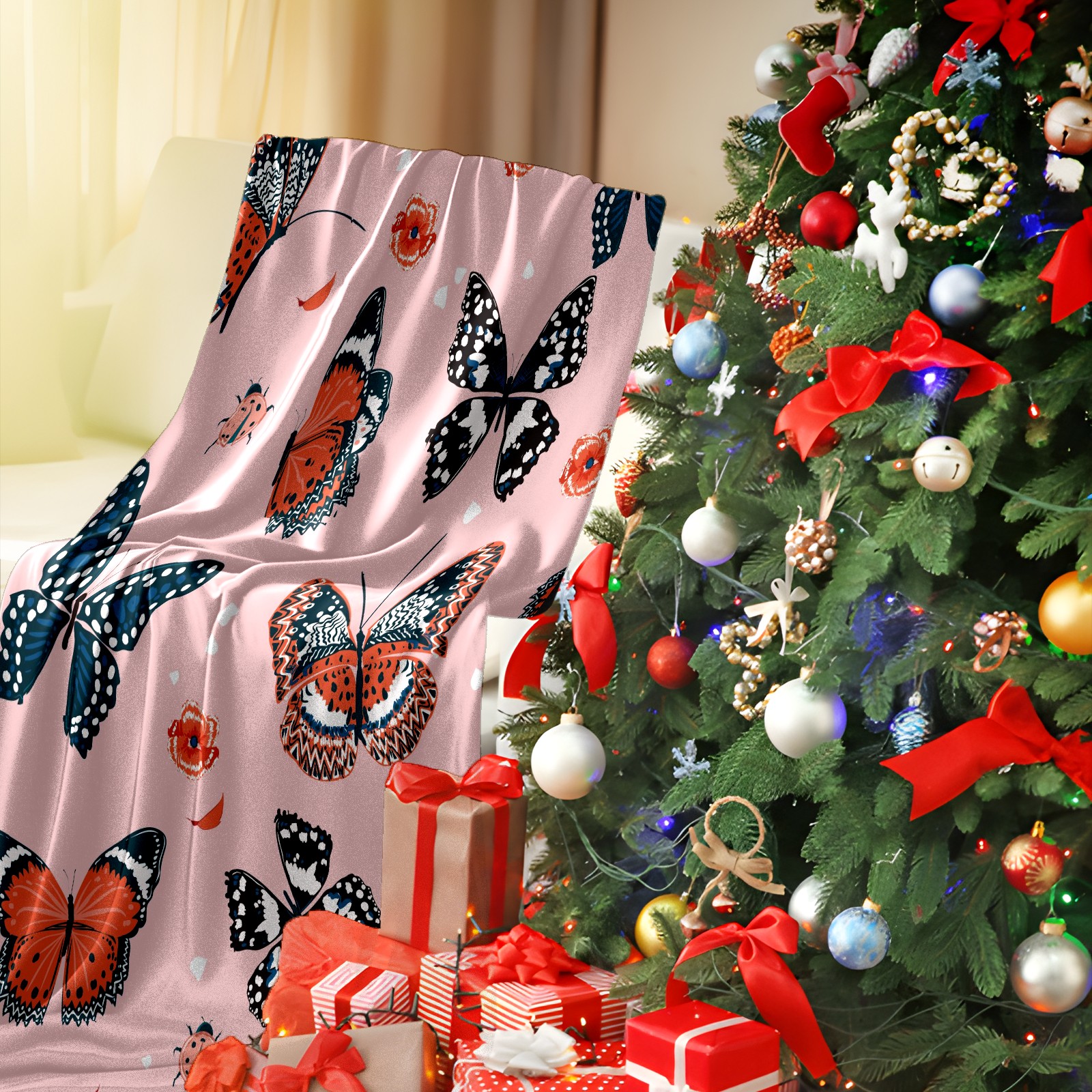 Flannel Blanket, Ultra-Soft Comfortable Home Decor Rug, The Perfect Comfort Gift for Both Men Women, Suitable for Beds, Sofas, Loungewear, and Travel 30x39in(Pink Pattern Butterfly Beetle)