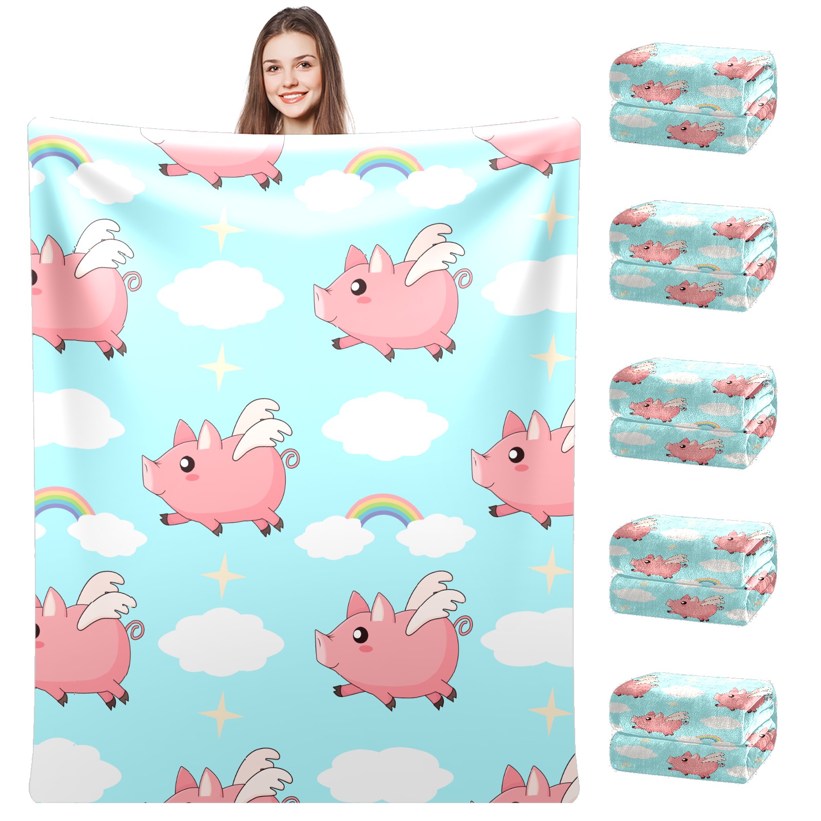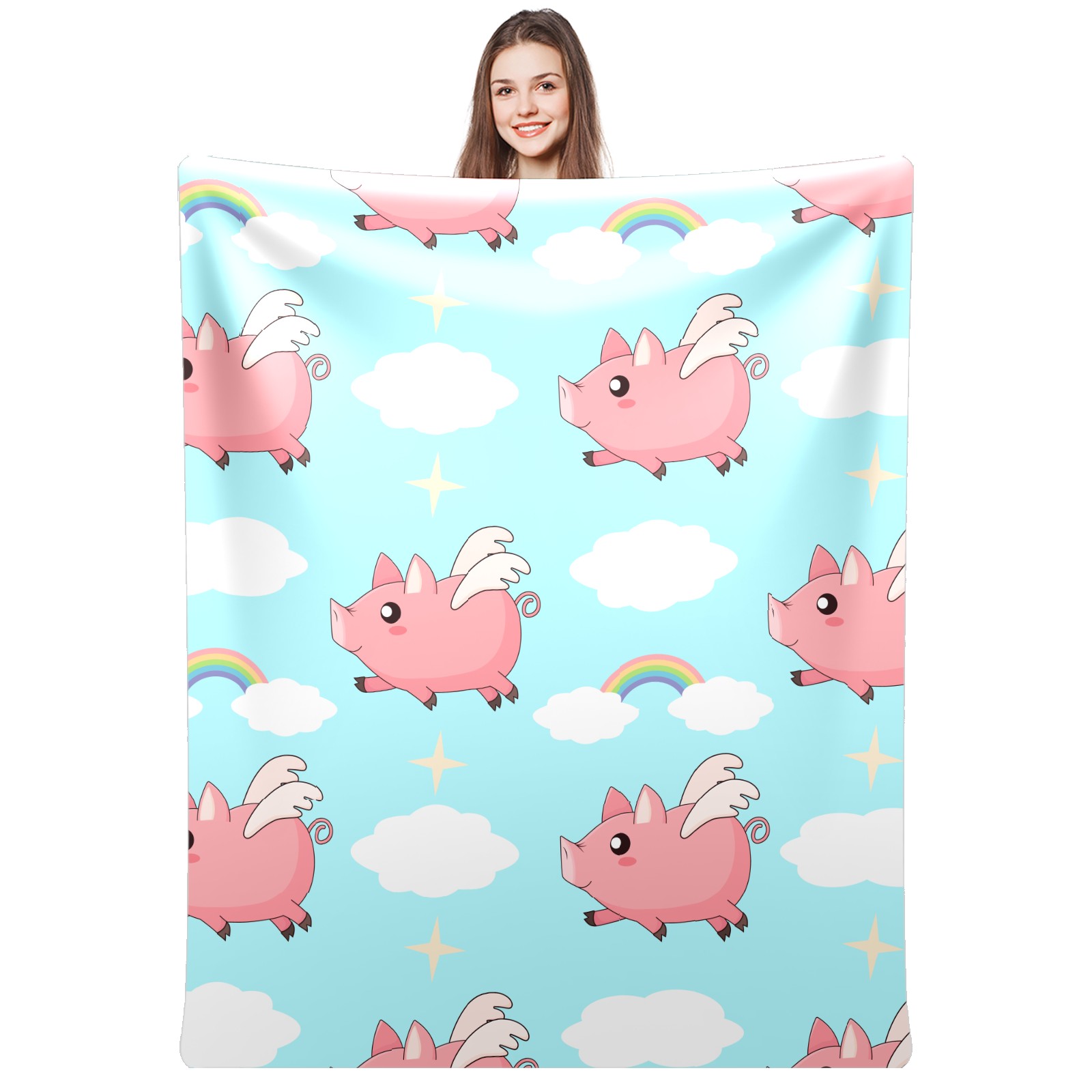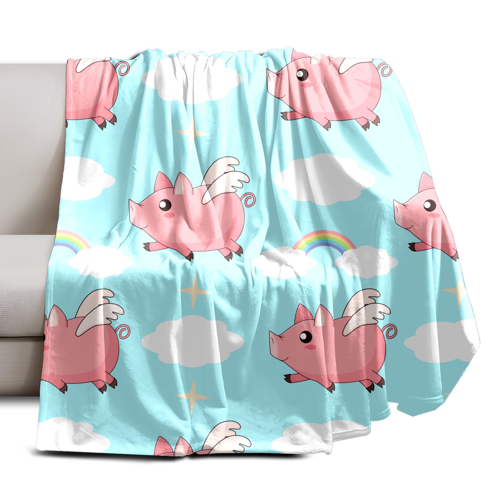 Flannel Blanket, Ultra-Soft Comfortable Home Decor Rug, The Perfect Comfort Gift for Both Men Women, Suitable for Beds, Sofas, Loungewear, and Travel 30x39in(Pink Angel Pig)