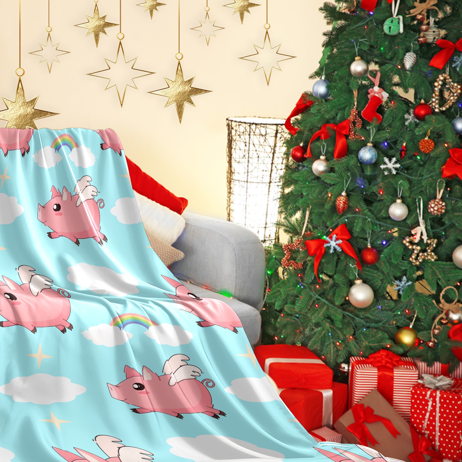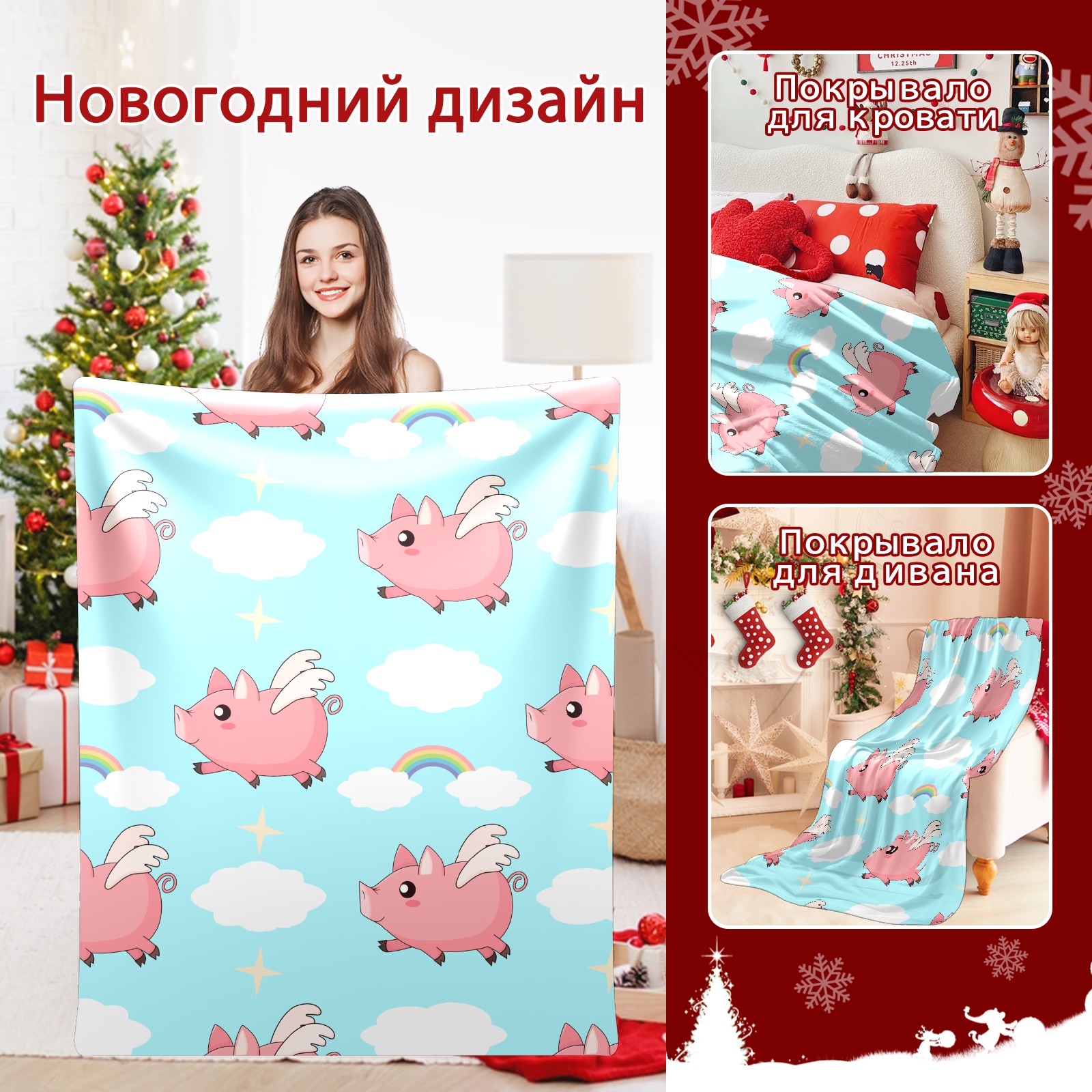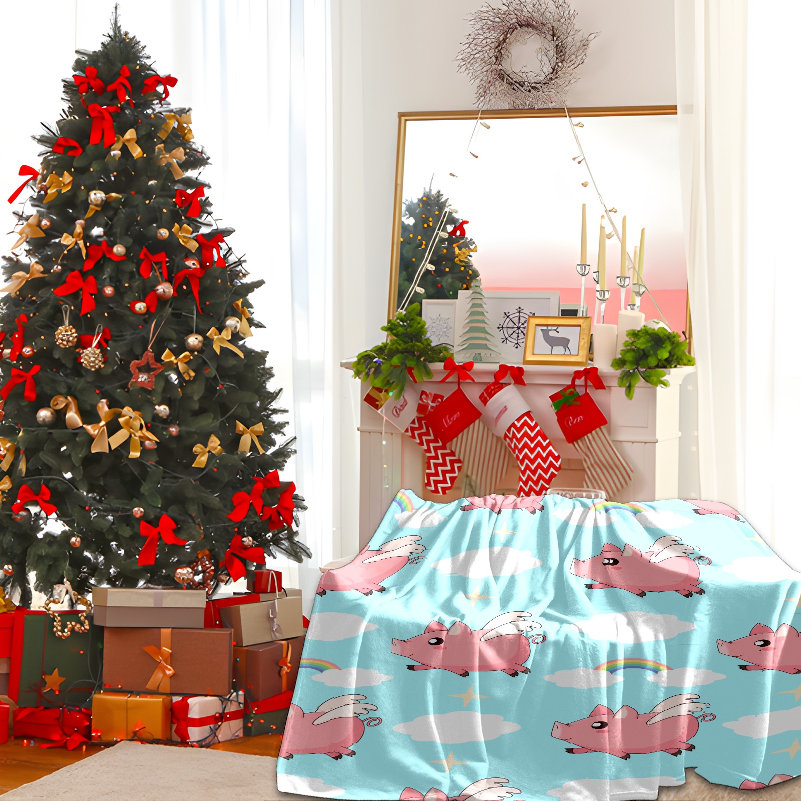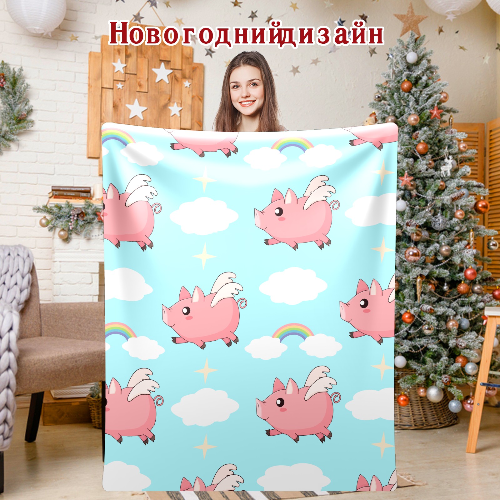 Flannel Blanket, Ultra-Soft Comfortable Home Decor Rug, The Perfect Comfort Gift for Both Men Women, Suitable for Beds, Sofas, Loungewear, and Travel 30x39in(Pink Angel Pig)