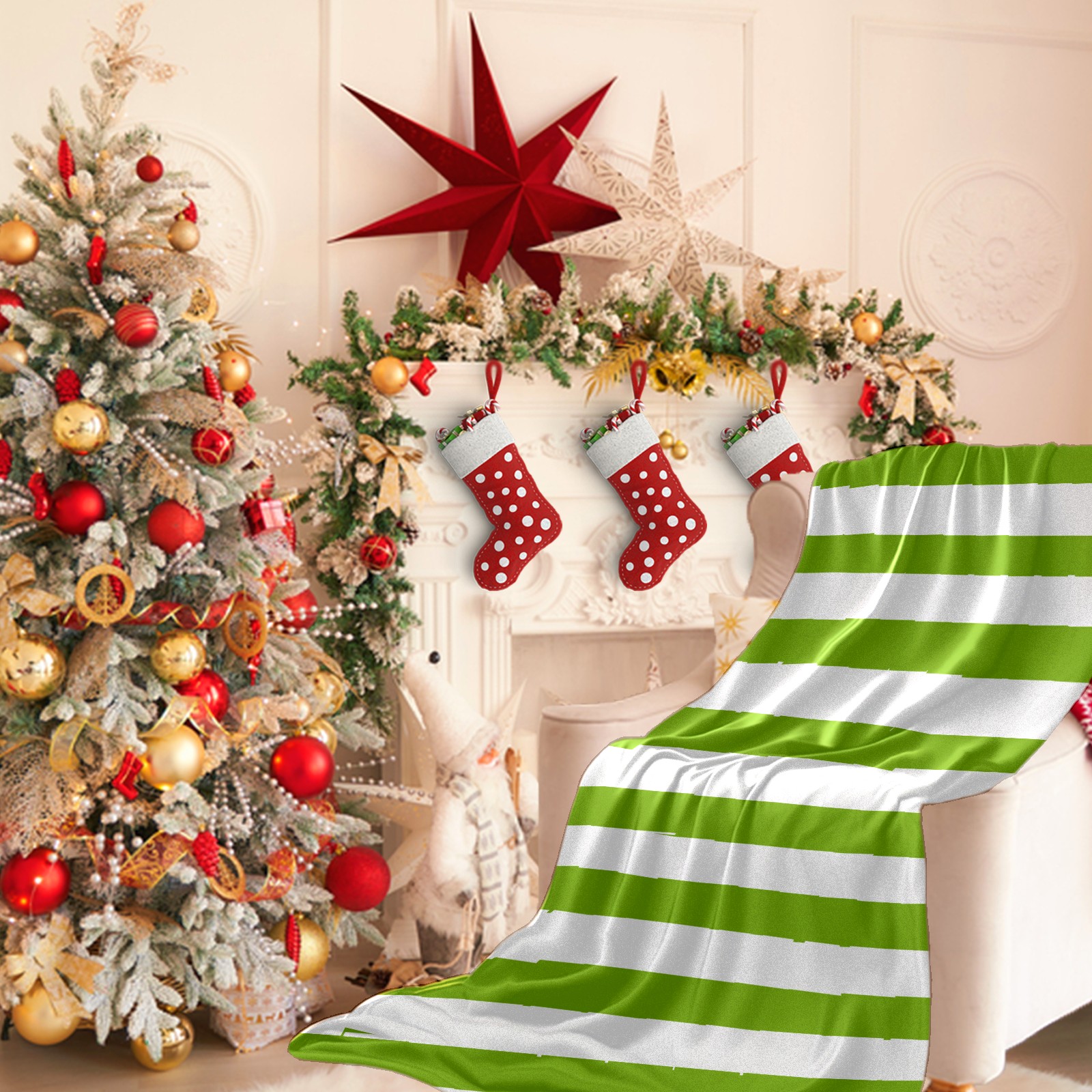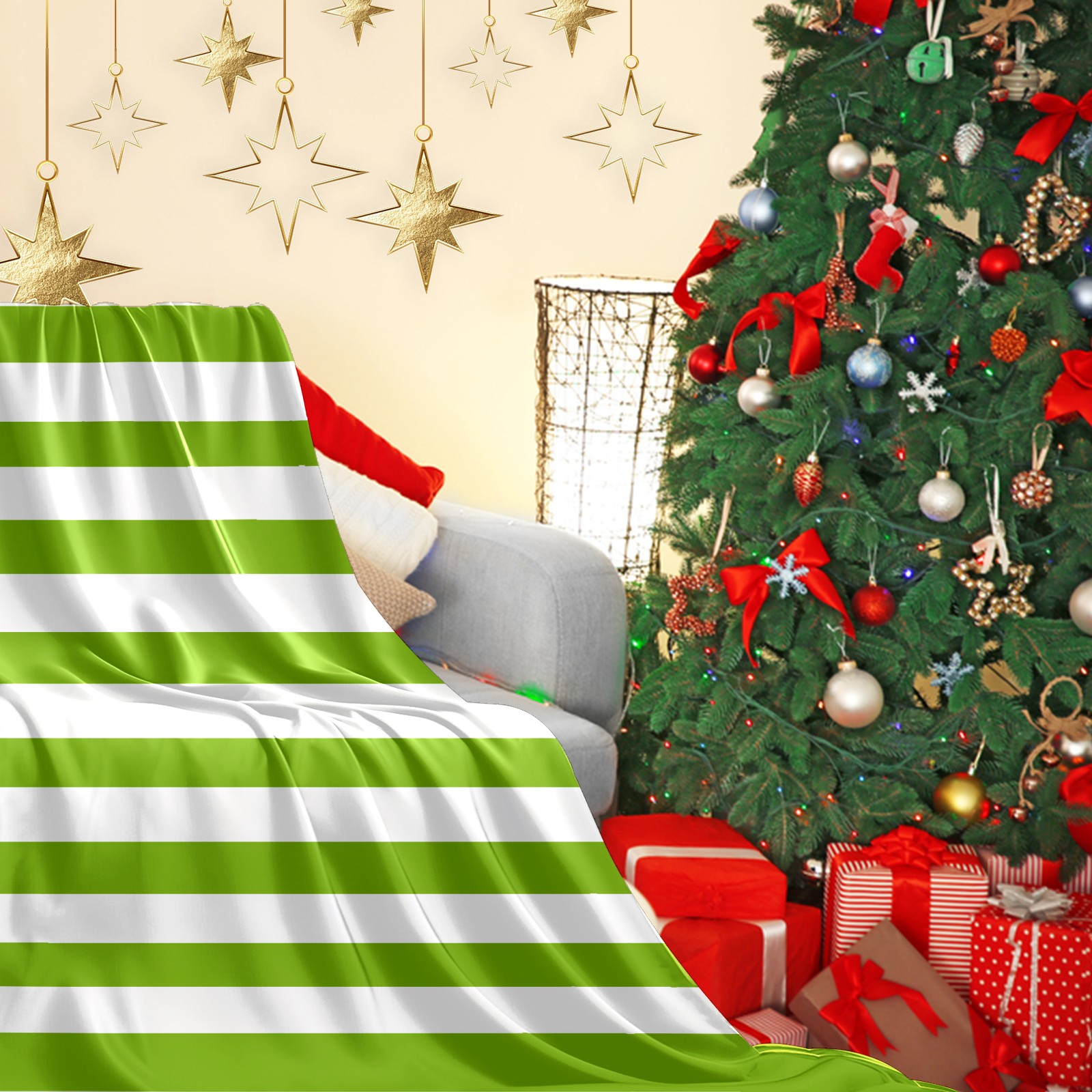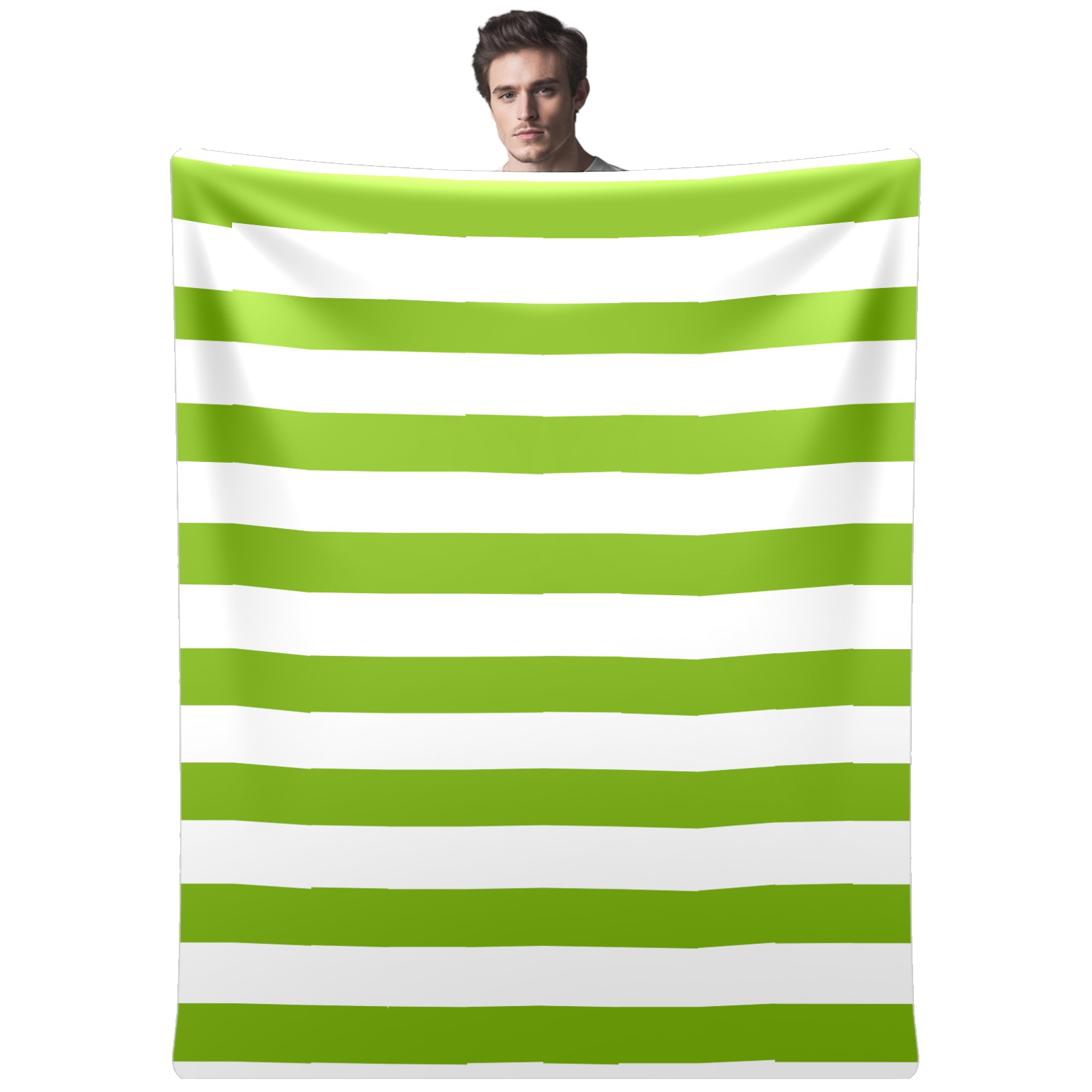 Flannel Blanket, Ultra-Soft Comfortable Home Decor Rug, The Perfect Comfort Gift for Both Men Women, Suitable for Beds, Sofas, Loungewear, and Travel 30x39in(Avocado Green And White Stripe Pattern)