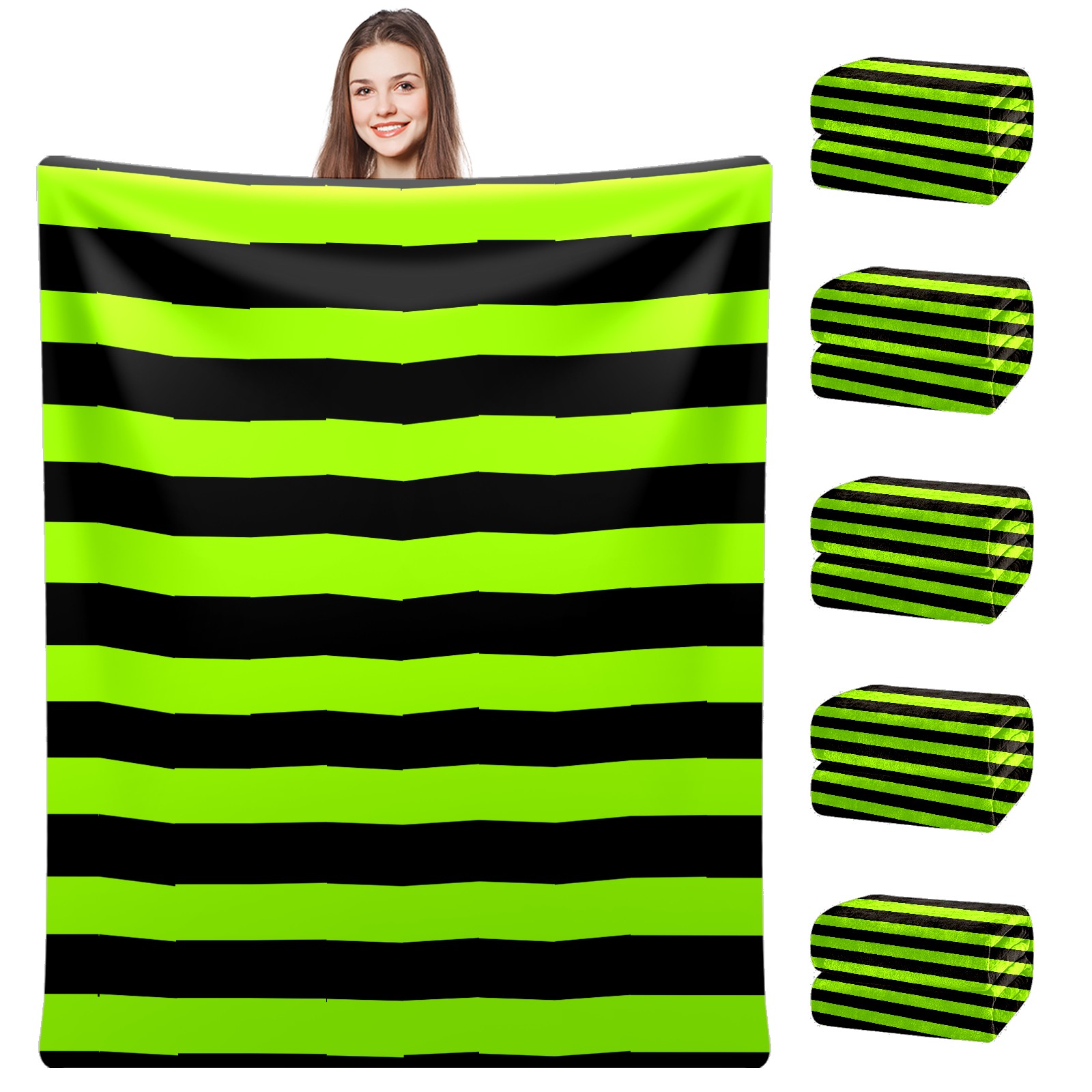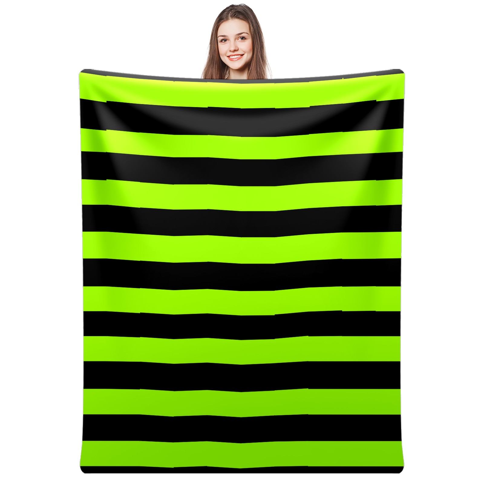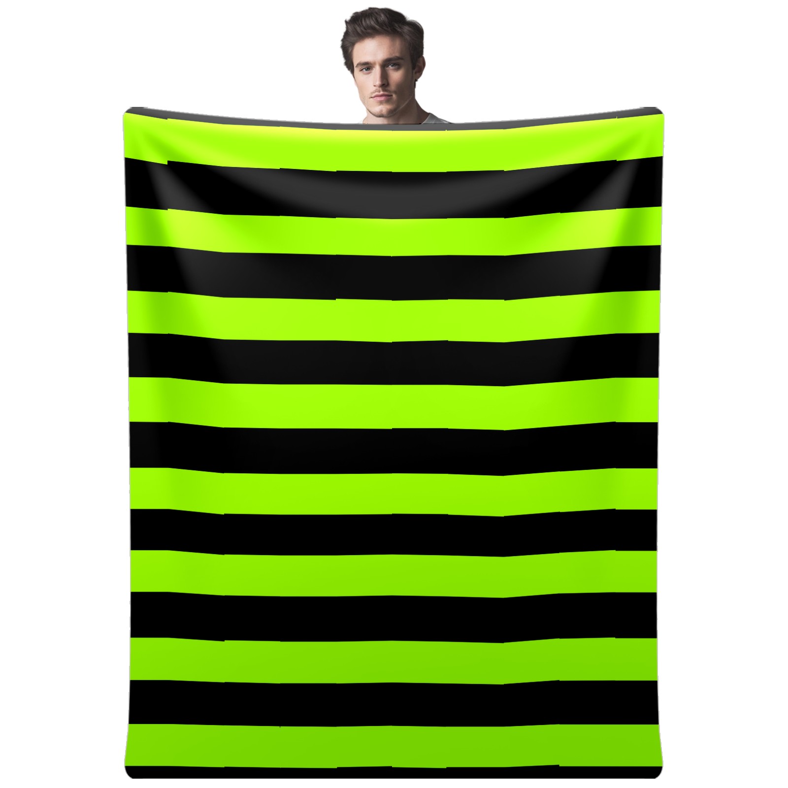 Flannel Blanket, Ultra-Soft Comfortable Home Decor Rug, The Perfect Comfort Gift for Both Men Women, Suitable for Beds, Sofas, Loungewear, and Travel 30x39in(Fluorescent Green And Black Stripe Pattern)