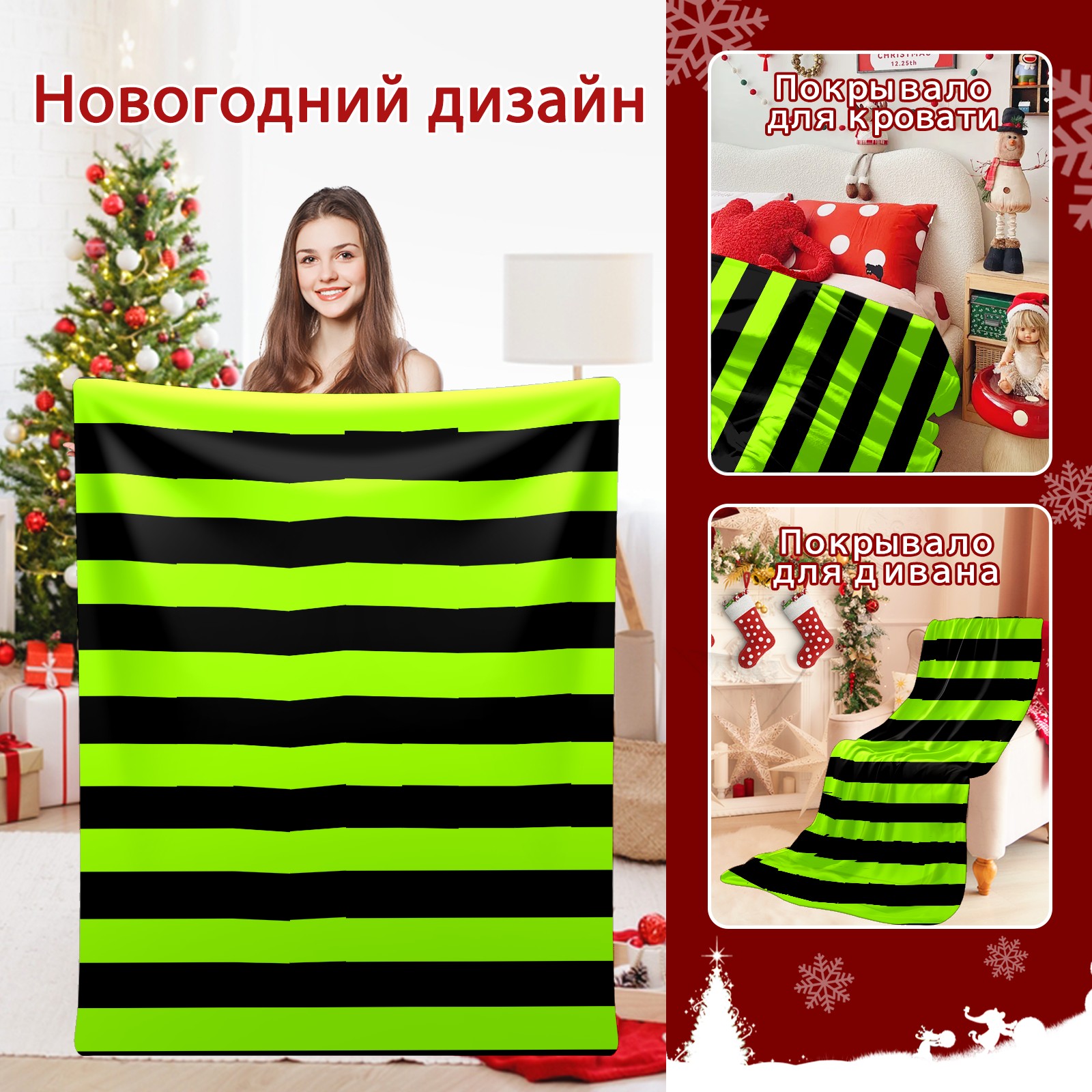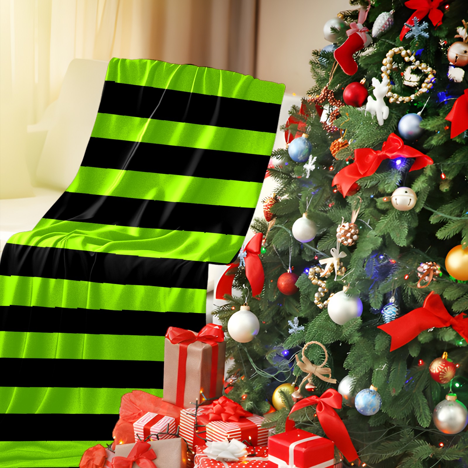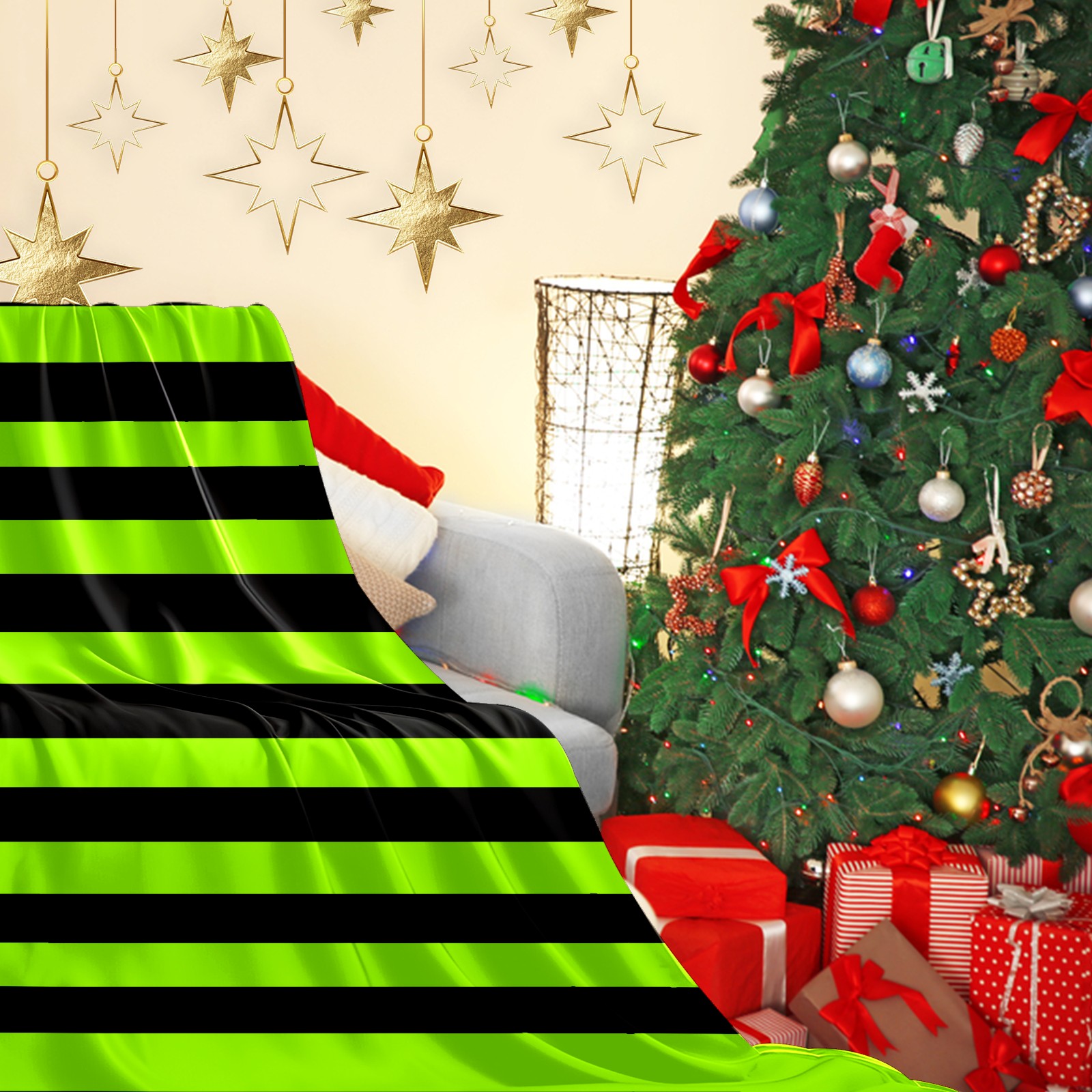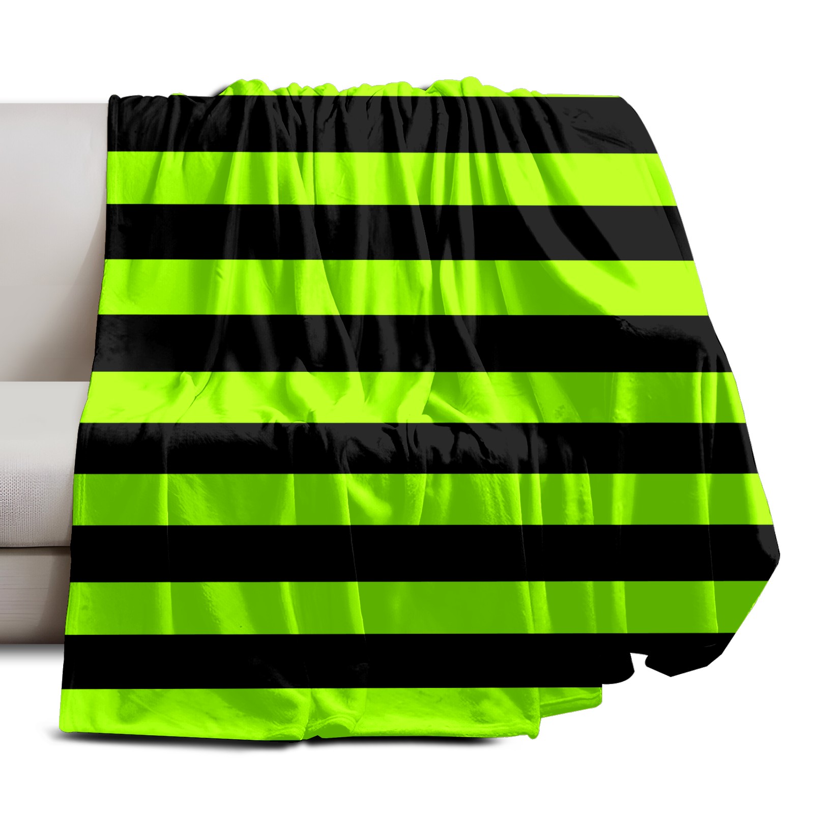 Flannel Blanket, Ultra-Soft Comfortable Home Decor Rug, The Perfect Comfort Gift for Both Men Women, Suitable for Beds, Sofas, Loungewear, and Travel 30x39in(Fluorescent Green And Black Stripe Pattern)