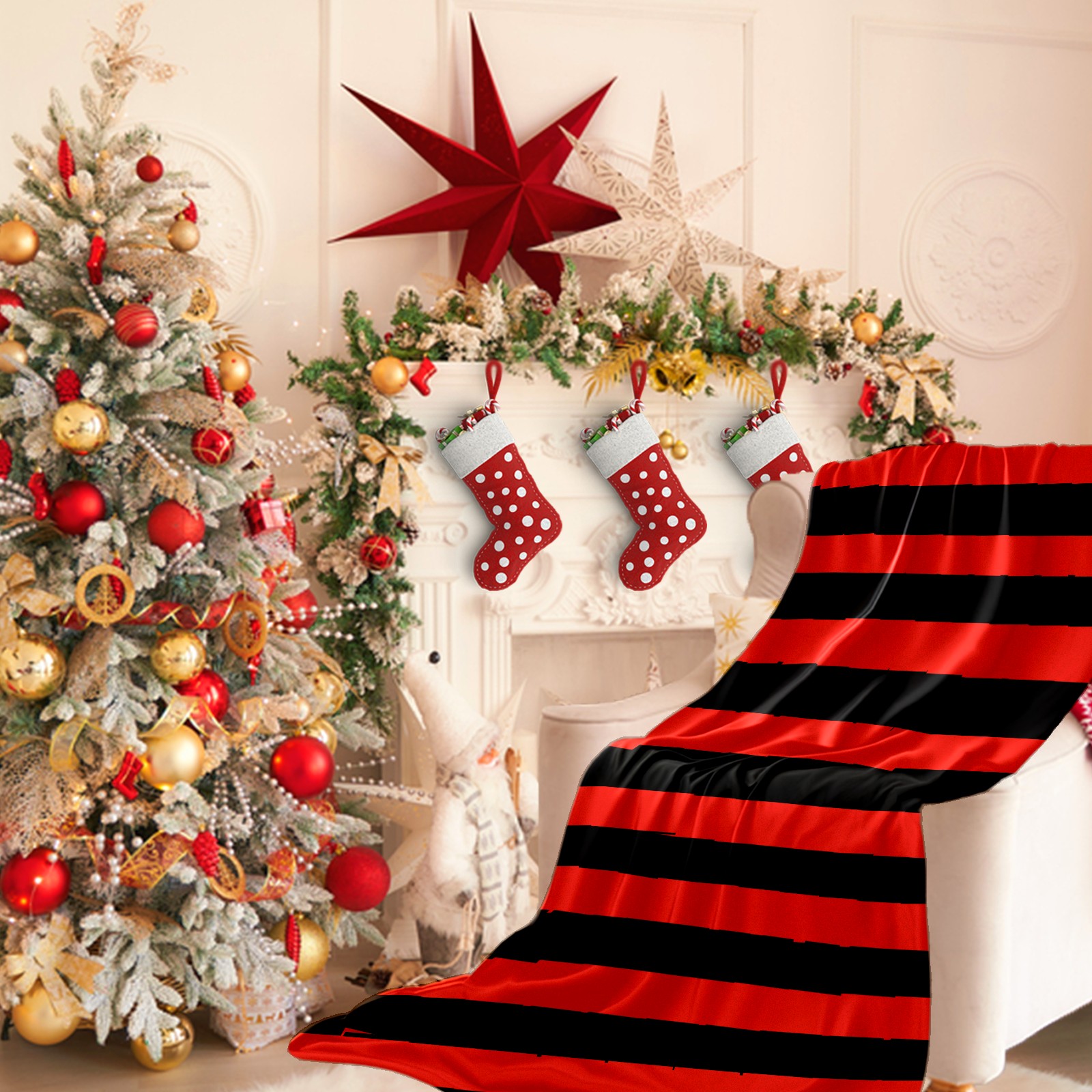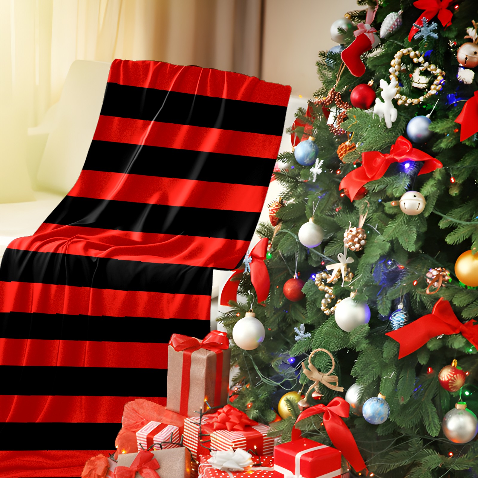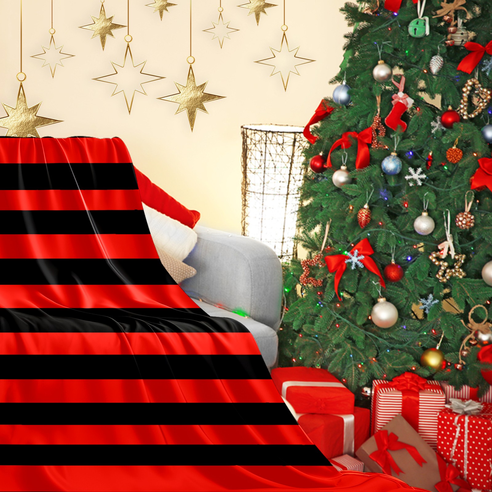 Flannel Blanket, Ultra-Soft Comfortable Home Decor Rug, The Perfect Comfort Gift for Both Men Women, Suitable for Beds, Sofas, Loungewear, and Travel 30x39in(Black And Red Stripe Pattern)
