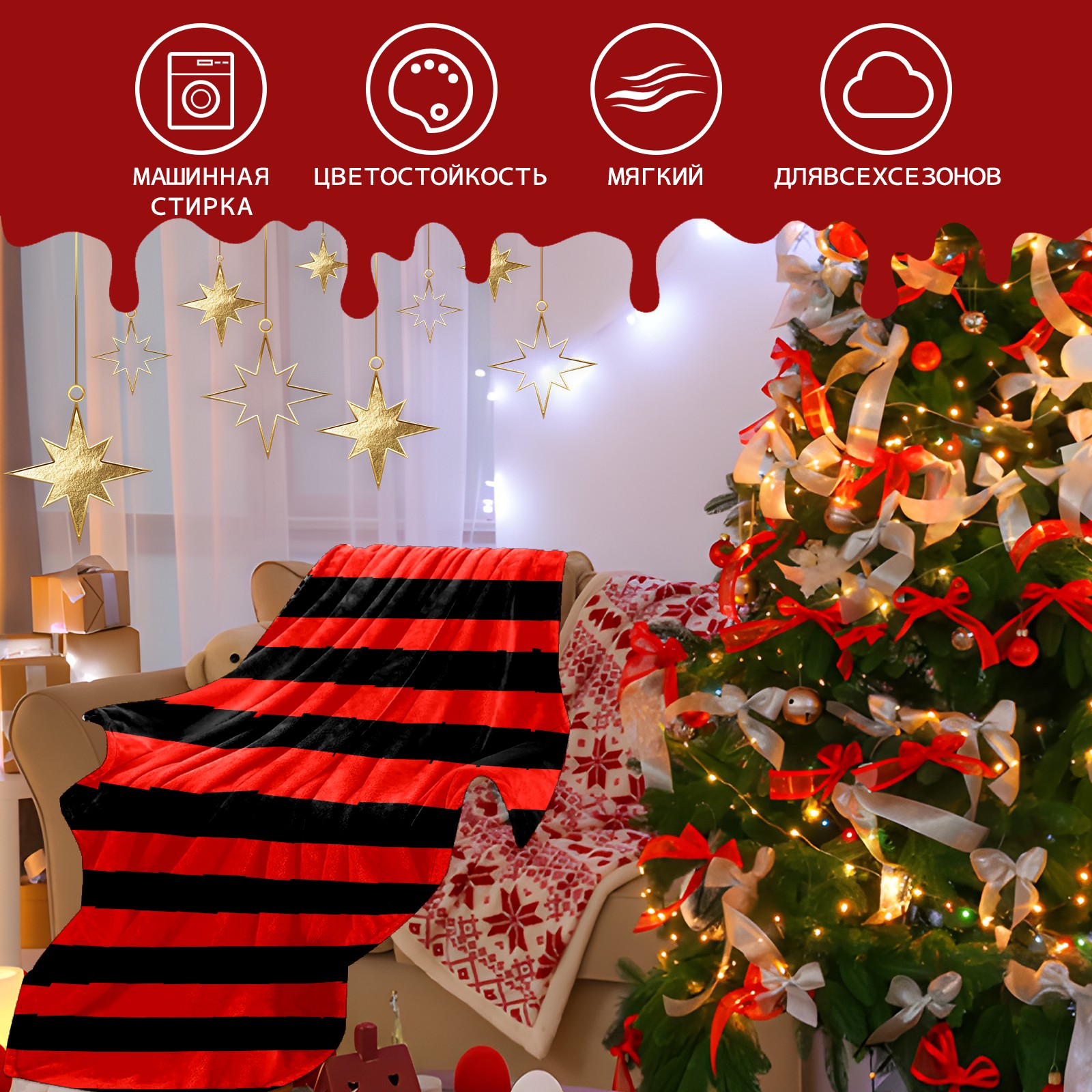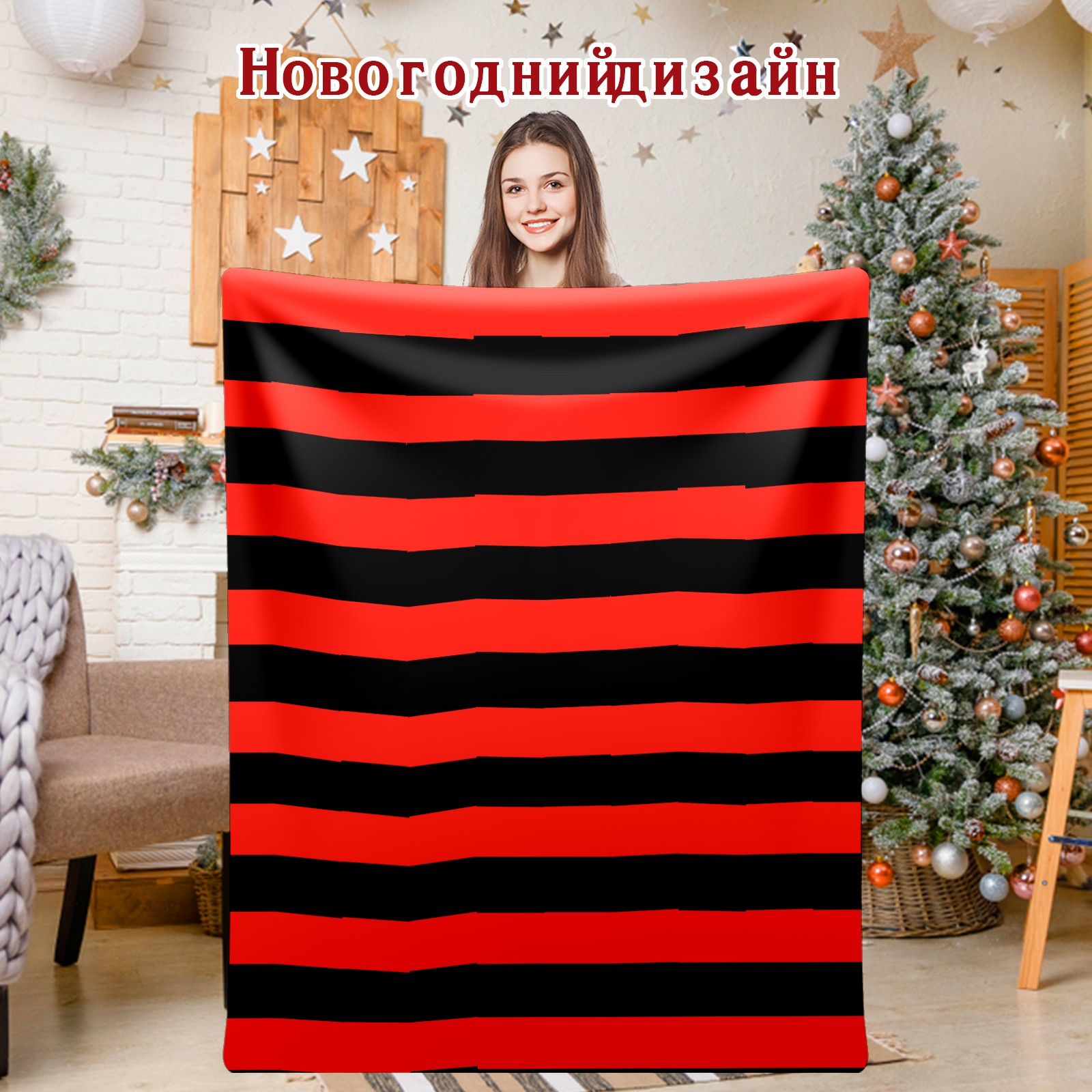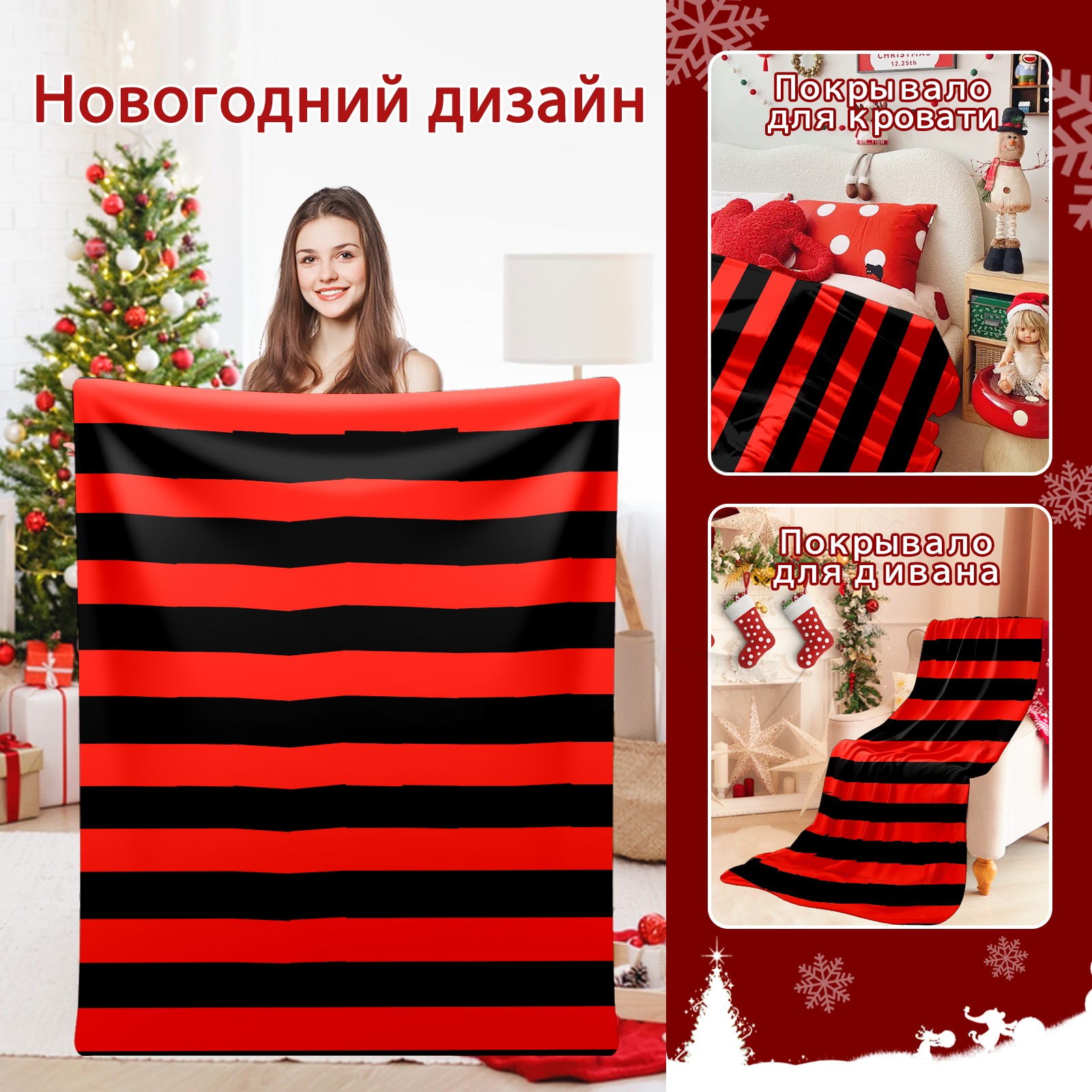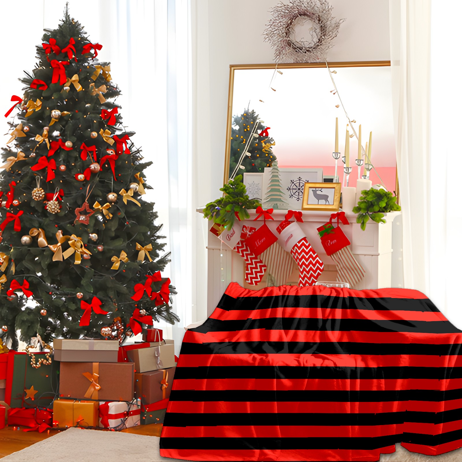 Flannel Blanket, Ultra-Soft Comfortable Home Decor Rug, The Perfect Comfort Gift for Both Men Women, Suitable for Beds, Sofas, Loungewear, and Travel 30x39in(Black And Red Stripe Pattern)