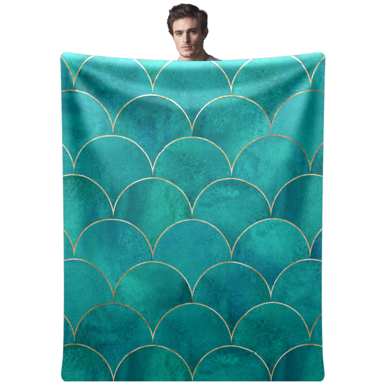 Flannel Blanket, Ultra-Soft Comfortable Home Decor Rug, The Perfect Comfort Gift for Both Men Women, Suitable for Beds, Sofas, Loungewear, and Travel 30x39in(Green Scale Pattern)