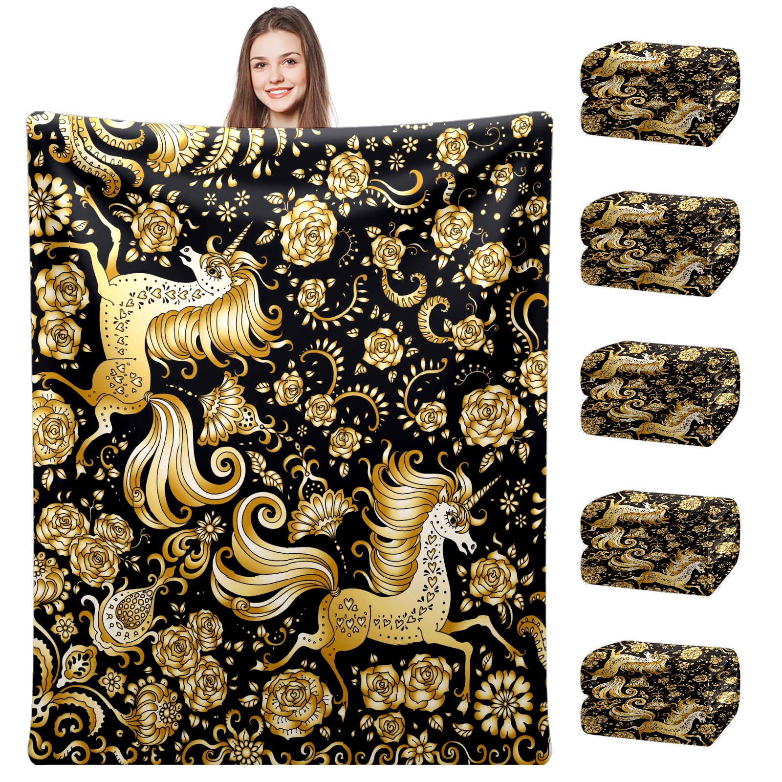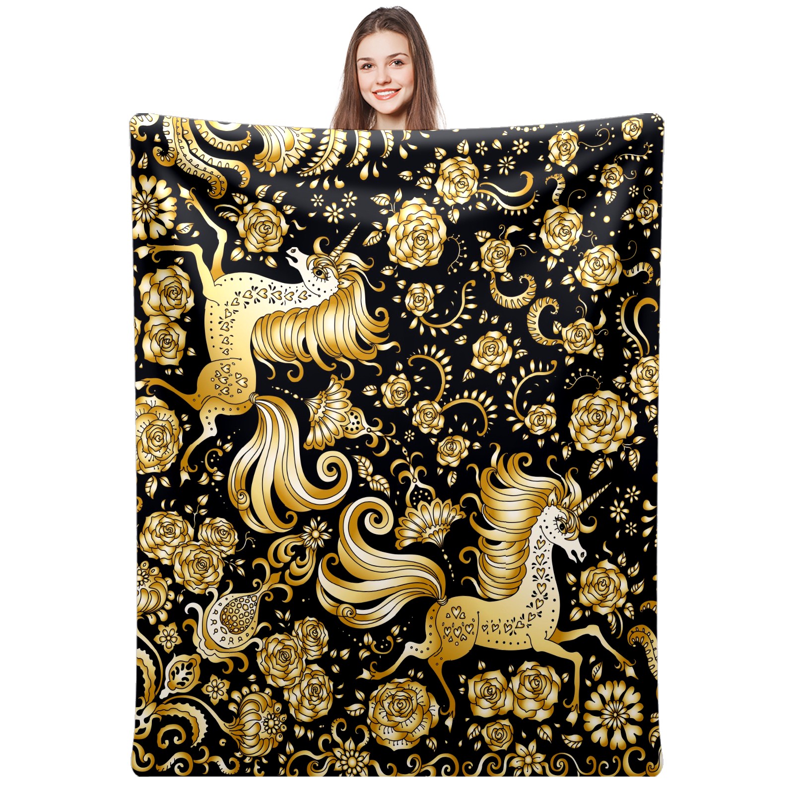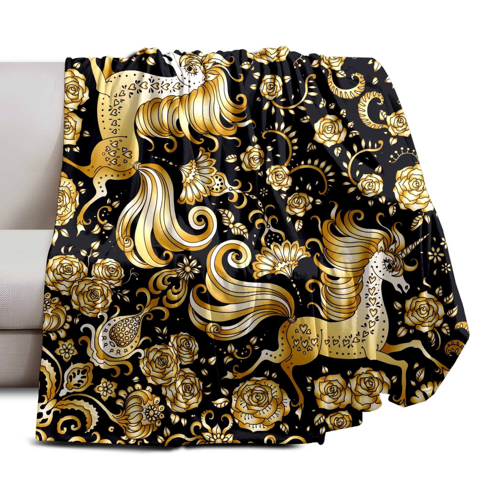 Flannel Blanket, Ultra-Soft Comfortable Home Decor Rug, The Perfect Comfort Gift for Both Men Women, Suitable for Beds, Sofas, Loungewear, and Travel 30x39in(Golden Unicorn)