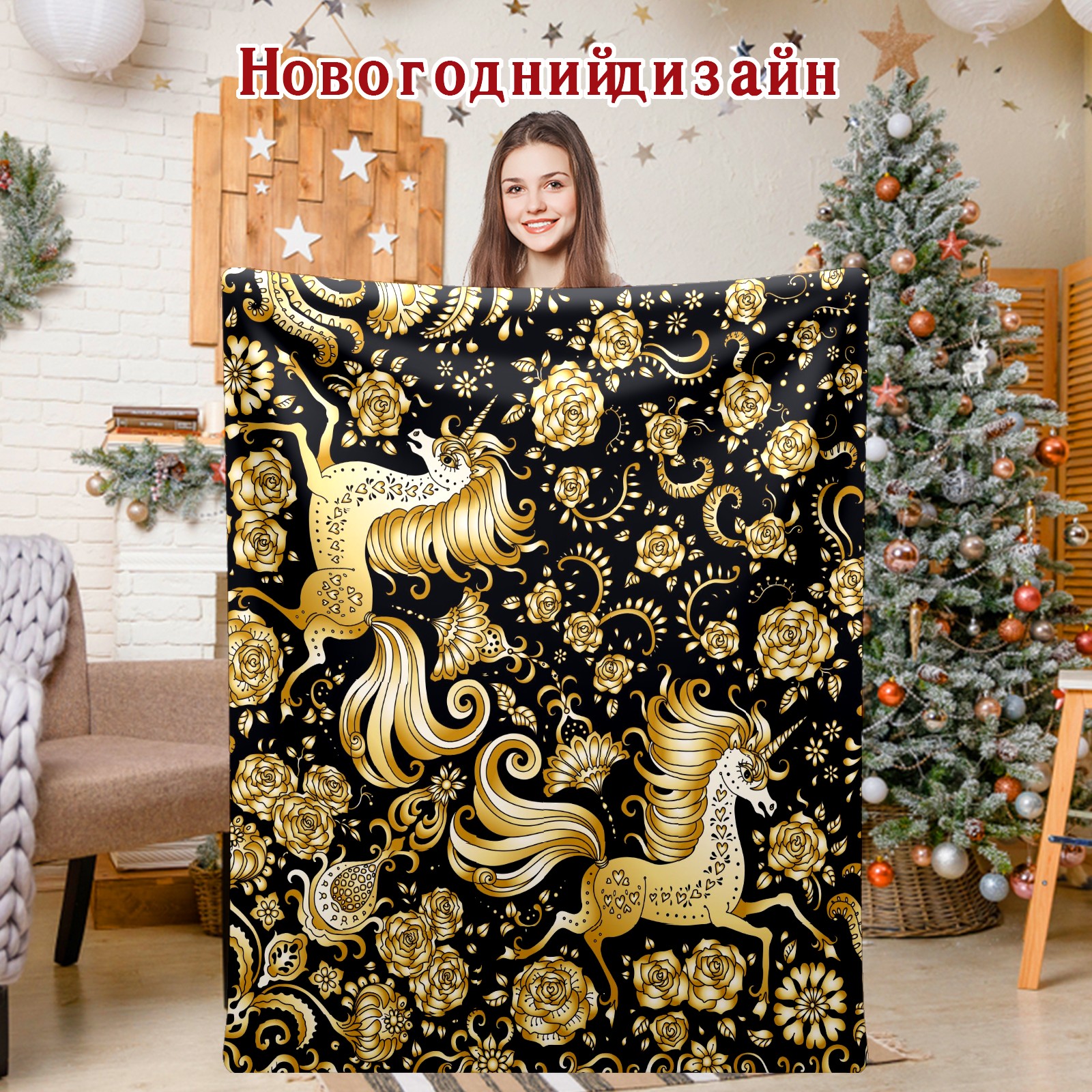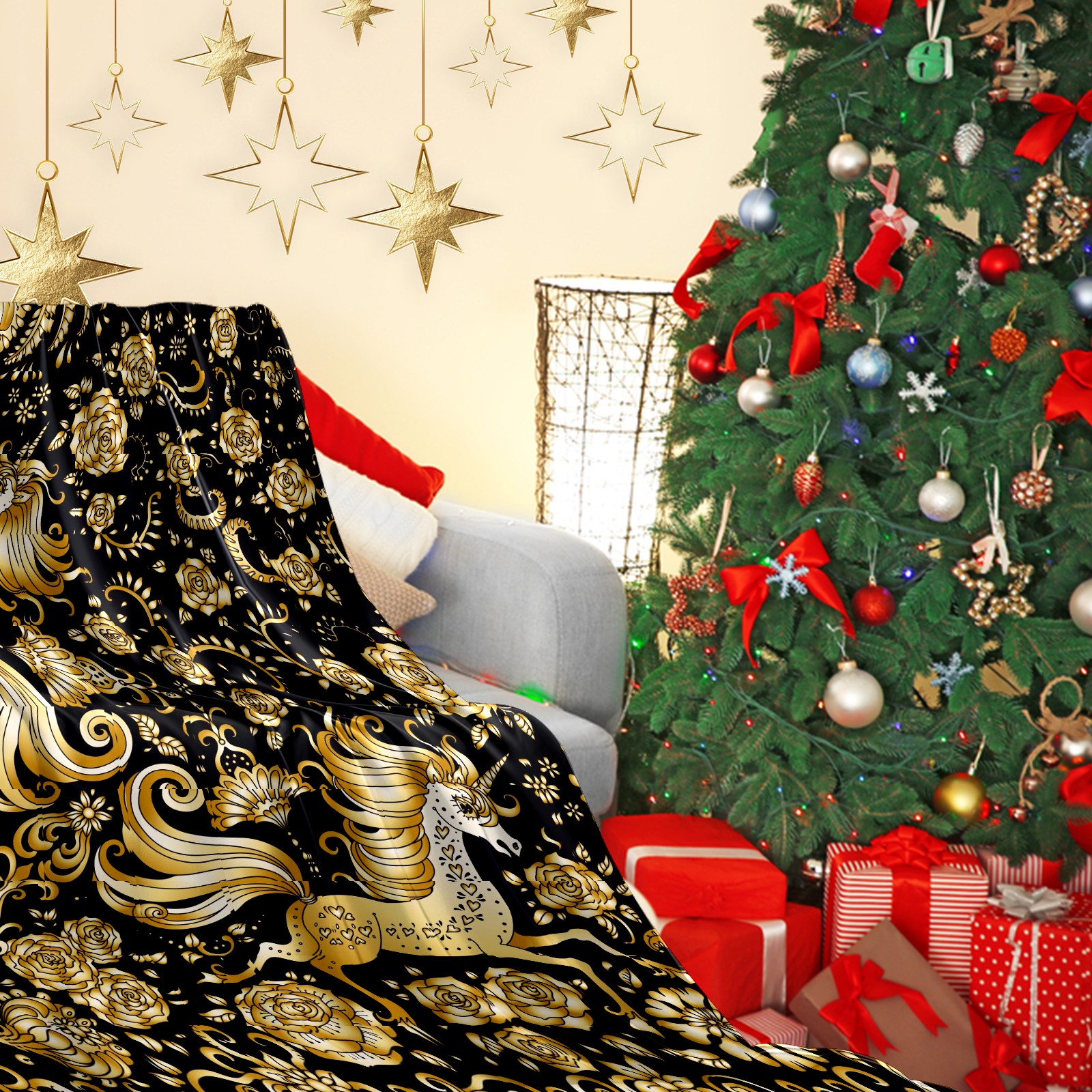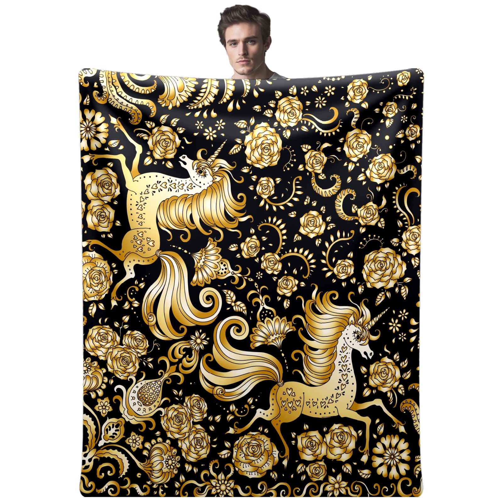 Flannel Blanket, Ultra-Soft Comfortable Home Decor Rug, The Perfect Comfort Gift for Both Men Women, Suitable for Beds, Sofas, Loungewear, and Travel 30x39in(Golden Unicorn)