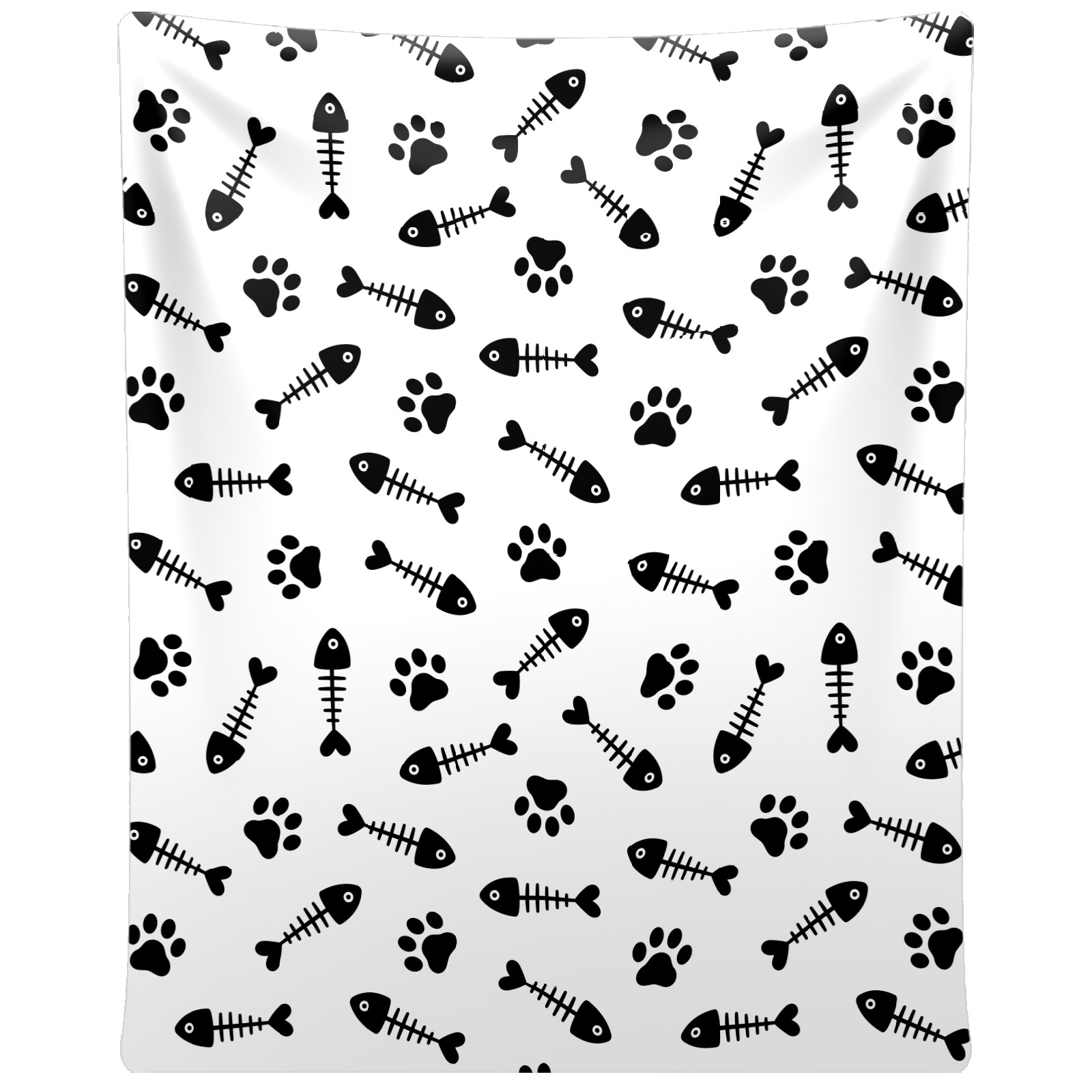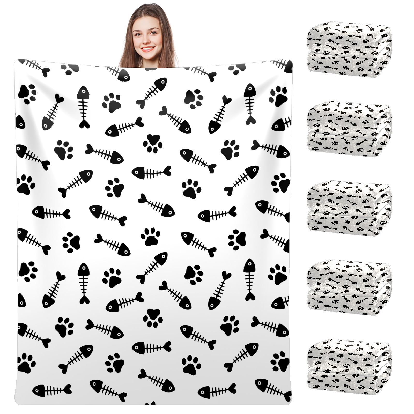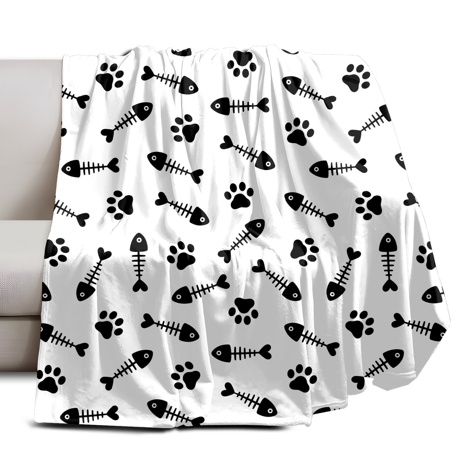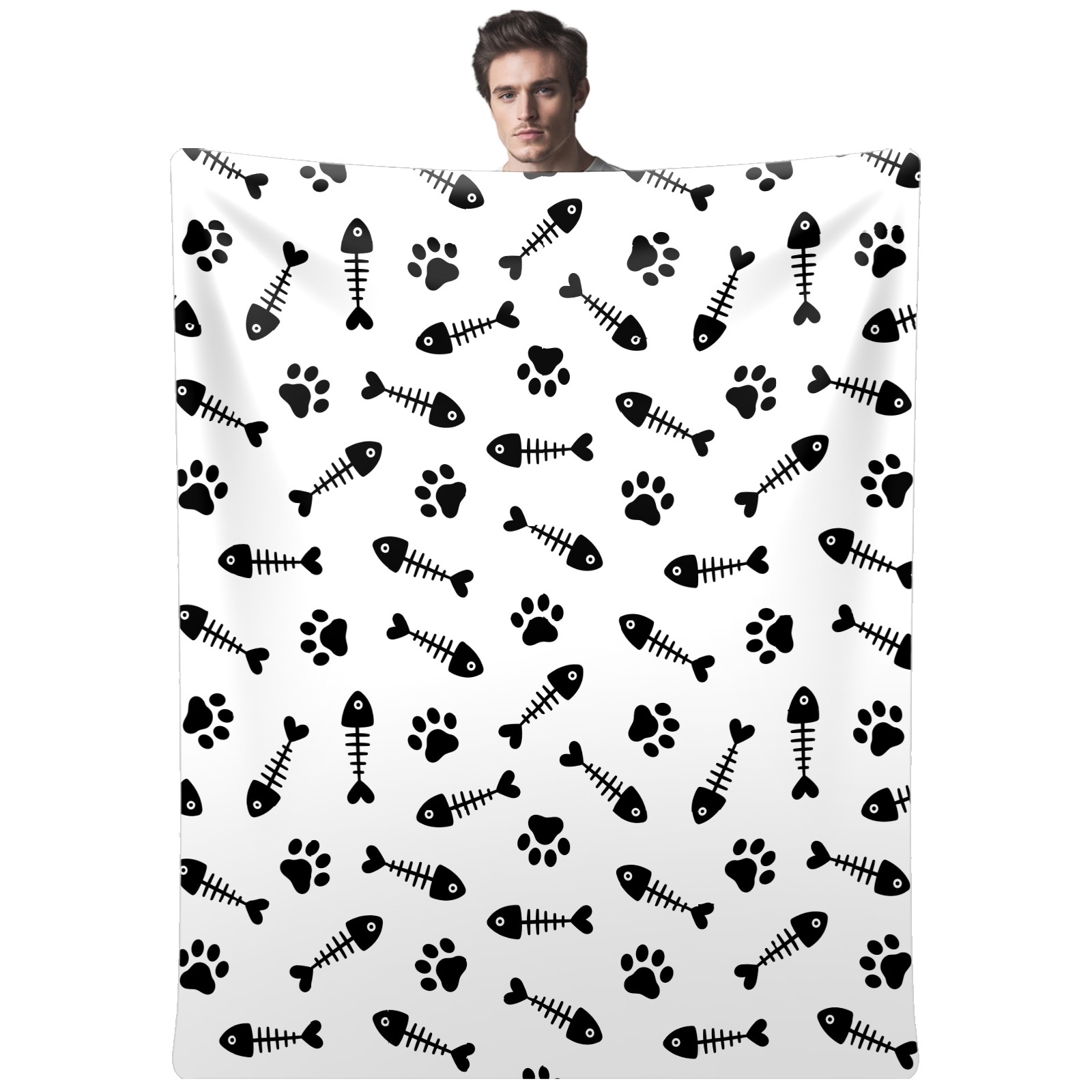 Flannel Blanket, Ultra-Soft Comfortable Home Decor Rug, The Perfect Comfort Gift for Both Men Women, Suitable for Beds, Sofas, Loungewear, and Travel 30x39in(Fishbone Cat Dog Paw Pattern)