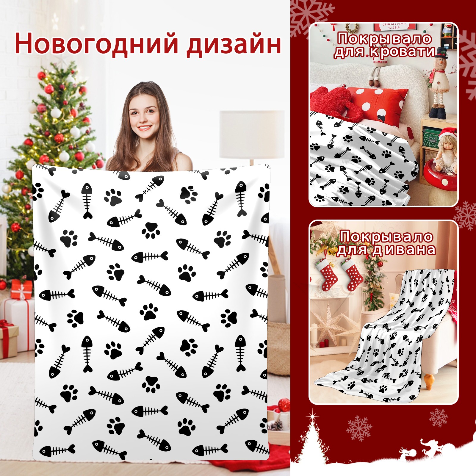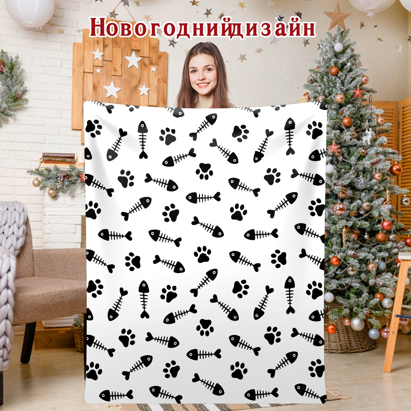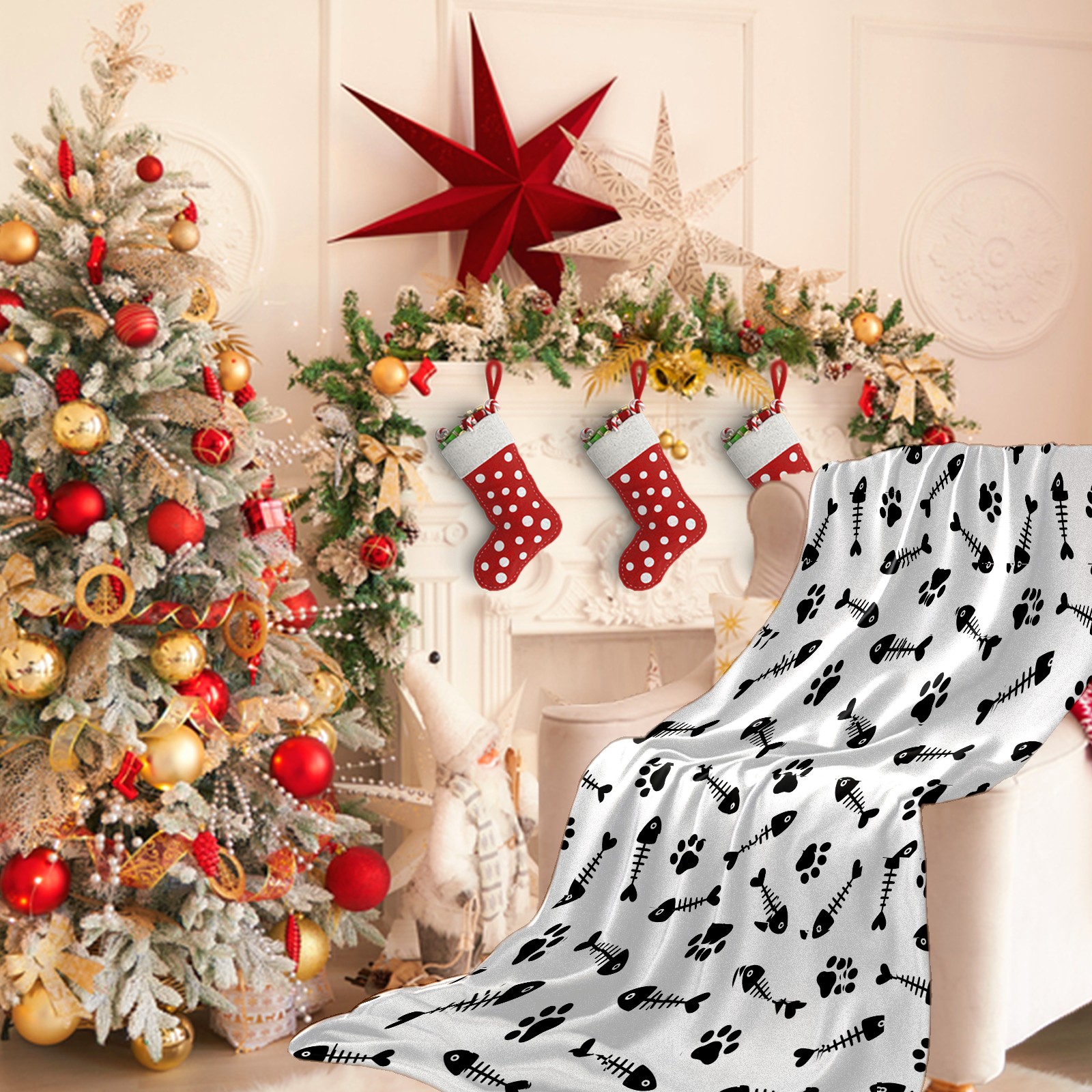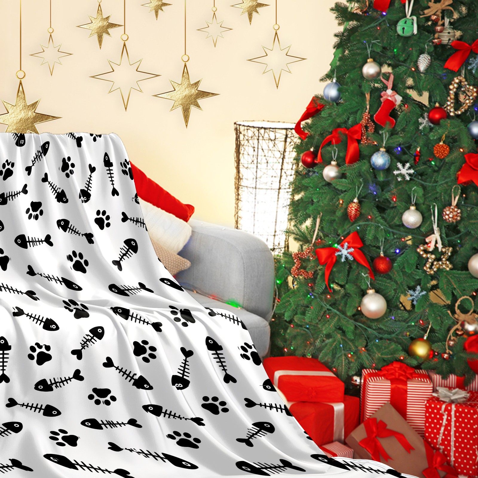 Flannel Blanket, Ultra-Soft Comfortable Home Decor Rug, The Perfect Comfort Gift for Both Men Women, Suitable for Beds, Sofas, Loungewear, and Travel 30x39in(Fishbone Cat Dog Paw Pattern)