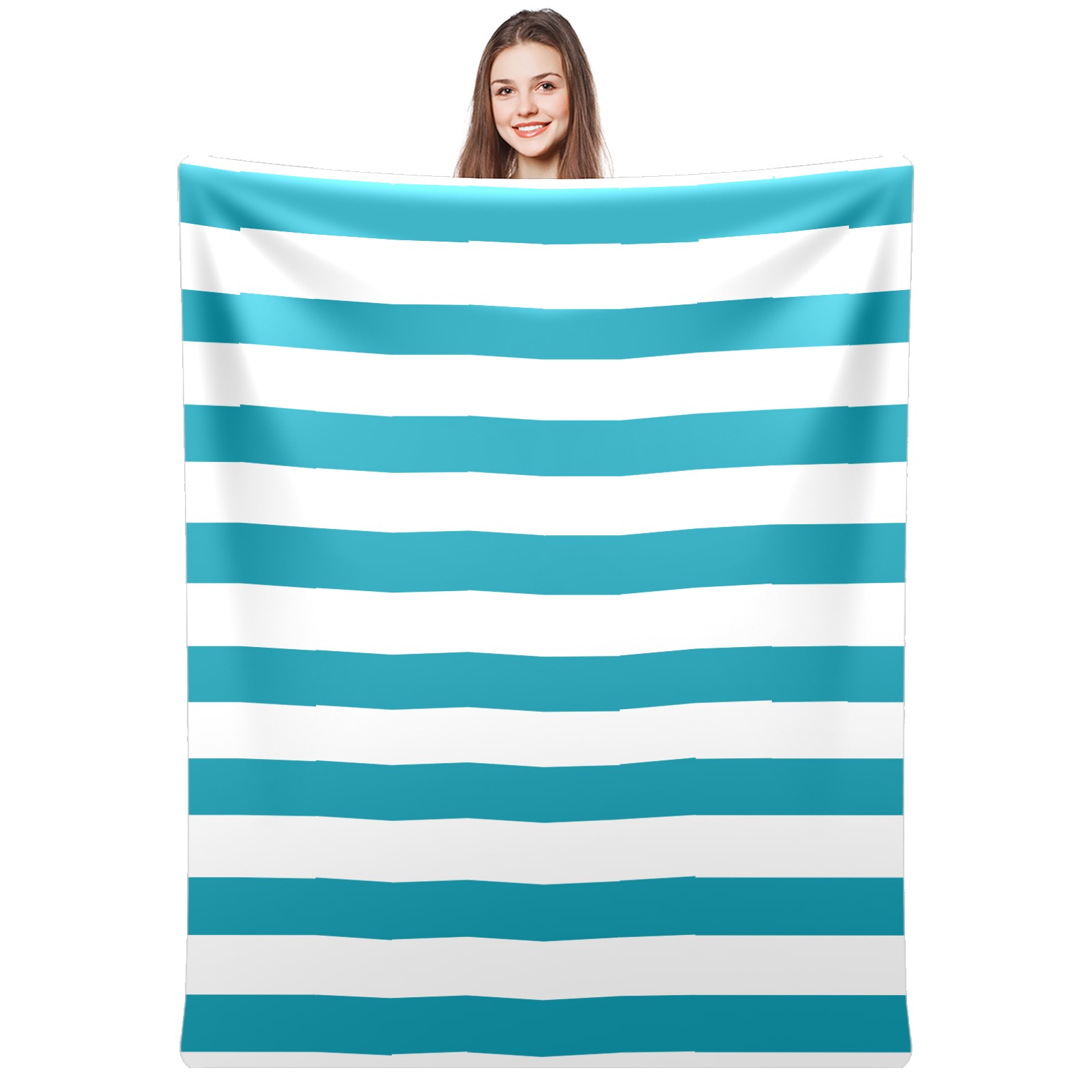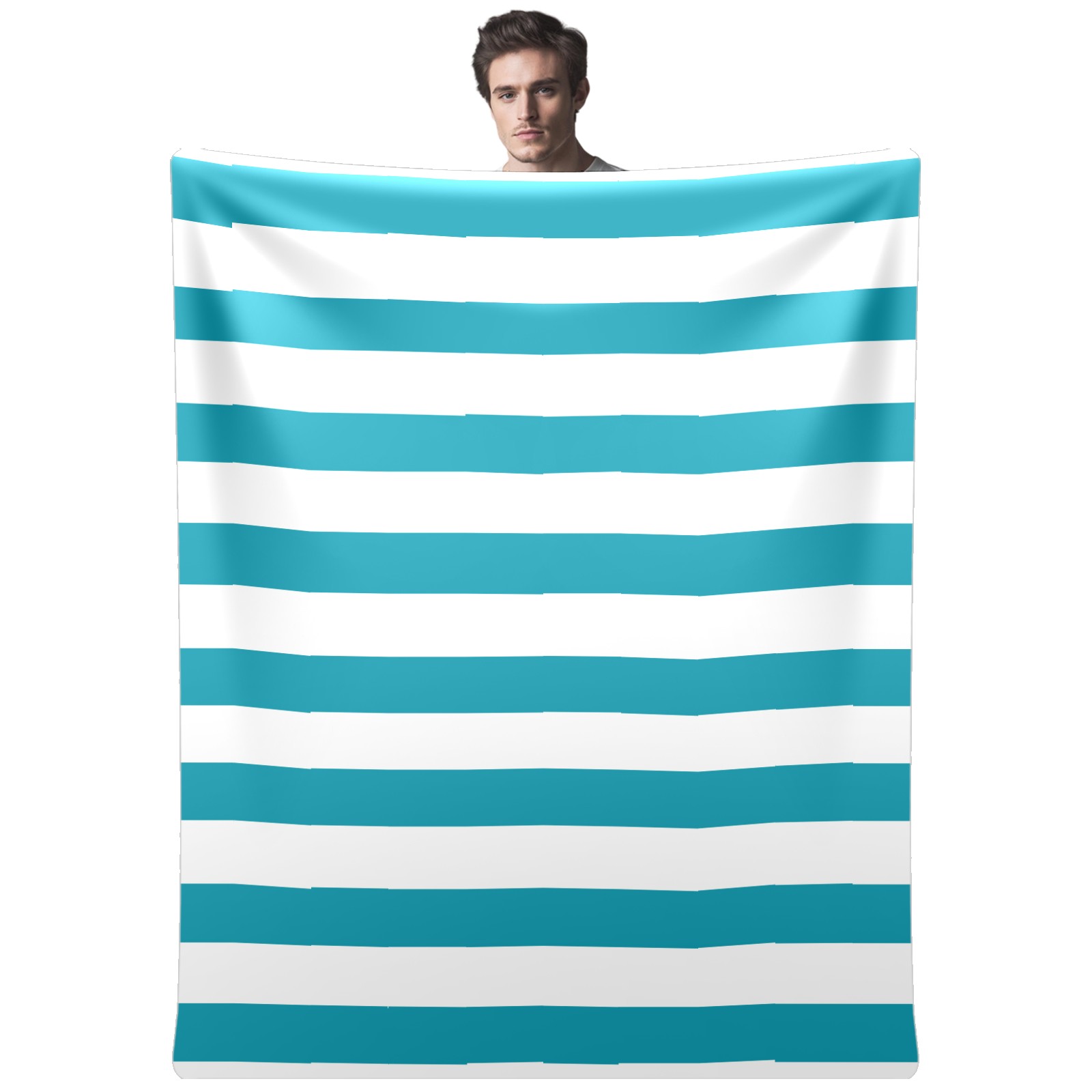 Flannel Blanket, Ultra-Soft Comfortable Home Decor Rug, The Perfect Comfort Gift for Both Men Women, Suitable for Beds, Sofas, Loungewear, and Travel 30x39in(Blue And White Stripe Pattern)