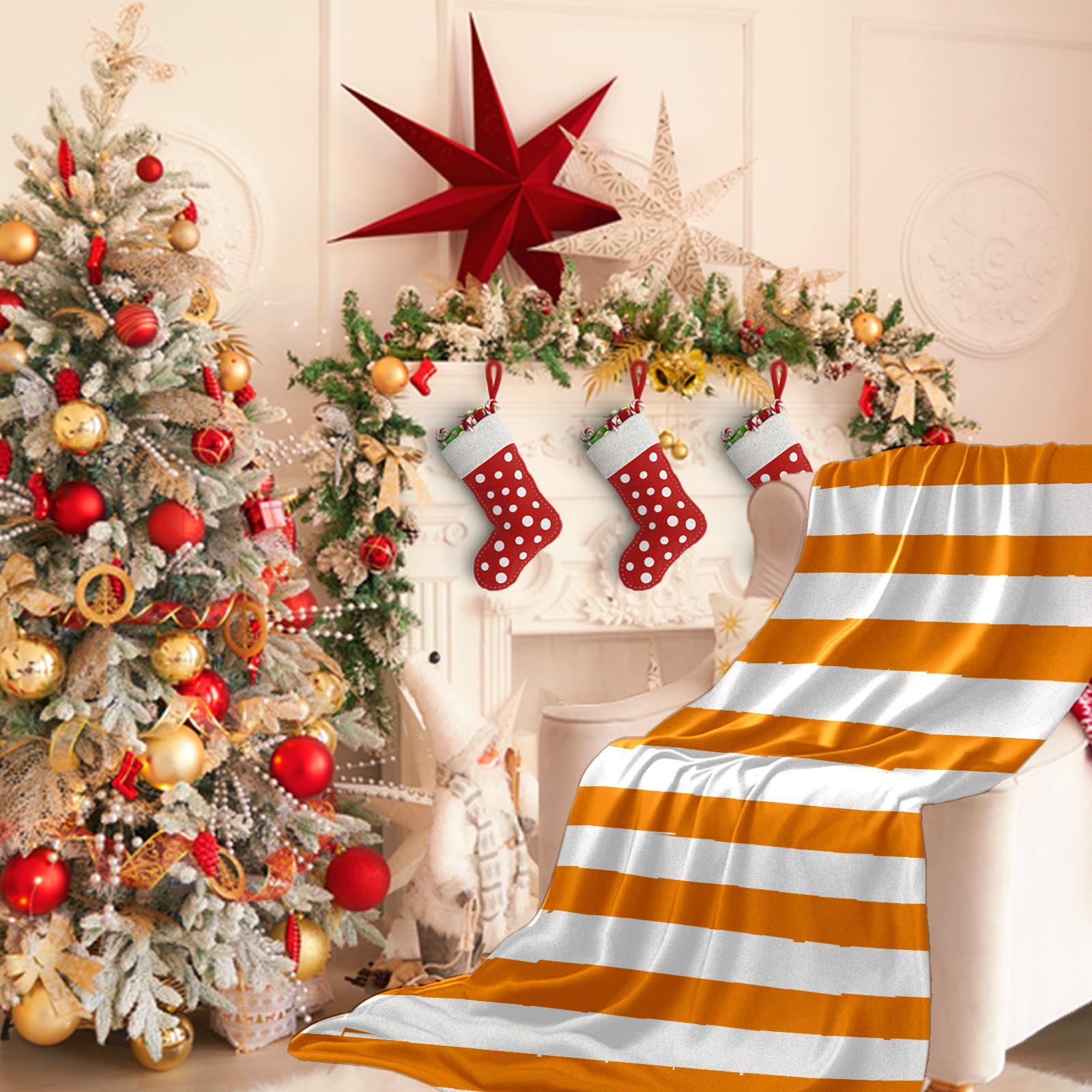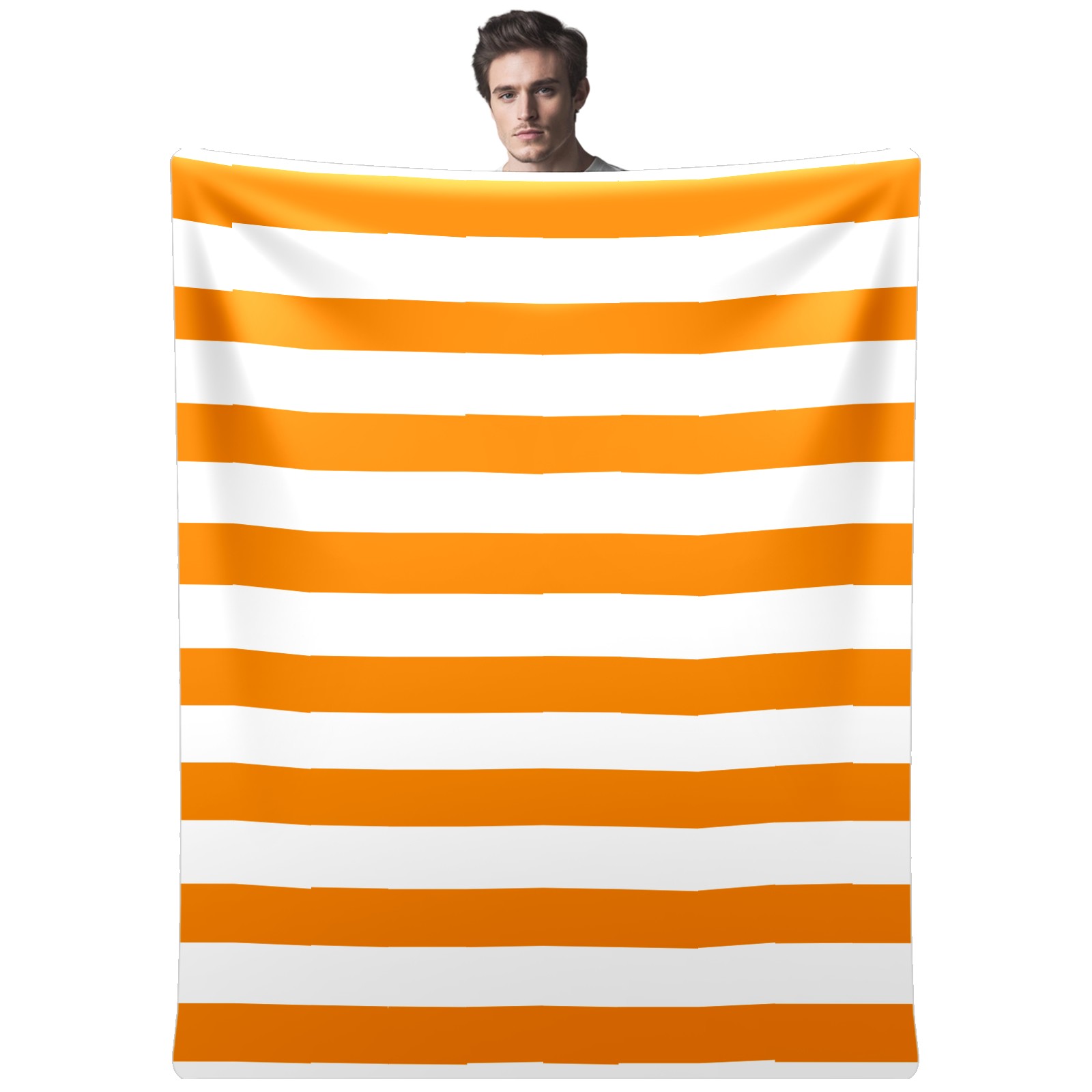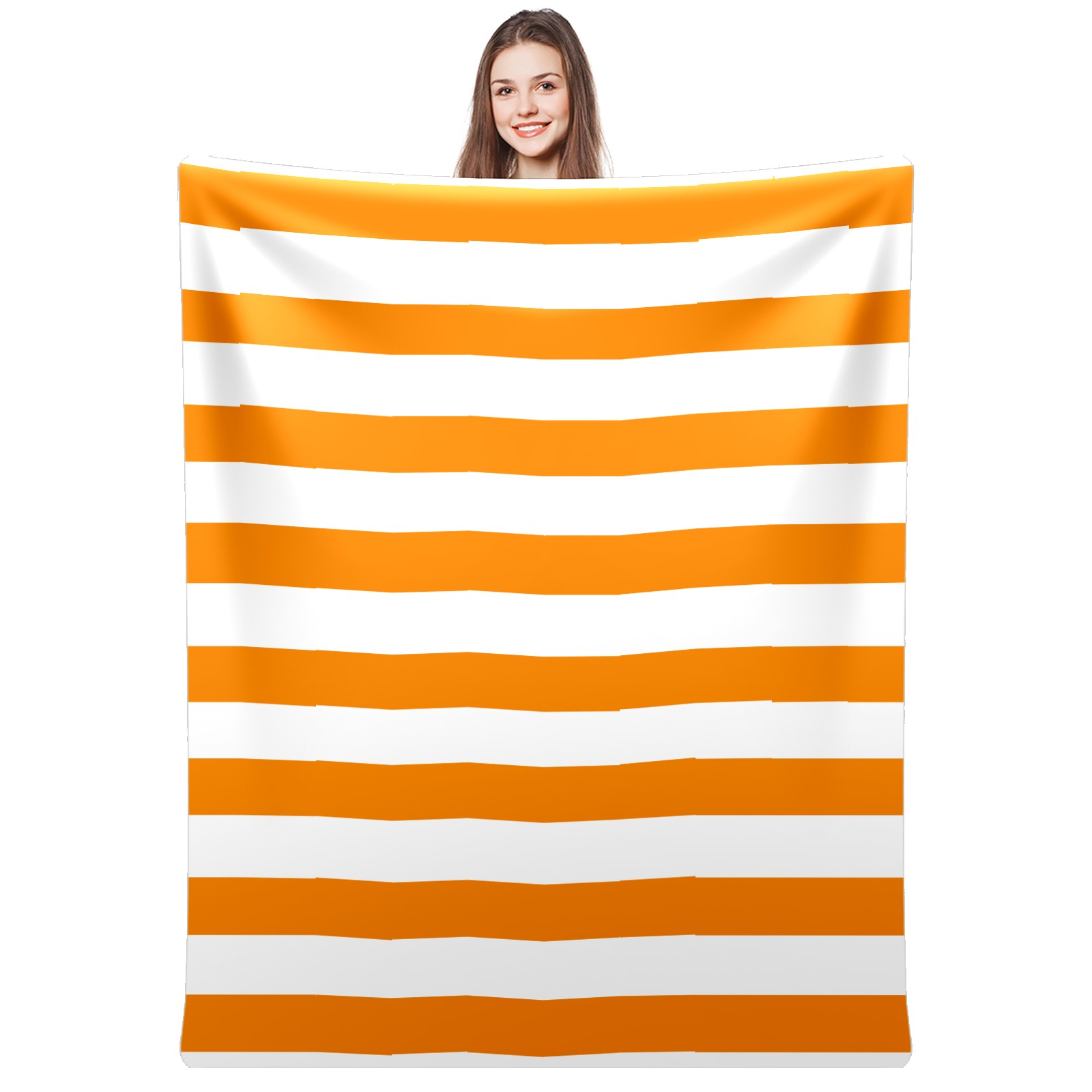 Flannel Blanket, Ultra-Soft Comfortable Home Decor Rug, The Perfect Comfort Gift for Both Men Women, Suitable for Beds, Sofas, Loungewear, and Travel 30x39in(Orange And White Stripe Pattern)