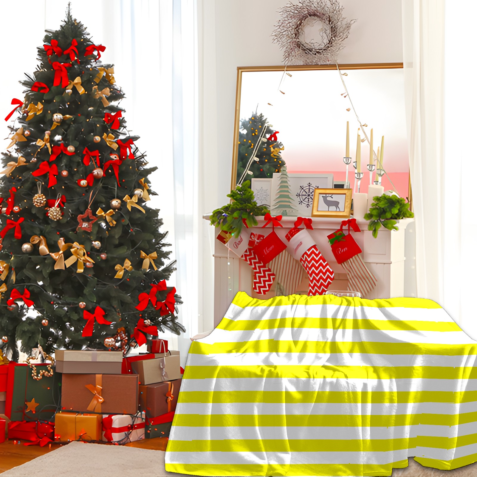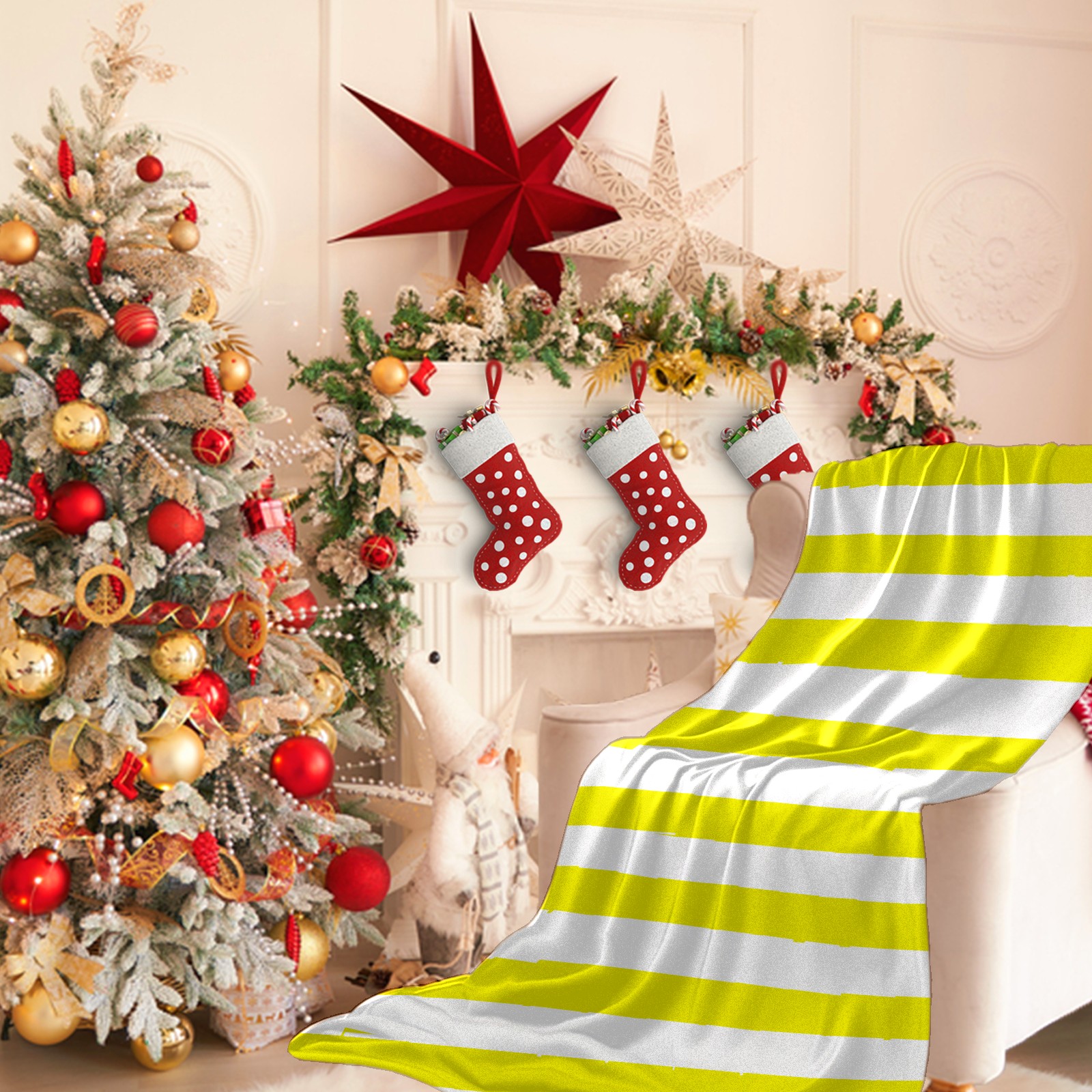 Flannel Blanket, Ultra-Soft Comfortable Home Decor Rug, The Perfect Comfort Gift for Both Men Women, Suitable for Beds, Sofas, Loungewear, and Travel 30x39in(Bright Yellow And White Stripe Pattern)