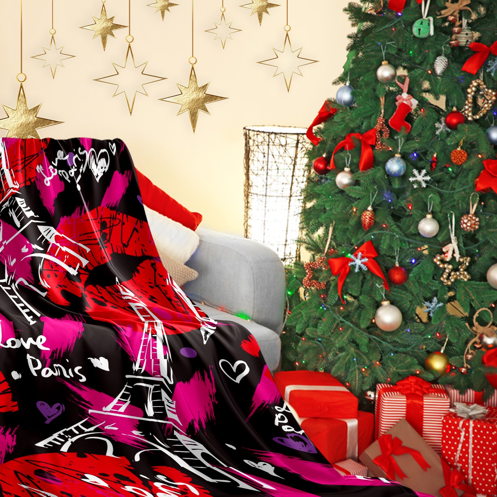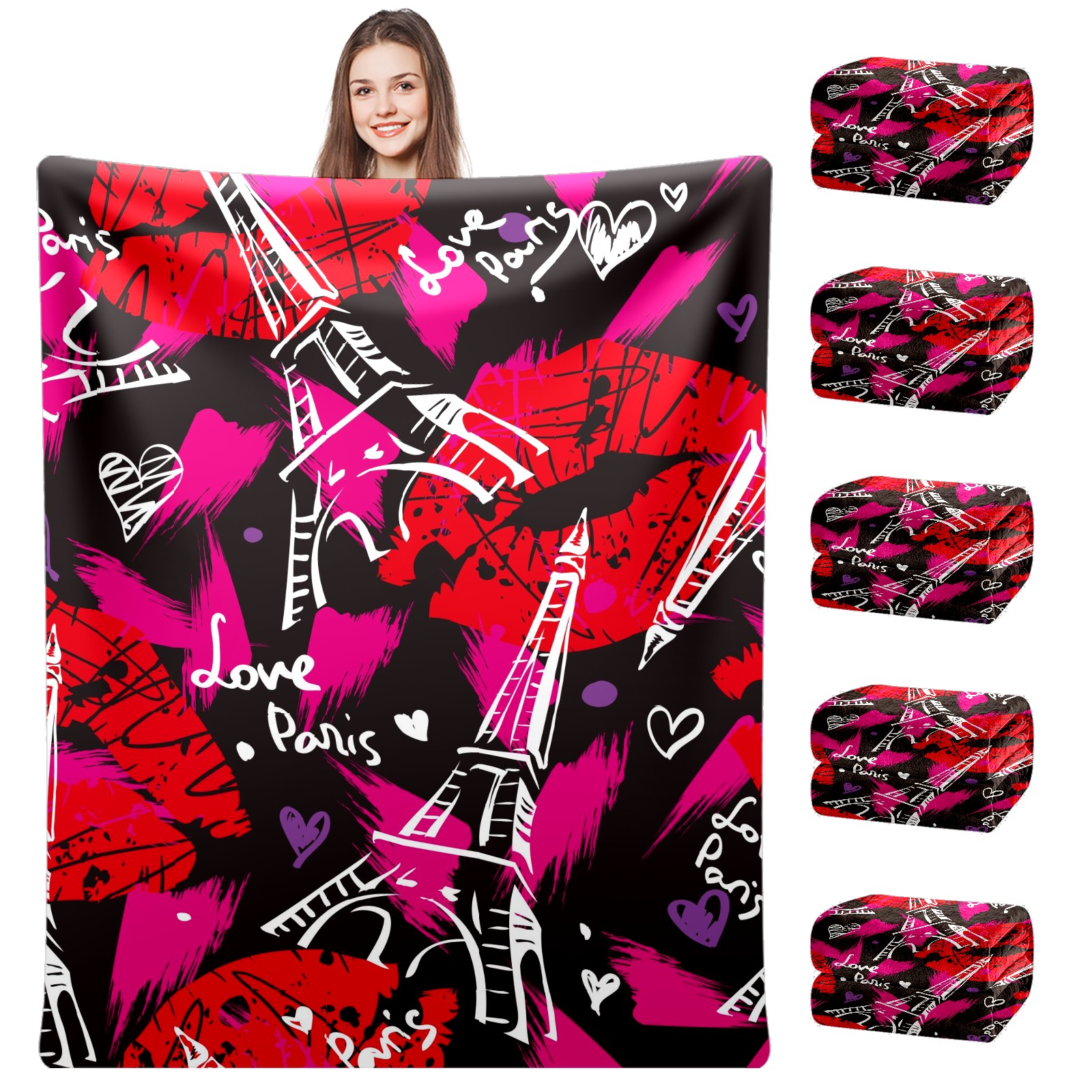 Flannel Blanket, Ultra-Soft Comfortable Home Decor Rug, The Perfect Comfort Gift for Both Men Women, Suitable for Beds, Sofas, Loungewear, and Travel 30x39in(Eiffel Tower Love Paris)