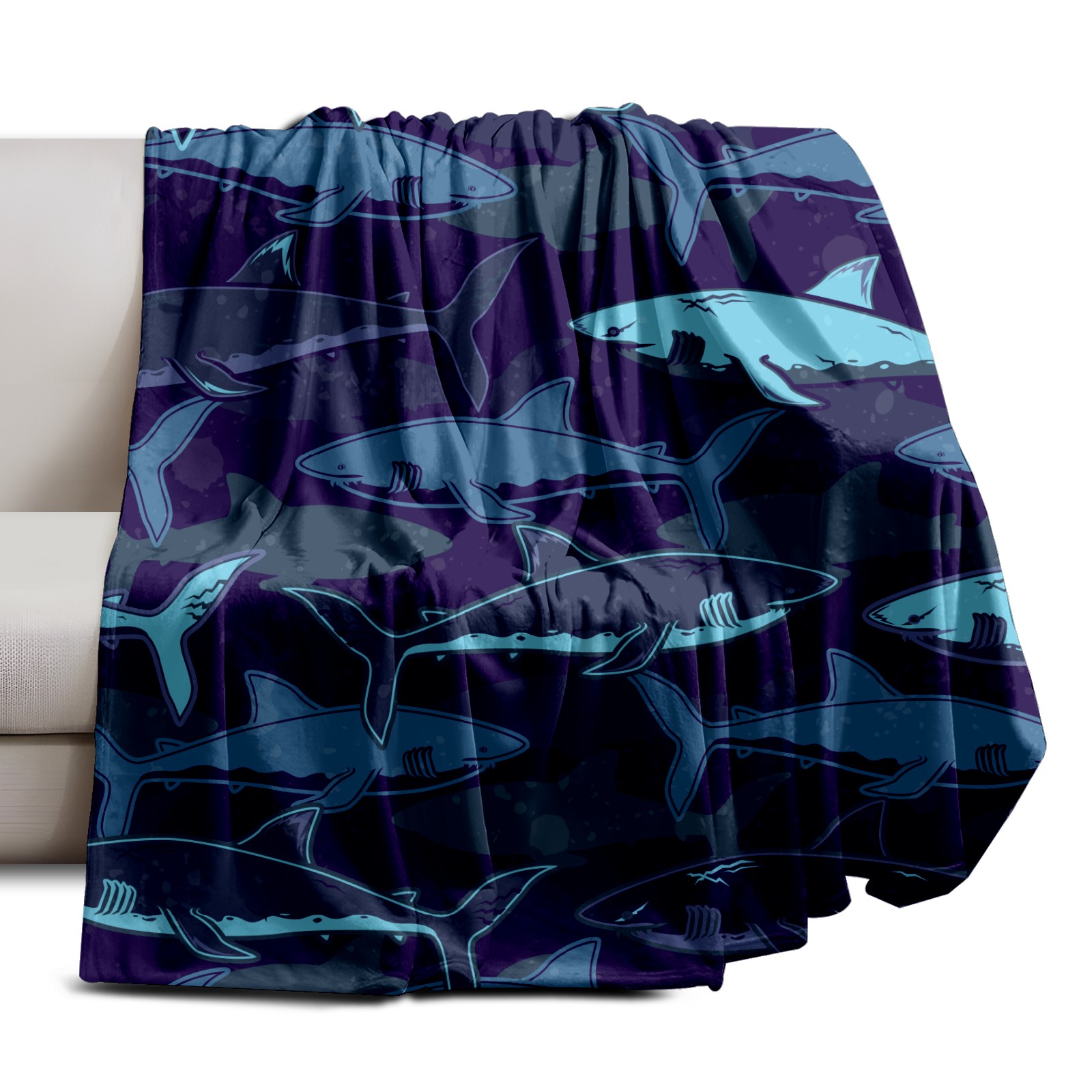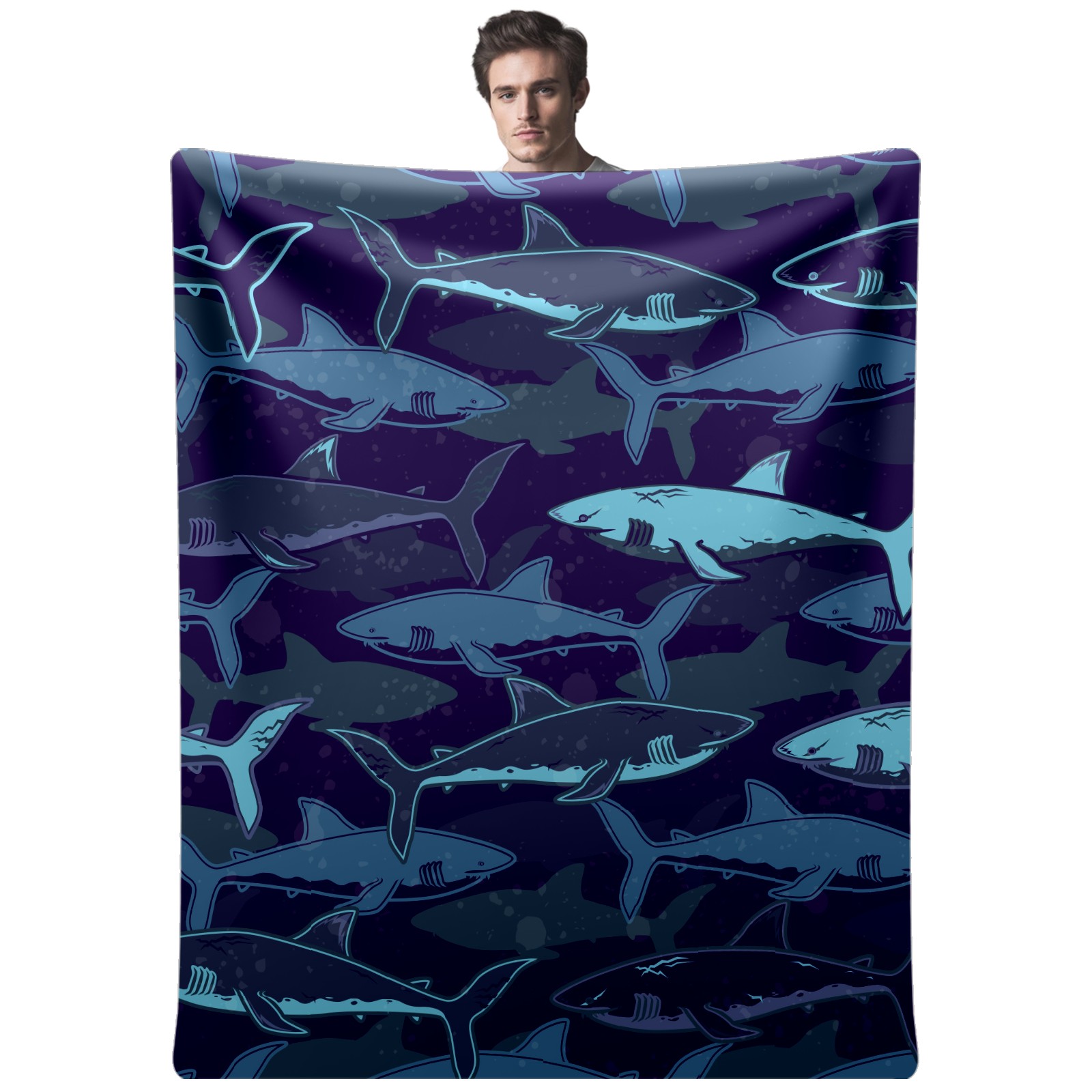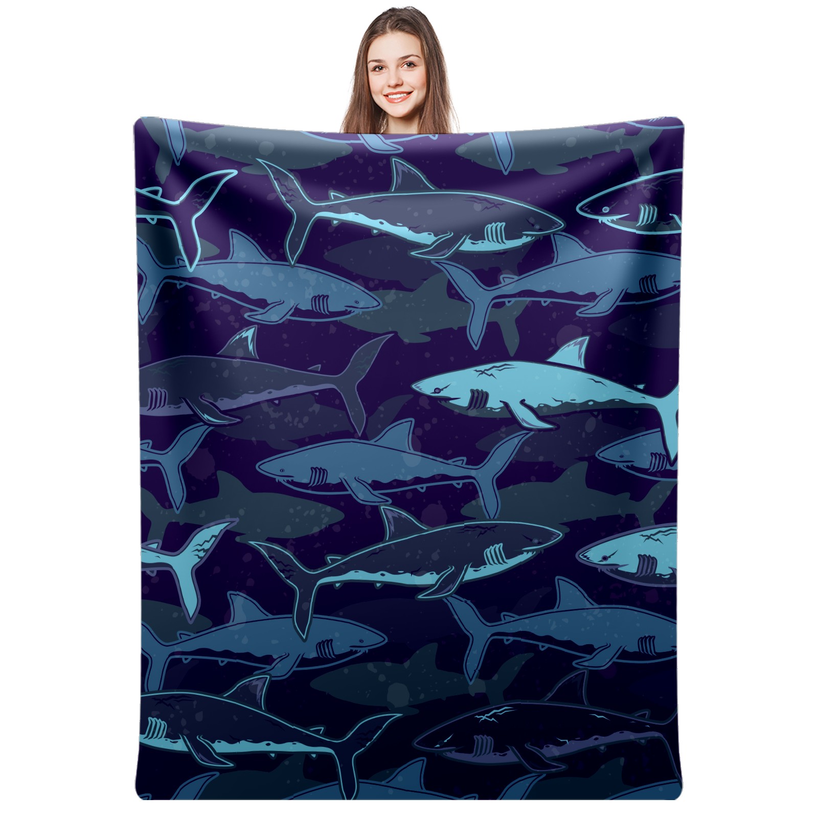 Flannel Blanket, Ultra-Soft Comfortable Home Decor Rug, The Perfect Comfort Gift for Both Men Women, Suitable for Beds, Sofas, Loungewear, and Travel 30x39in(Deep Sea Shark Navy Blue)