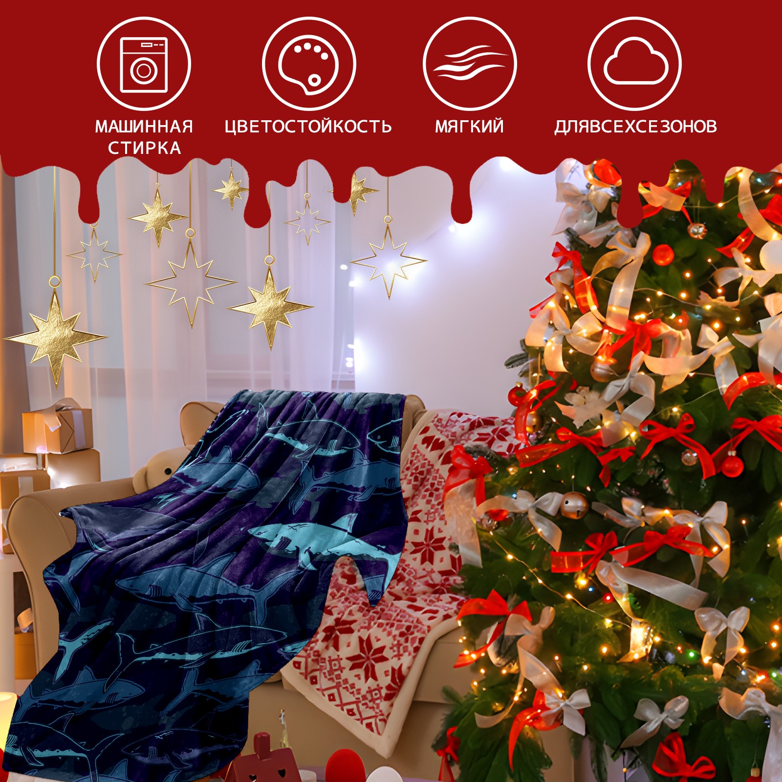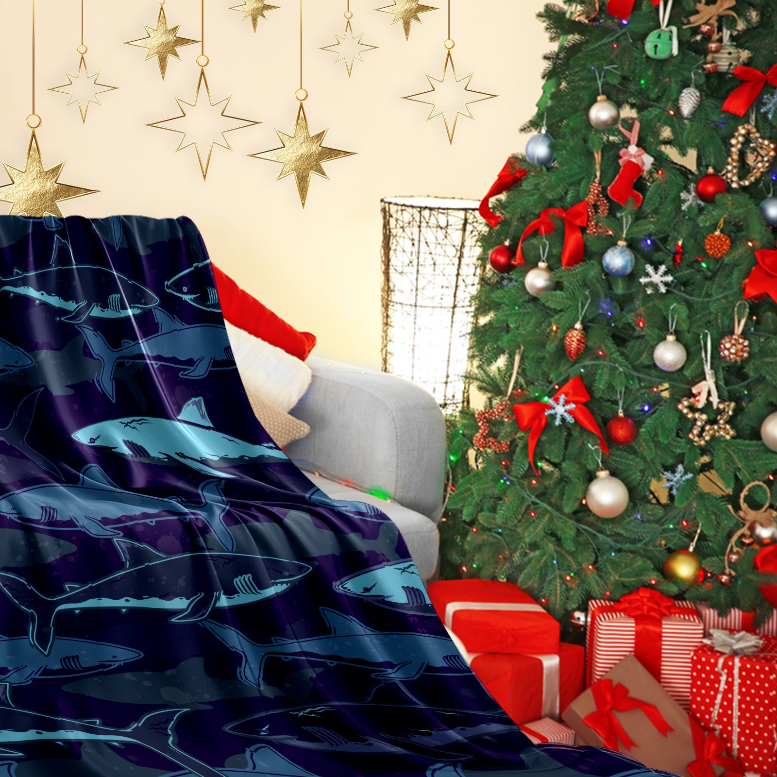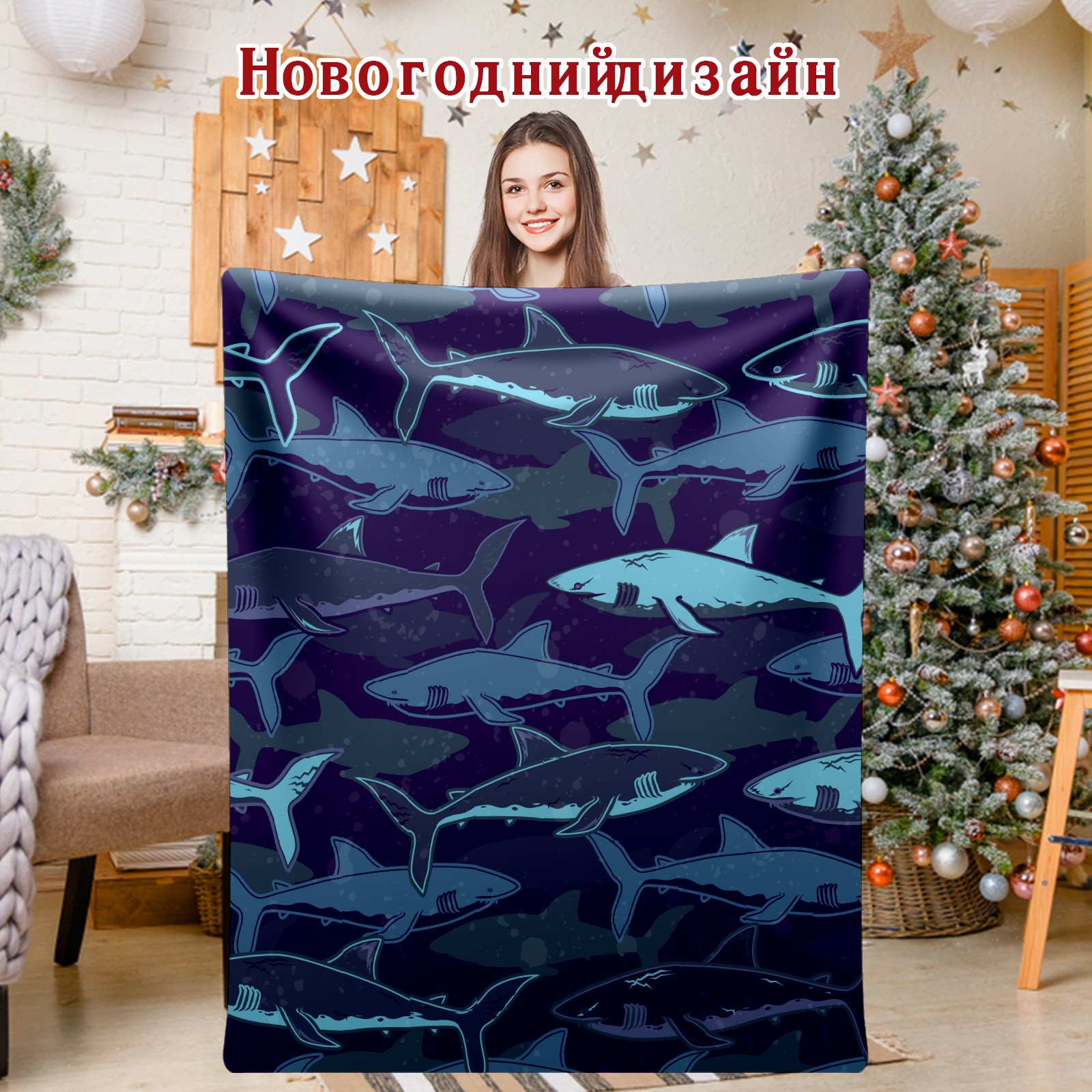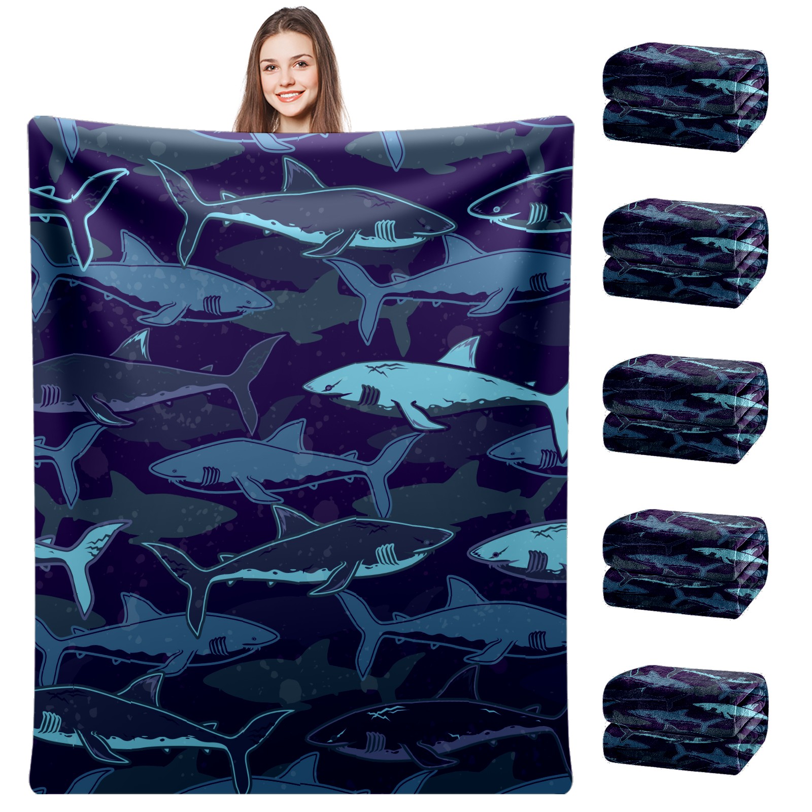 Flannel Blanket, Ultra-Soft Comfortable Home Decor Rug, The Perfect Comfort Gift for Both Men Women, Suitable for Beds, Sofas, Loungewear, and Travel 30x39in(Deep Sea Shark Navy Blue)