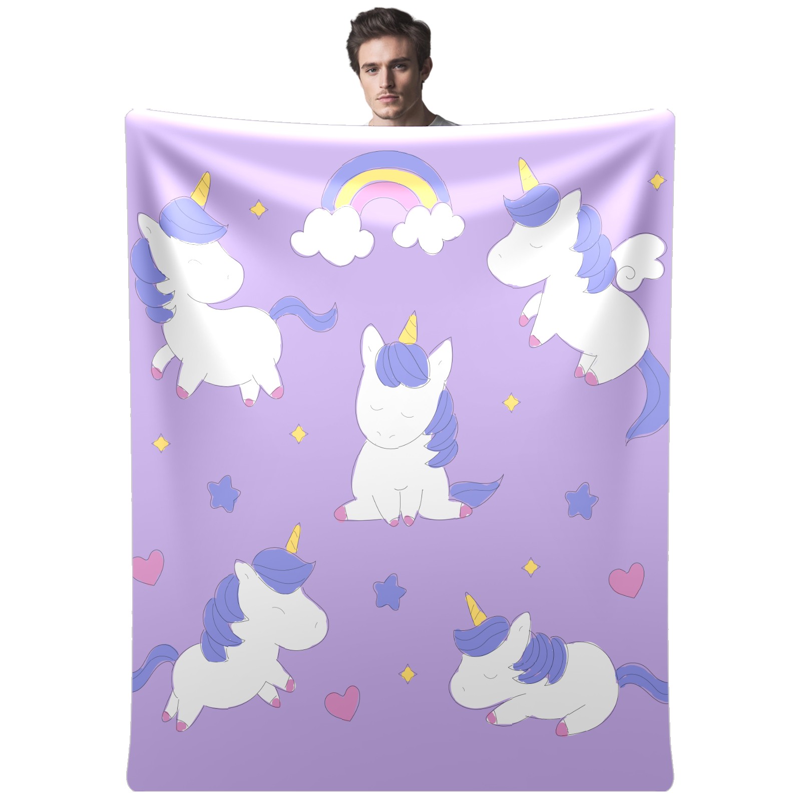 Flannel Blanket, Ultra-Soft Comfortable Home Decor Rug, The Perfect Comfort Gift for Both Men Women, Suitable for Beds, Sofas, Loungewear, and Travel 30x39in(Cute Unicorn Character Collection)