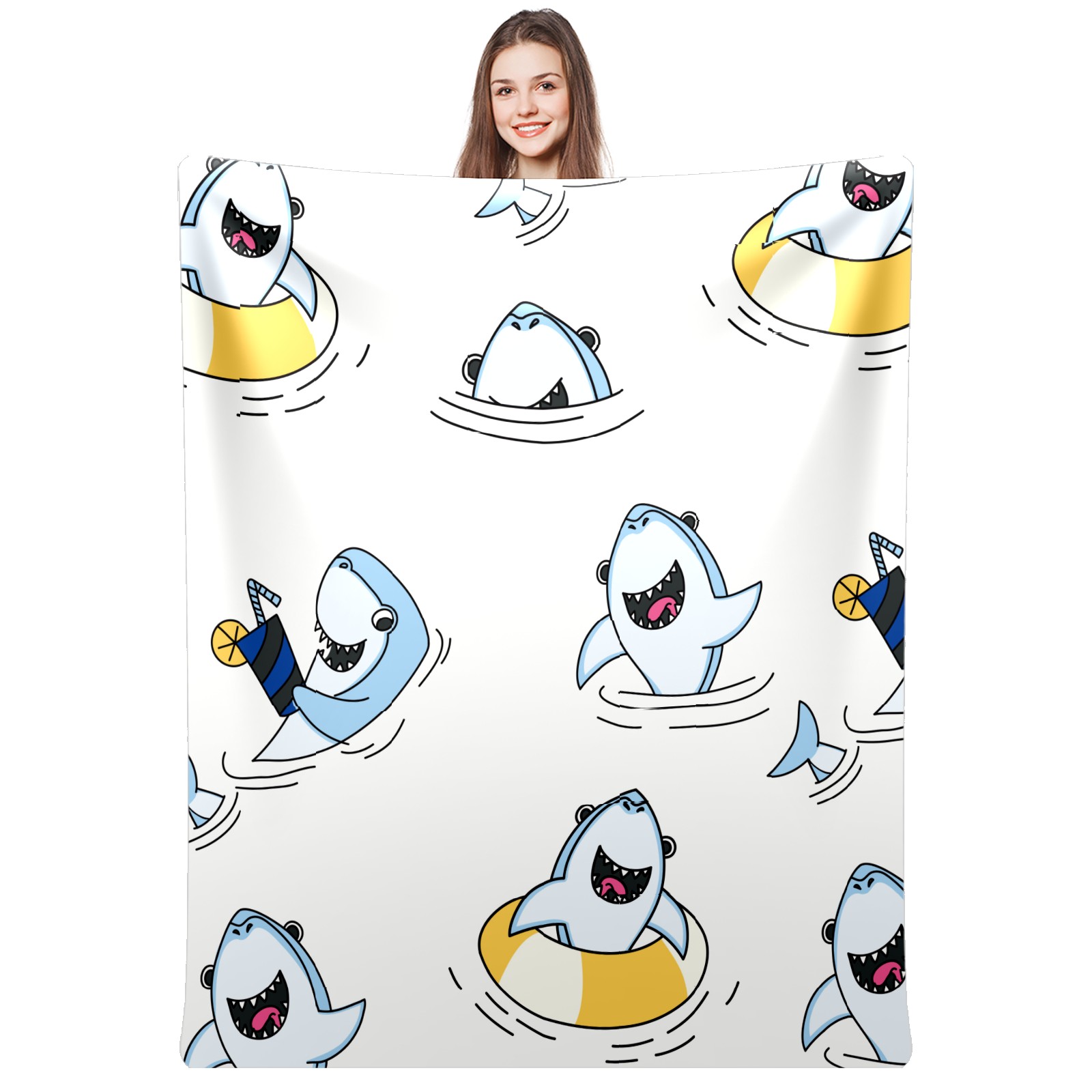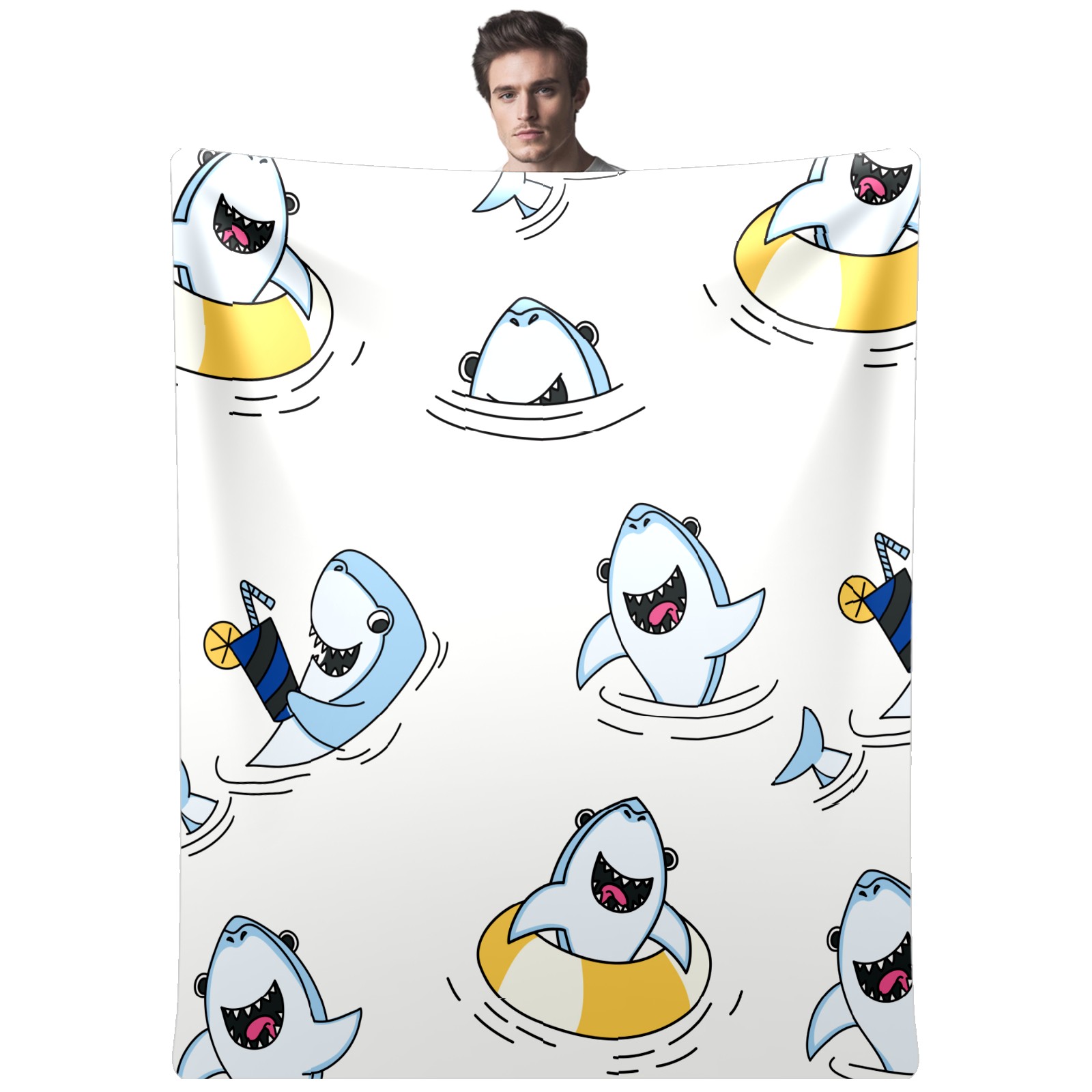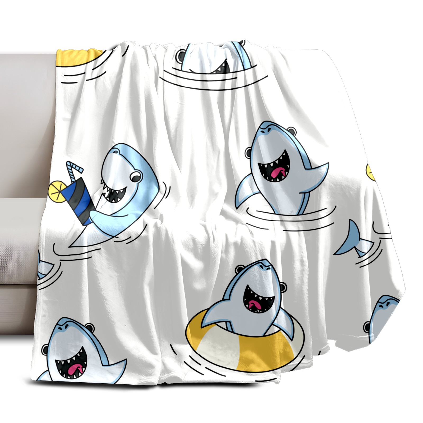 Flannel Blanket, Ultra-Soft Comfortable Home Decor Rug, The Perfect Comfort Gift for Both Men Women, Suitable for Beds, Sofas, Loungewear, and Travel 30x39in(Cute Swim Ring Shark)