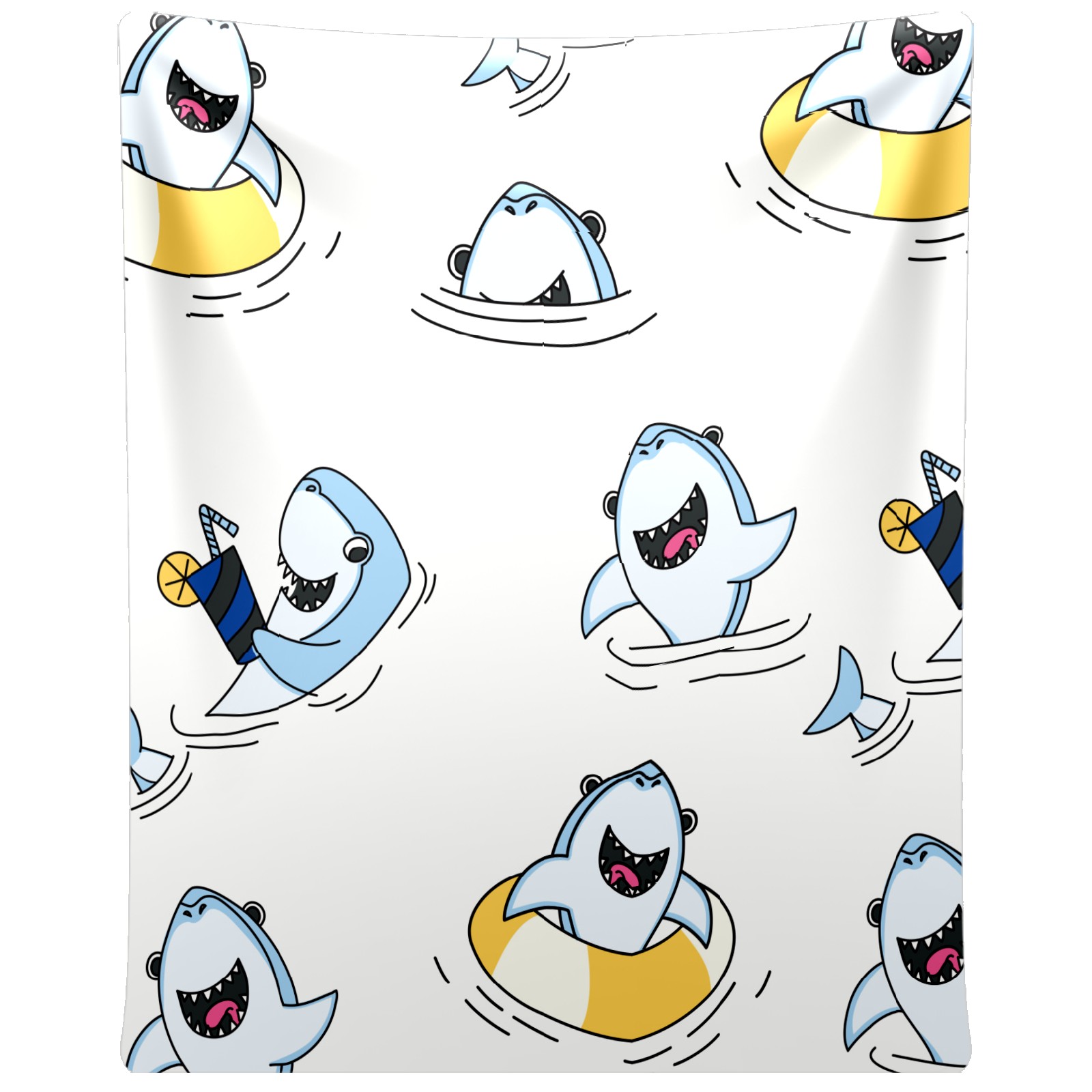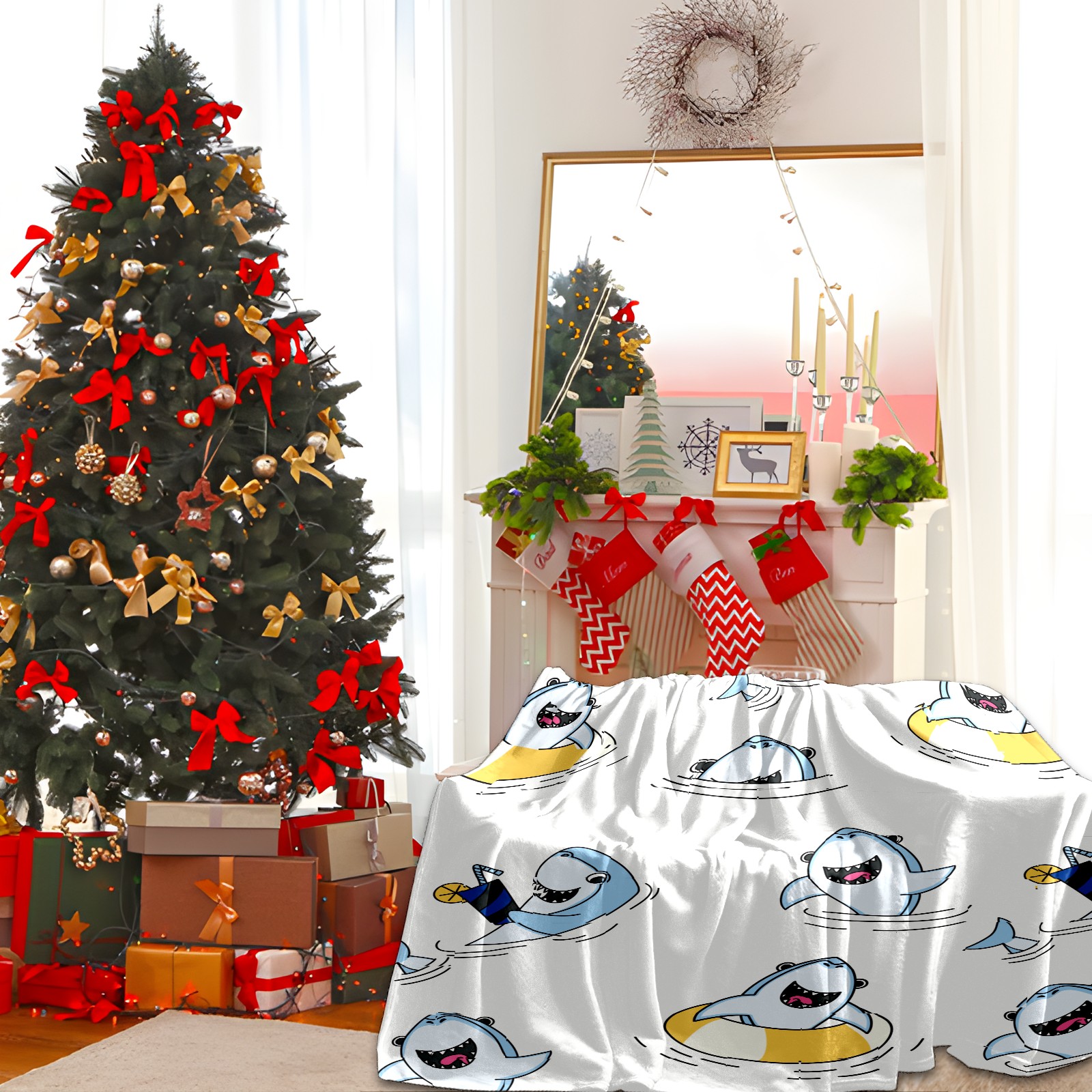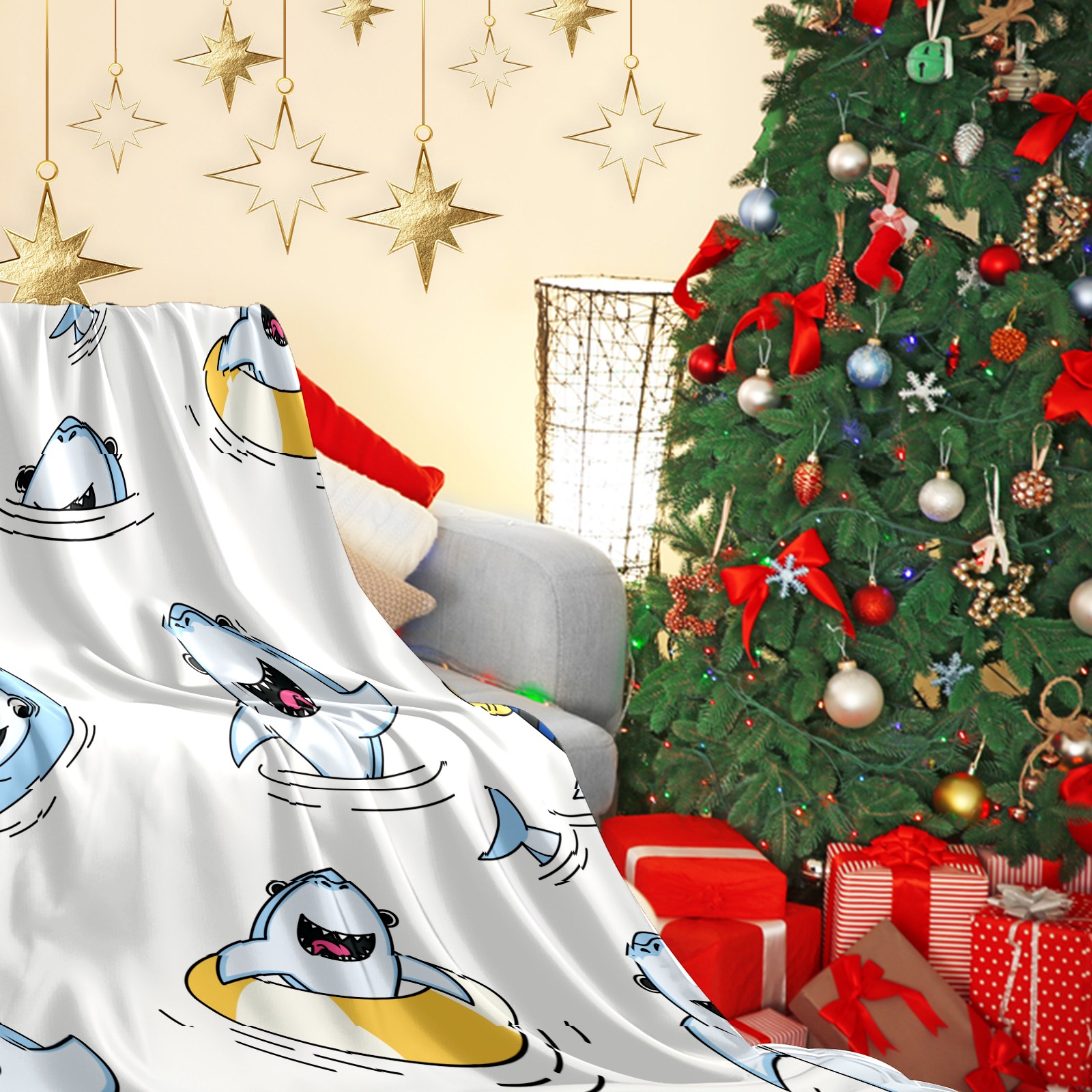 Flannel Blanket, Ultra-Soft Comfortable Home Decor Rug, The Perfect Comfort Gift for Both Men Women, Suitable for Beds, Sofas, Loungewear, and Travel 30x39in(Cute Swim Ring Shark)