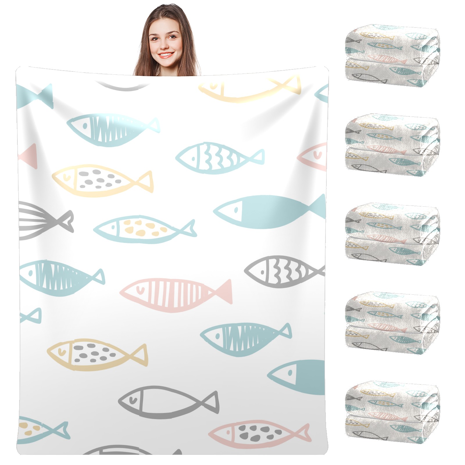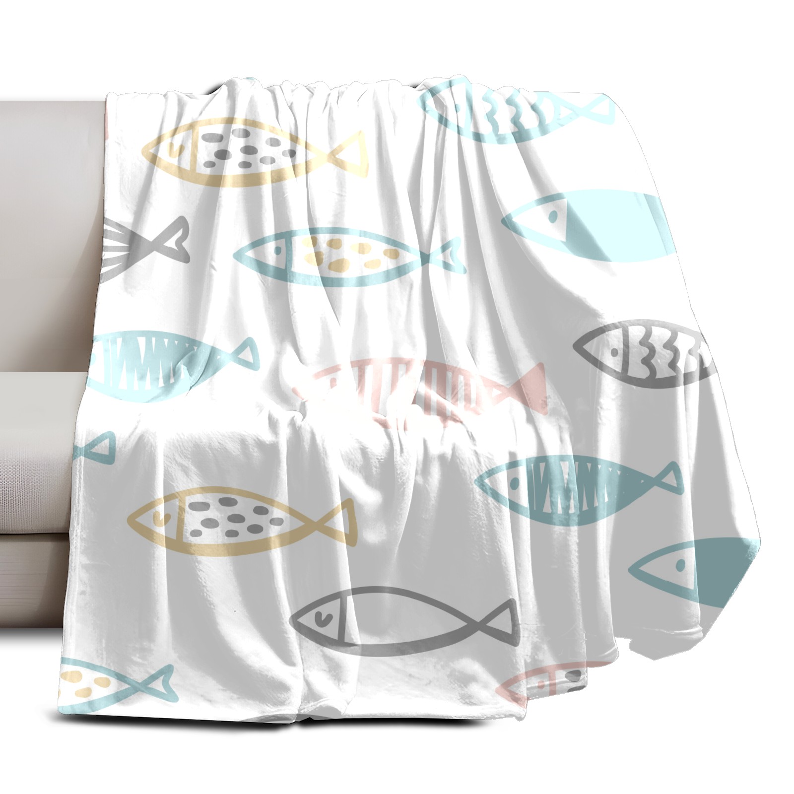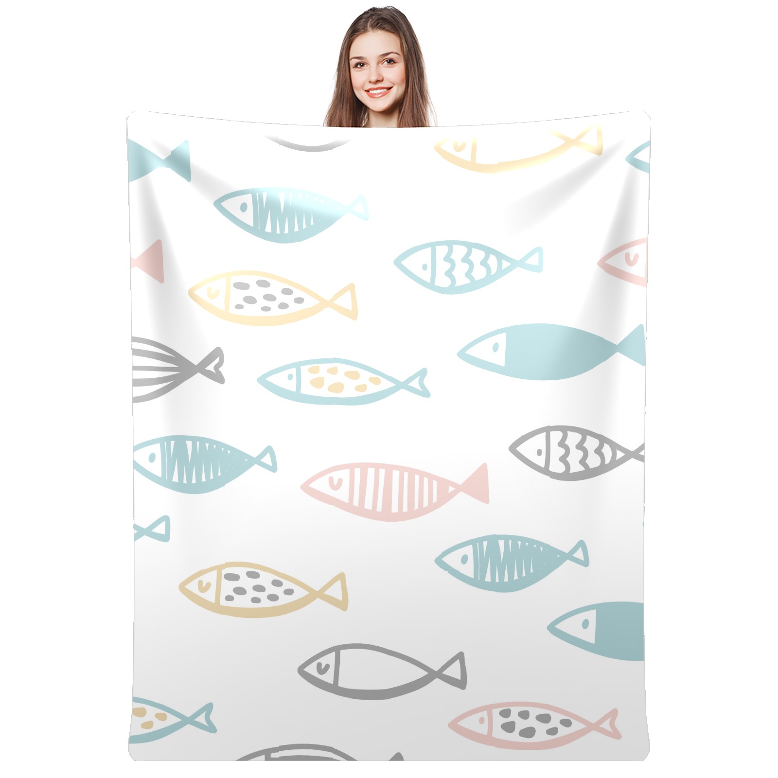 Flannel Blanket, Ultra-Soft Comfortable Home Decor Rug, The Perfect Comfort Gift for Both Men Women, Suitable for Beds, Sofas, Loungewear, and Travel 30x39in(Cute Stick Figure Fish)