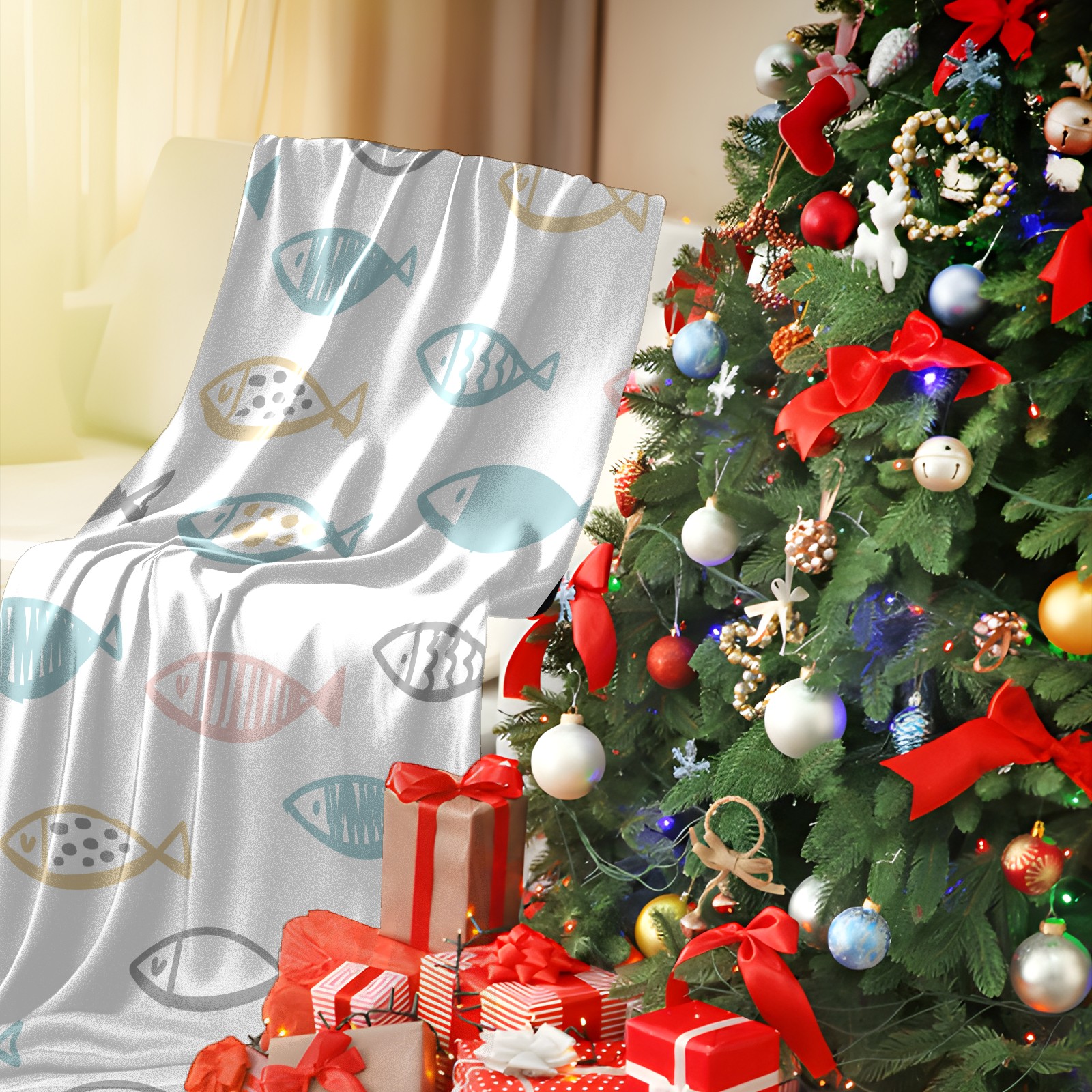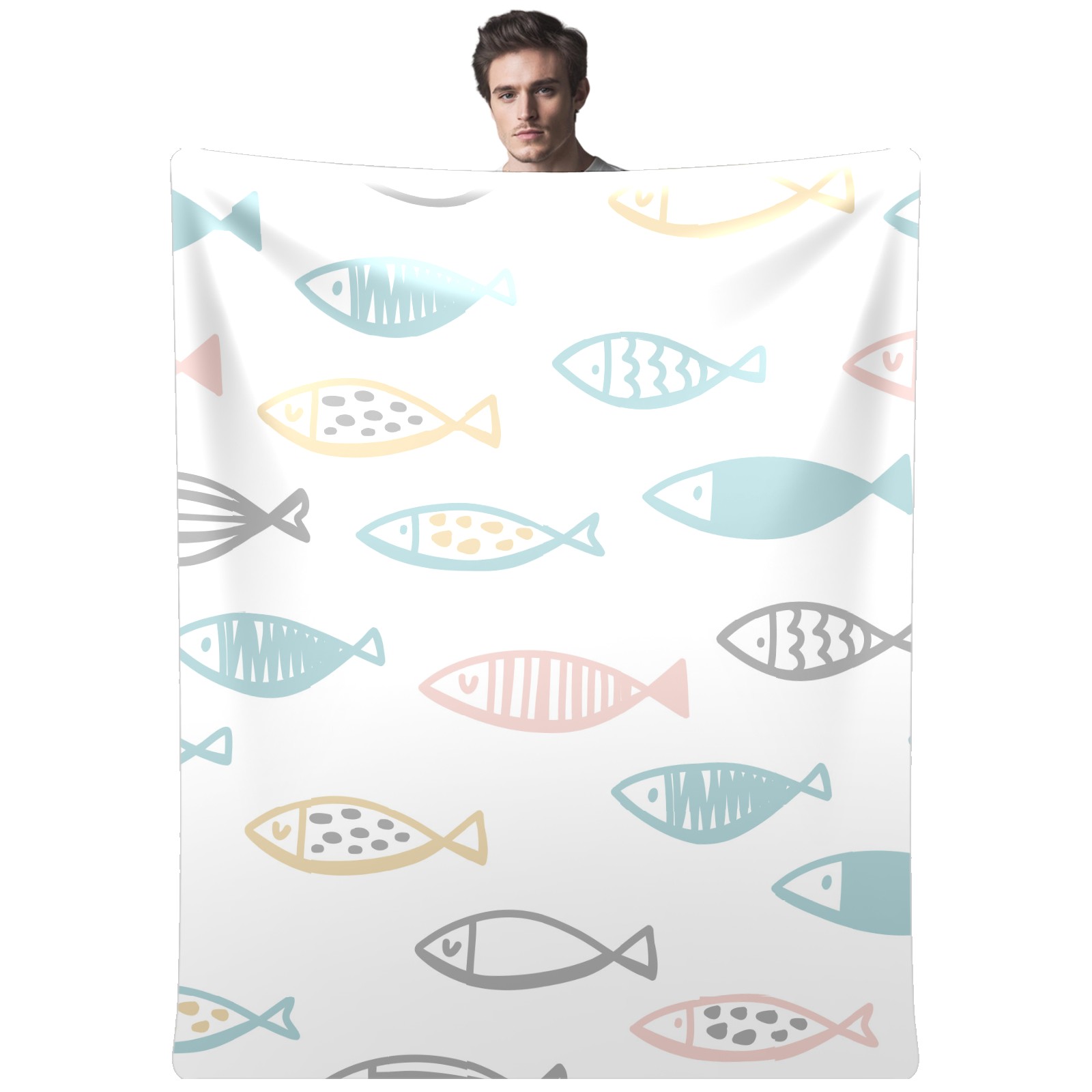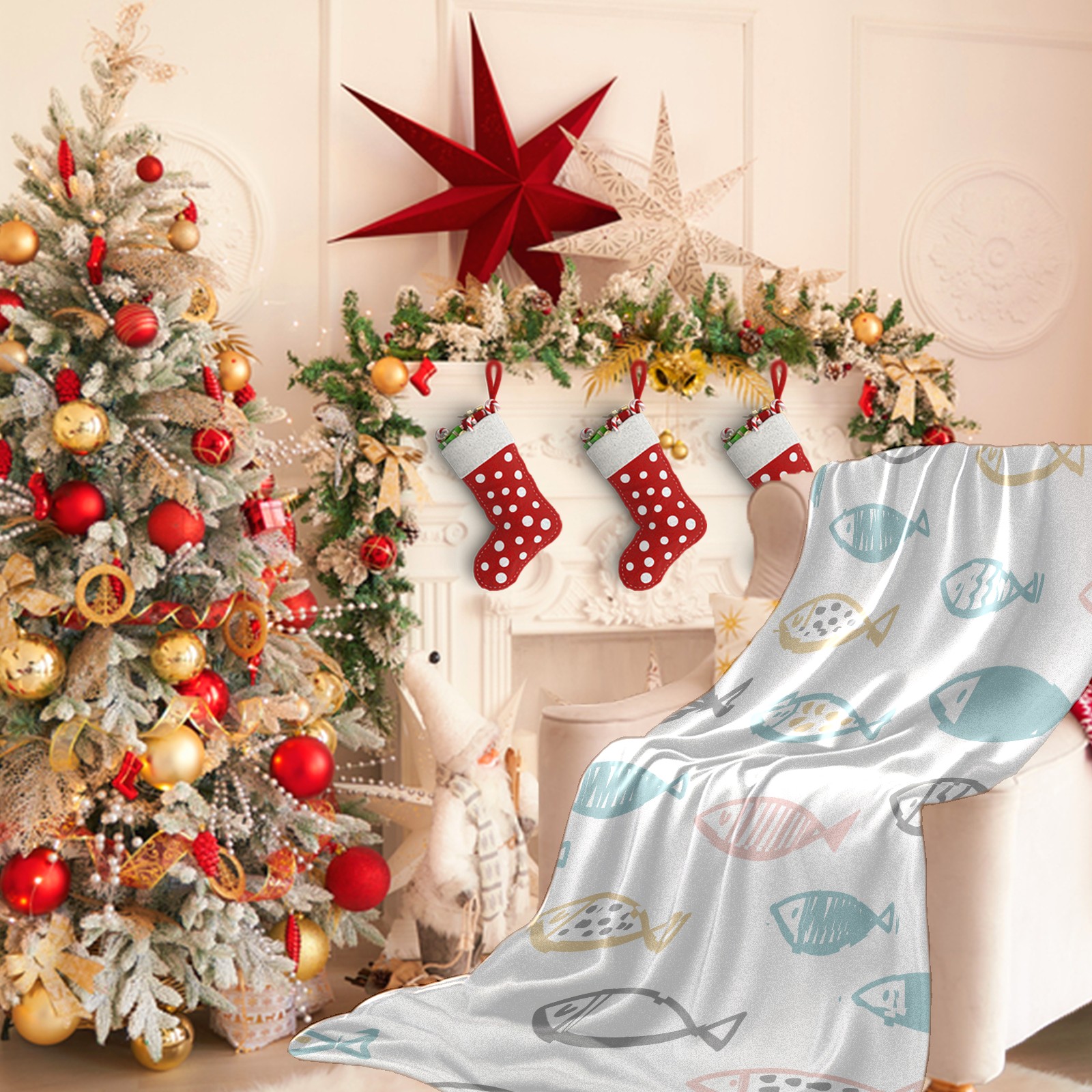 Flannel Blanket, Ultra-Soft Comfortable Home Decor Rug, The Perfect Comfort Gift for Both Men Women, Suitable for Beds, Sofas, Loungewear, and Travel 30x39in(Cute Stick Figure Fish)