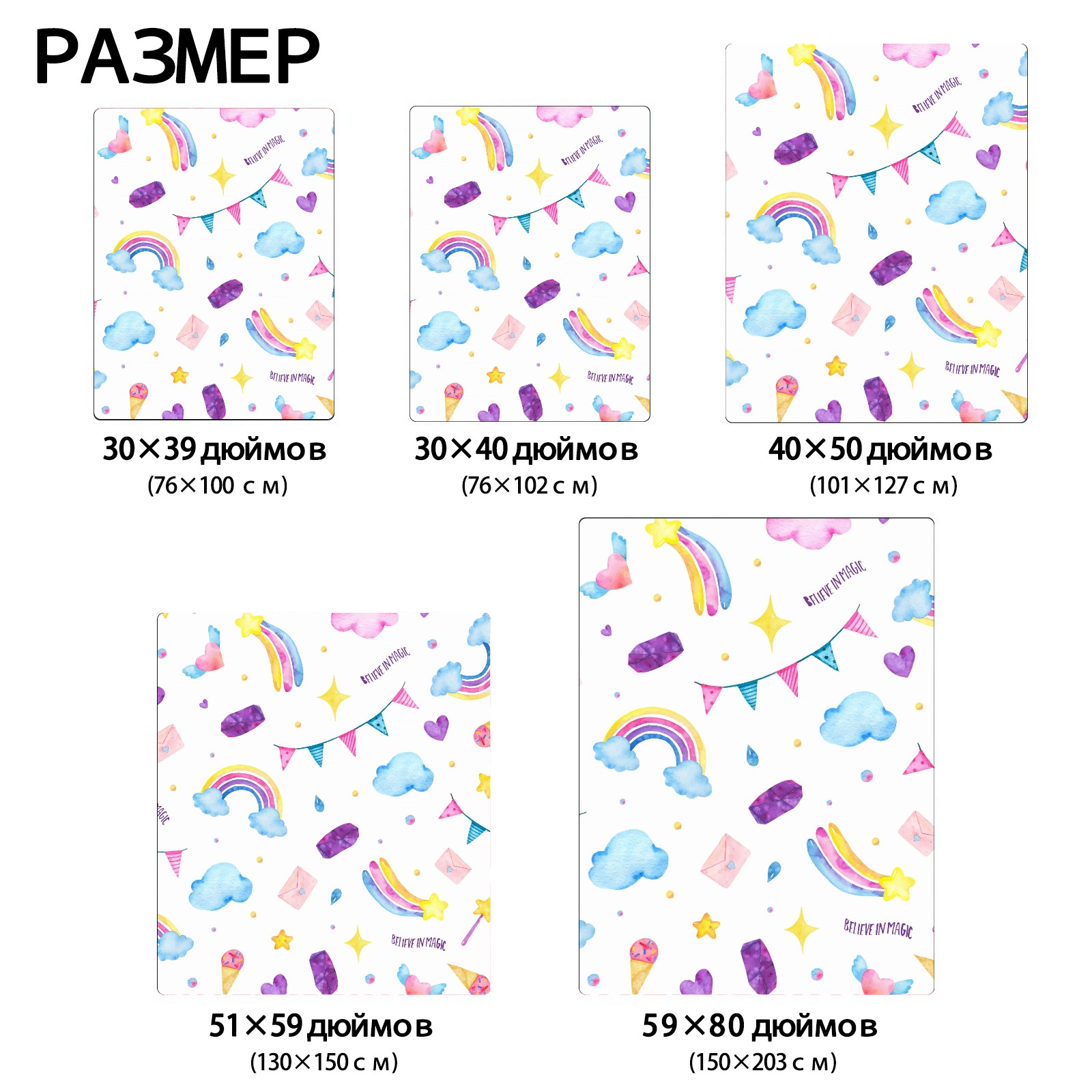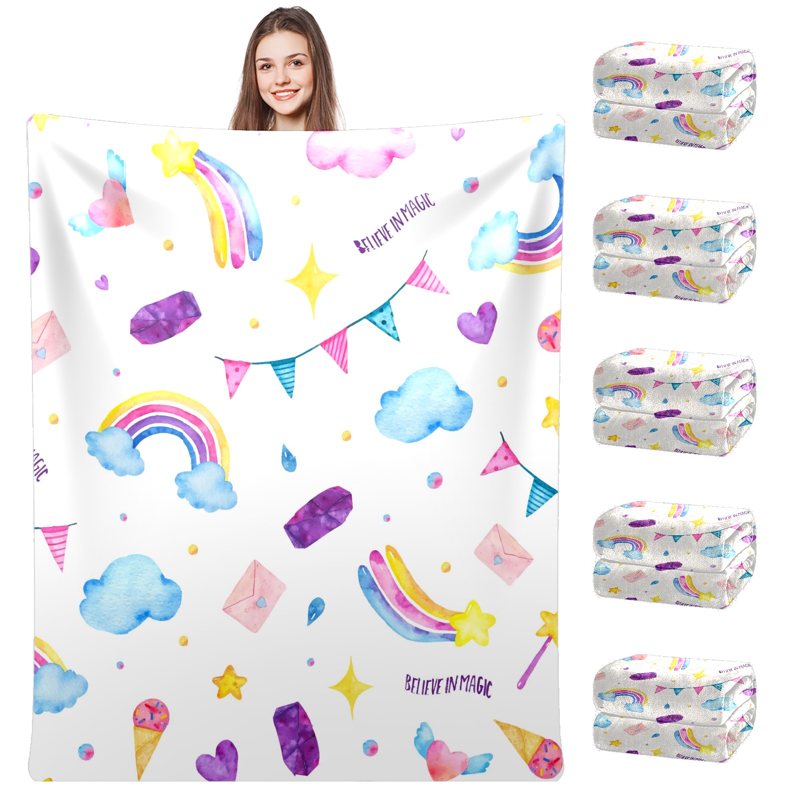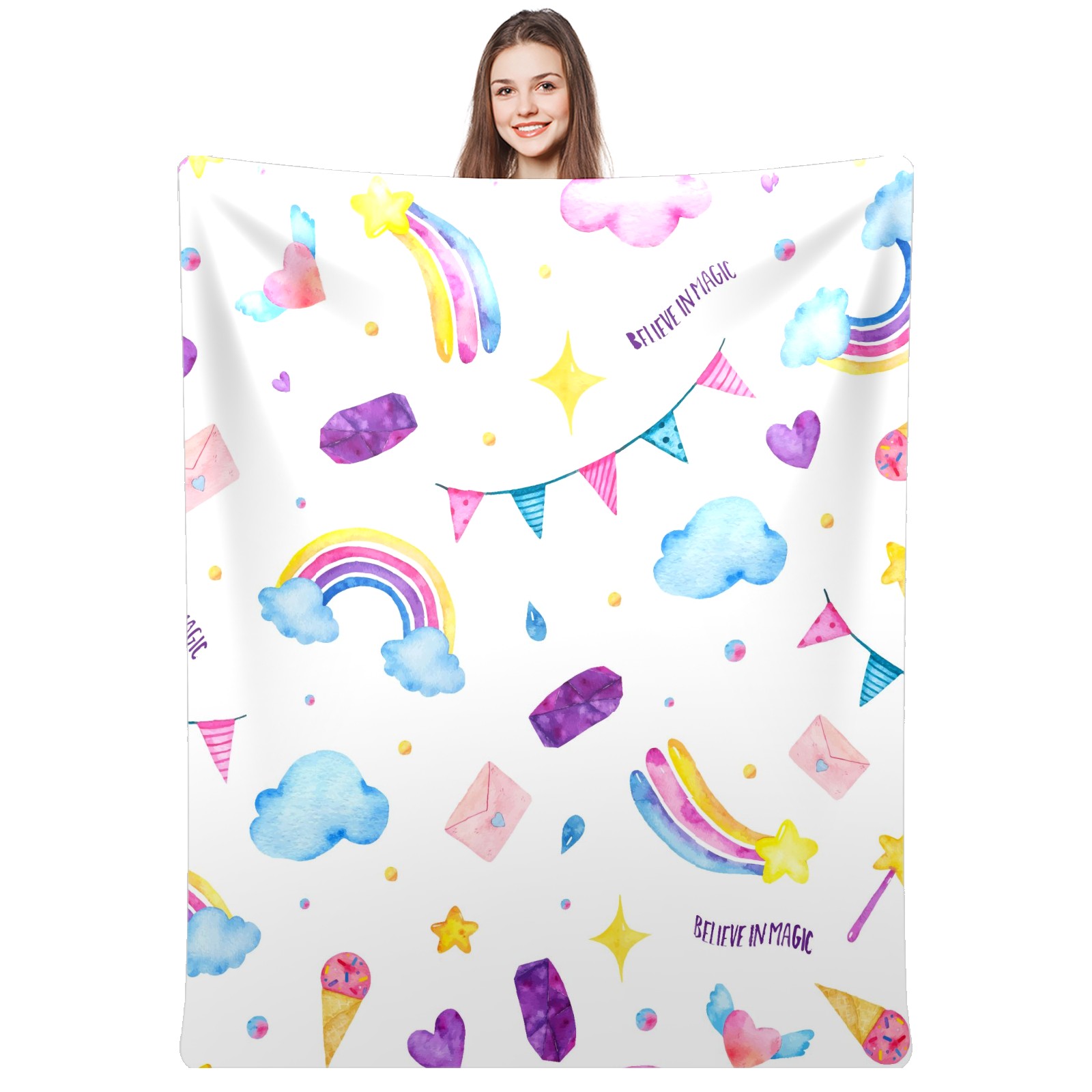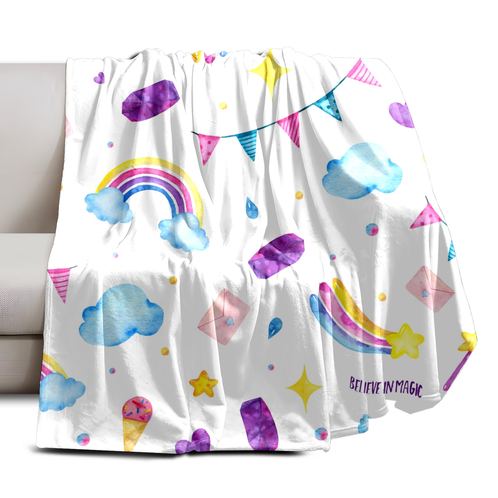 Flannel Blanket, Ultra-Soft Comfortable Home Decor Rug, The Perfect Comfort Gift for Both Men Women, Suitable for Beds, Sofas, Loungewear, and Travel 30x39in(Cute Magic Unicorn Ice Cream Wand Clouds)