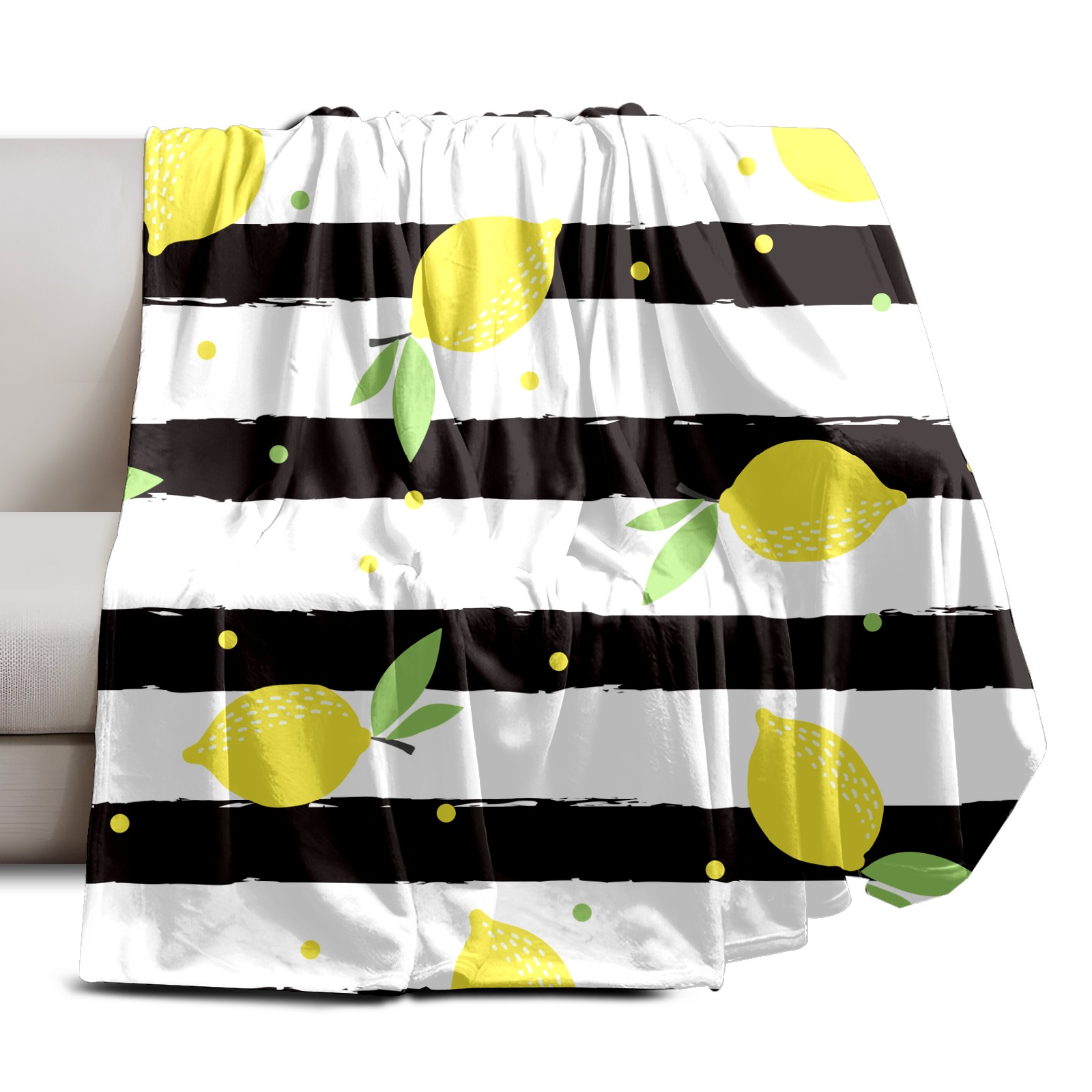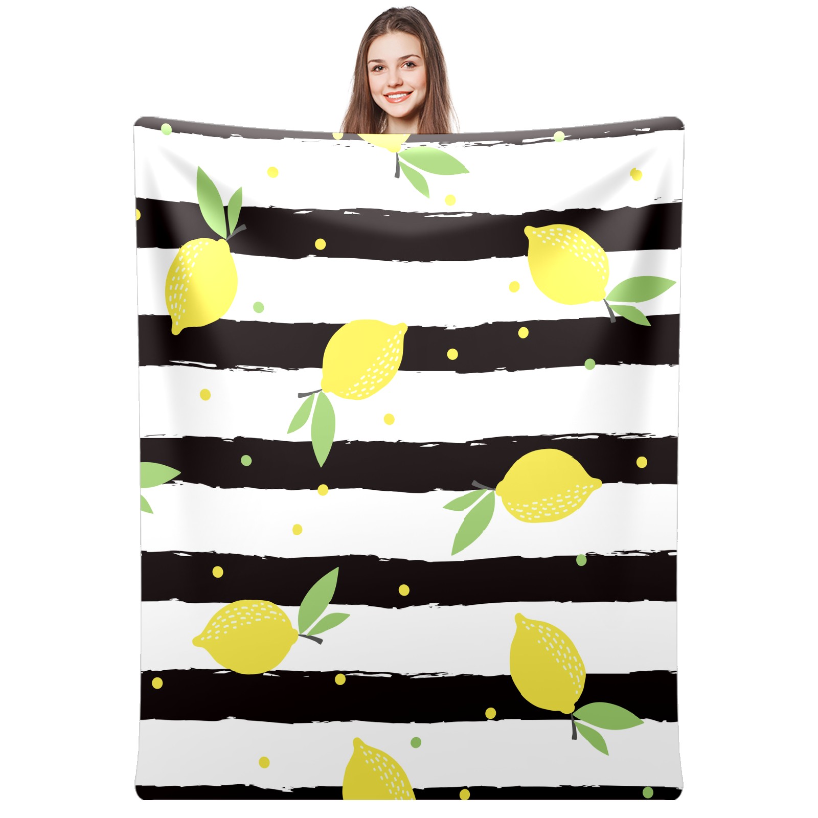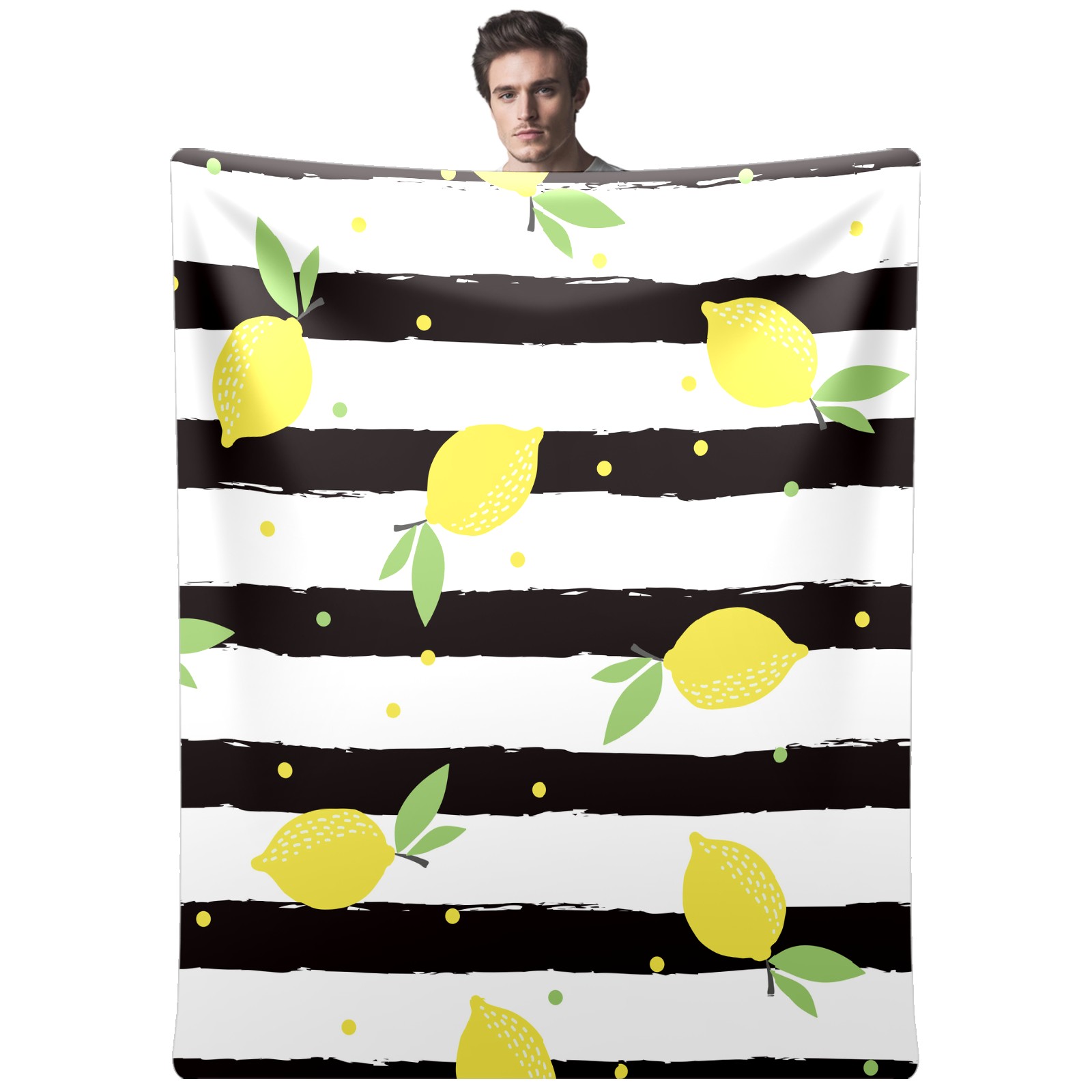 Flannel Blanket, Ultra-Soft Comfortable Home Decor Rug, The Perfect Comfort Gift for Both Men Women, Suitable for Beds, Sofas, Loungewear, and Travel 30x39in(Cute Lemon Stripes)