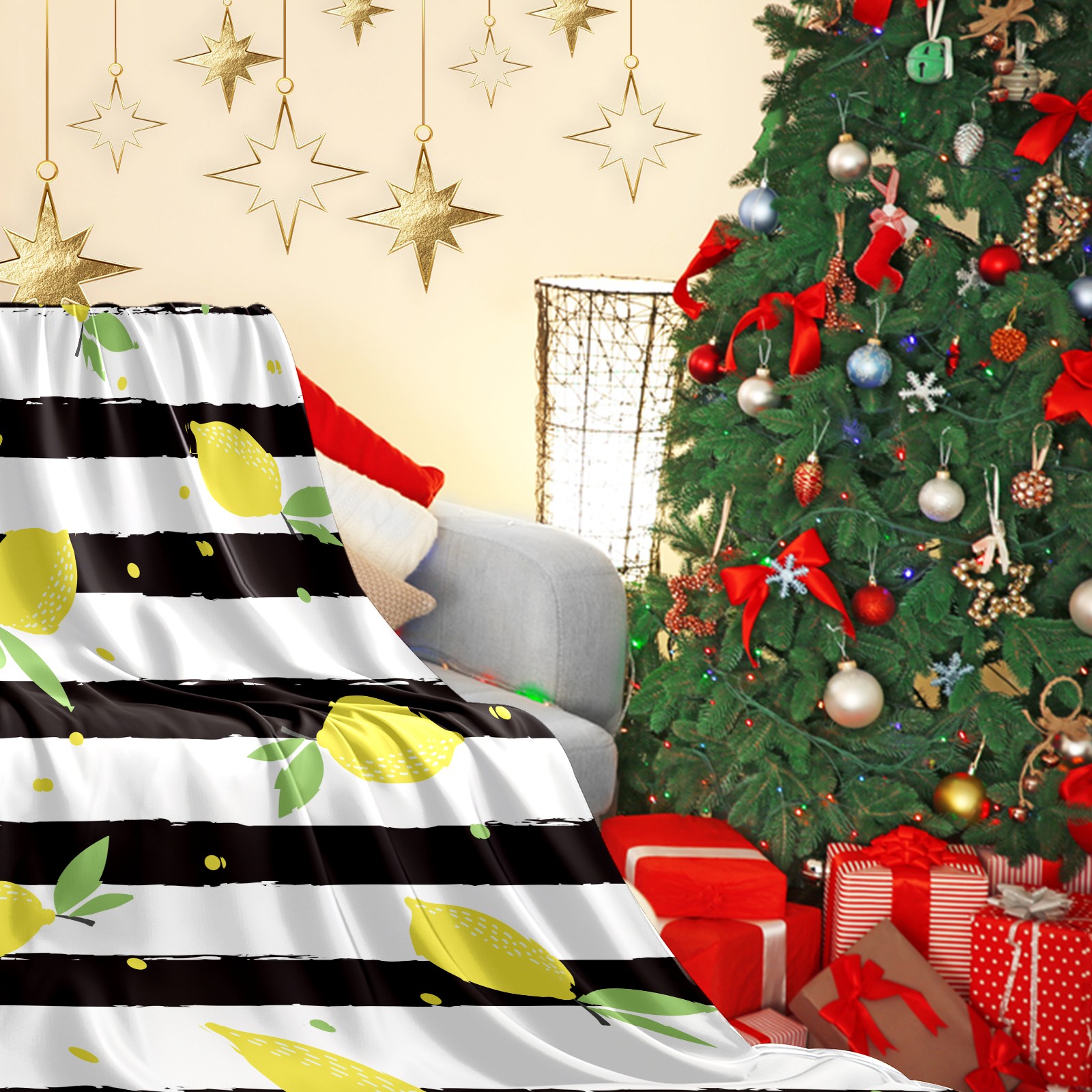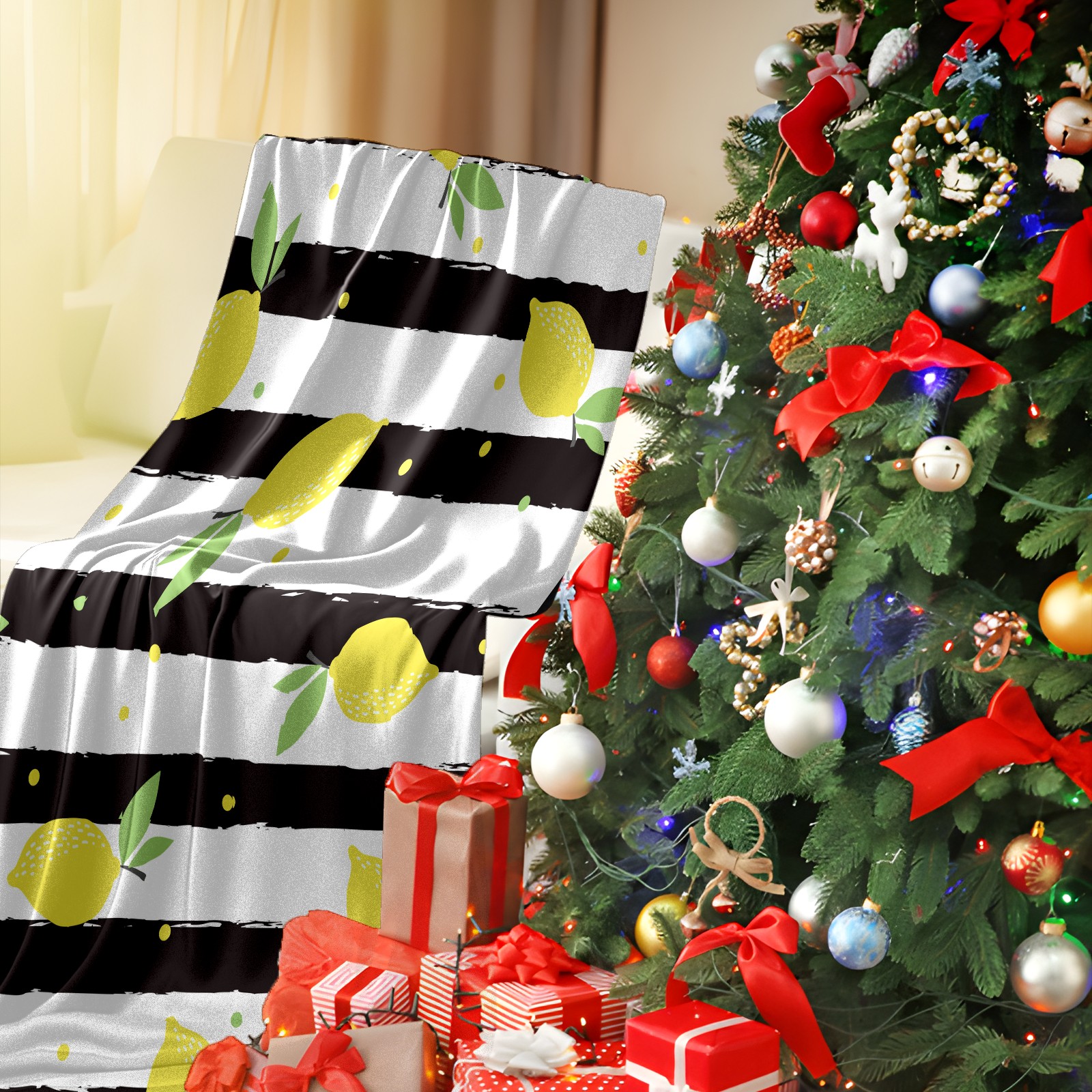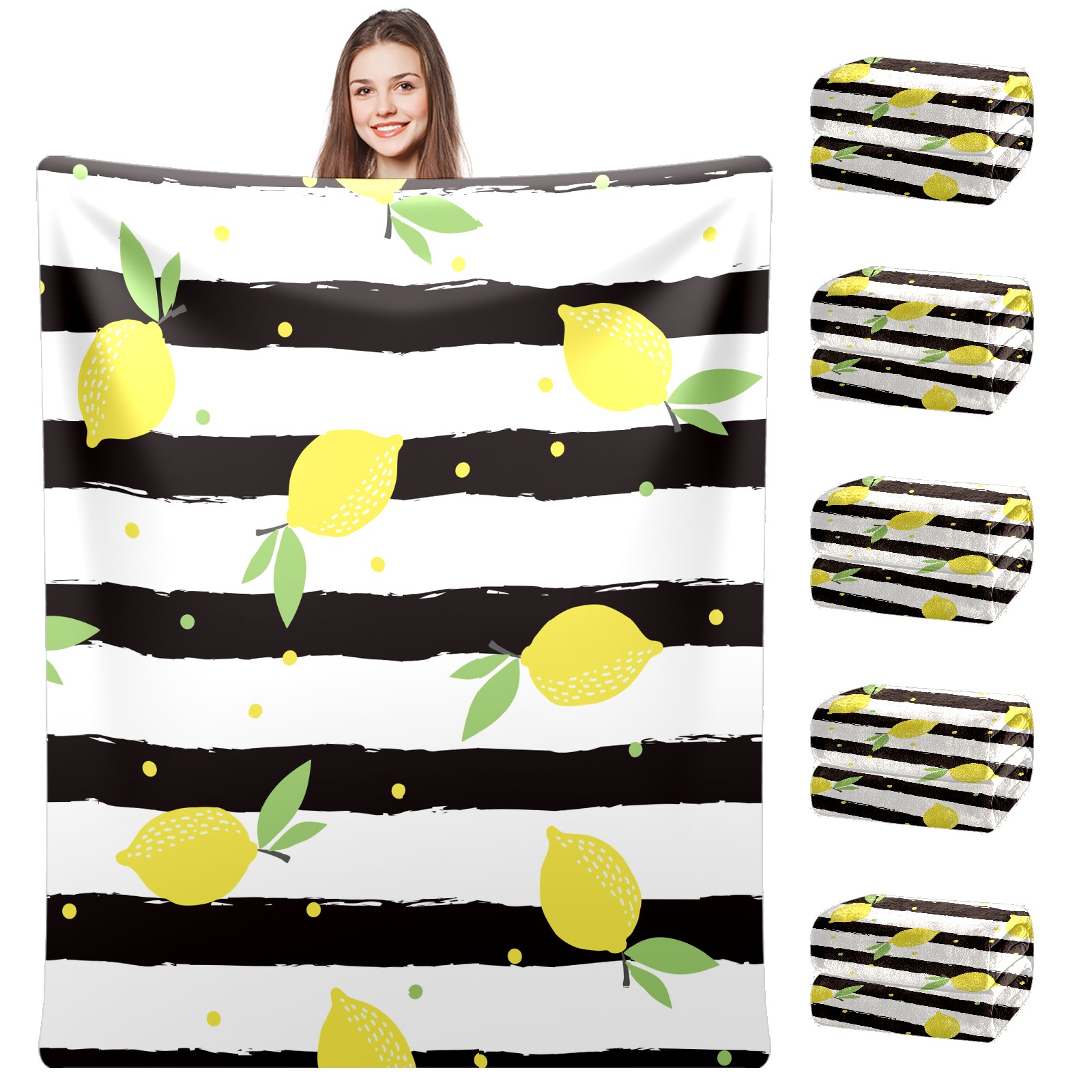Flannel Blanket, Ultra-Soft Comfortable Home Decor Rug, The Perfect Comfort Gift for Both Men Women, Suitable for Beds, Sofas, Loungewear, and Travel 30x39in(Cute Lemon Stripes)