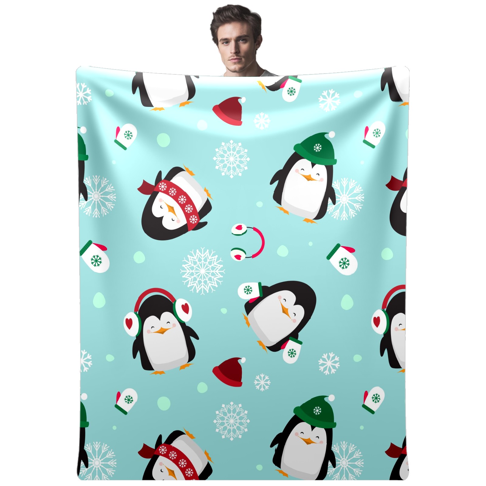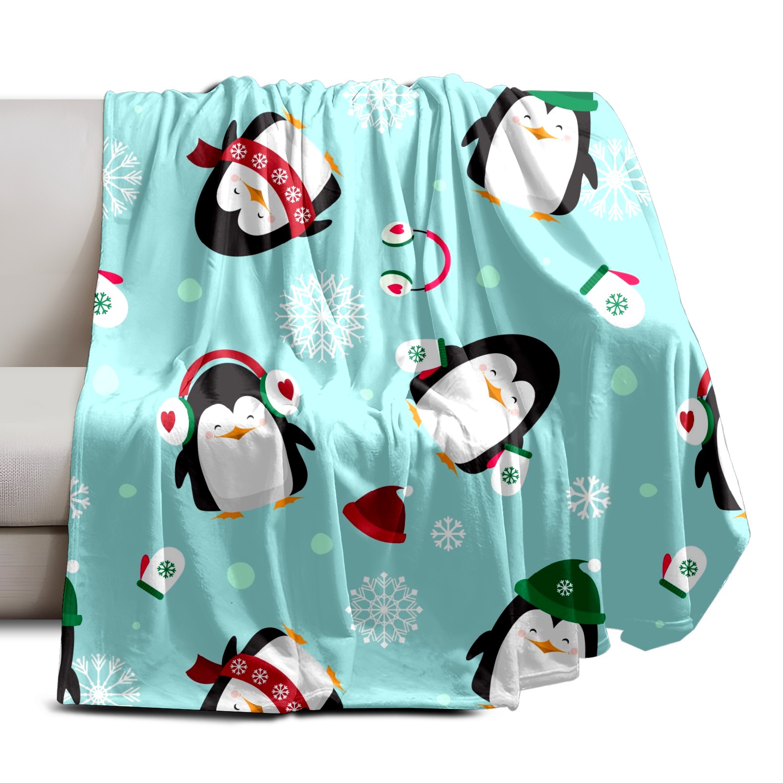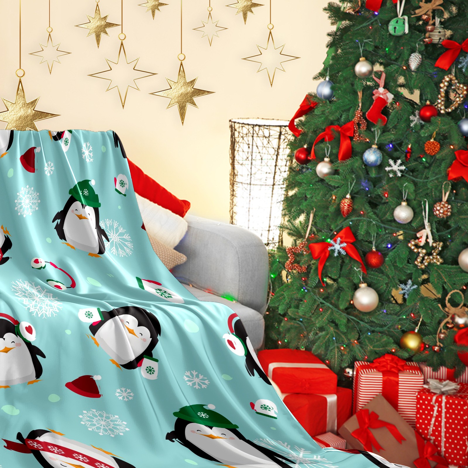Flannel Blanket, Ultra-Soft Comfortable Home Decor Rug, The Perfect Comfort Gift for Both Men Women, Suitable for Beds, Sofas, Loungewear, and Travel 30x39in(Christmas Penguins Pattern)