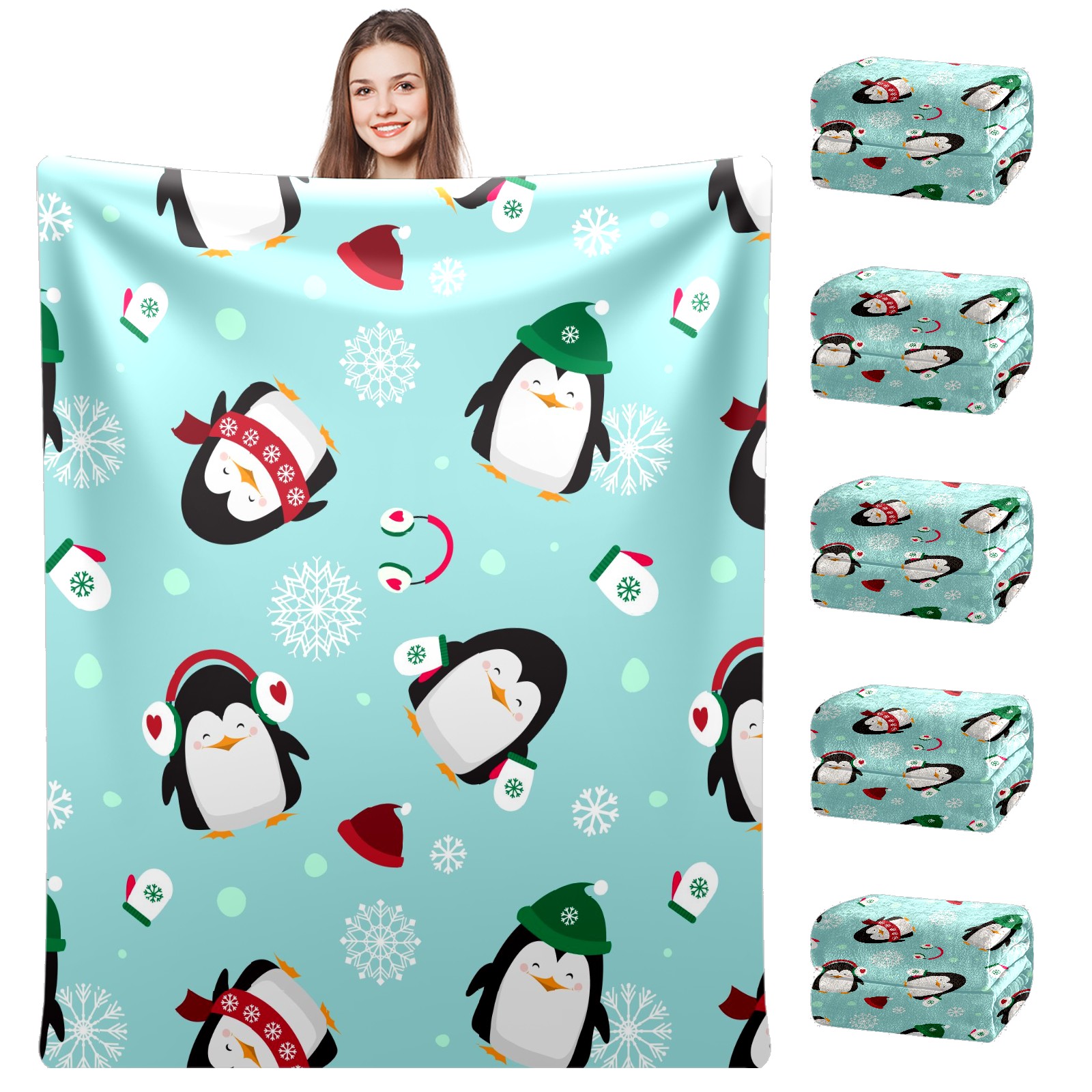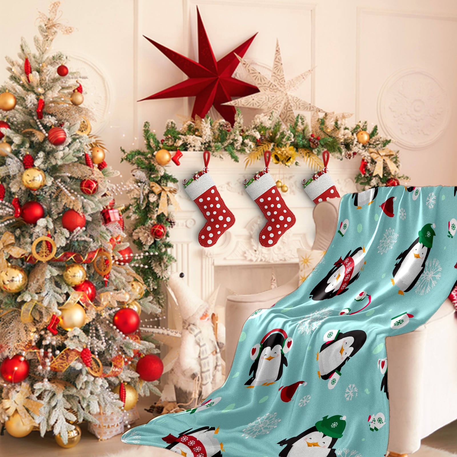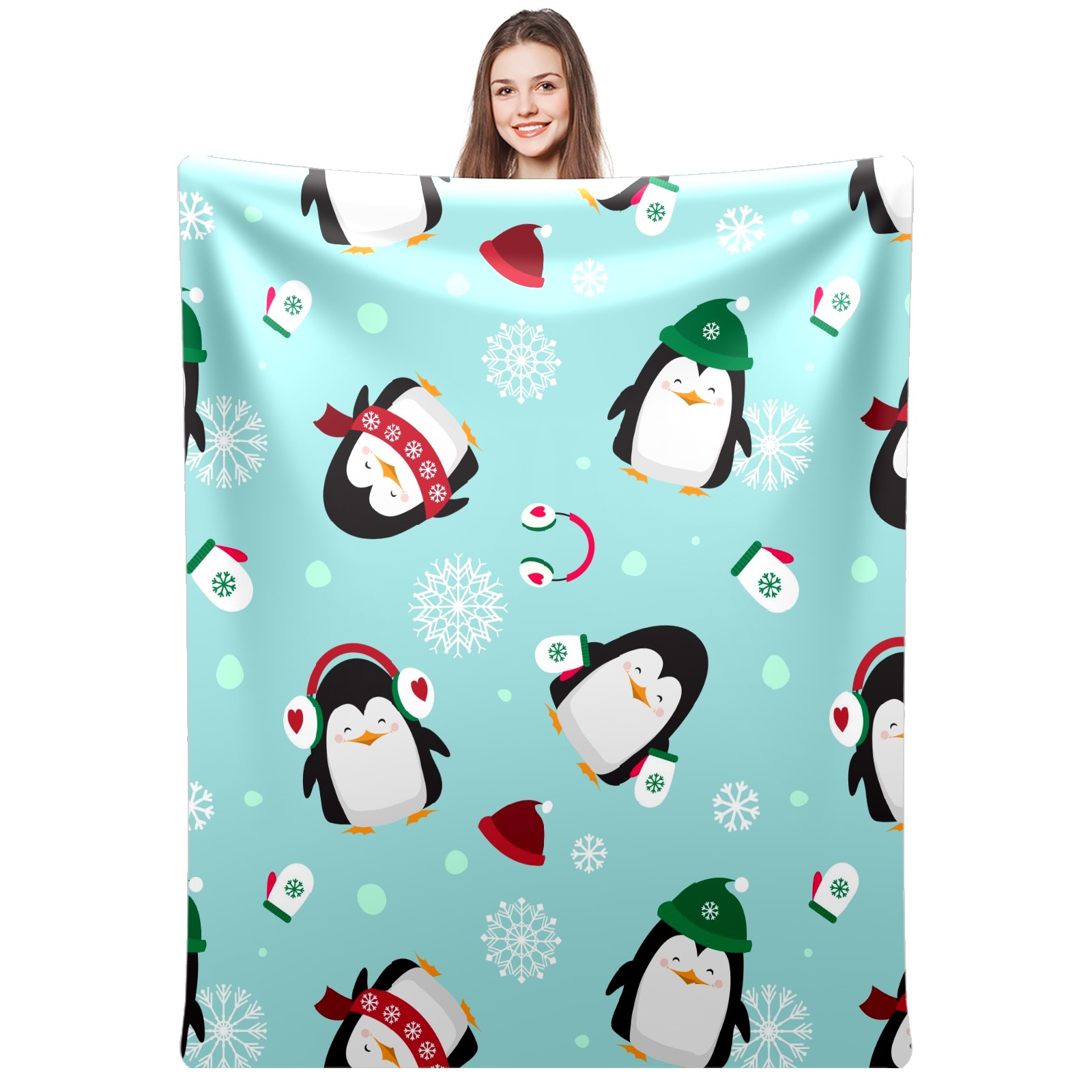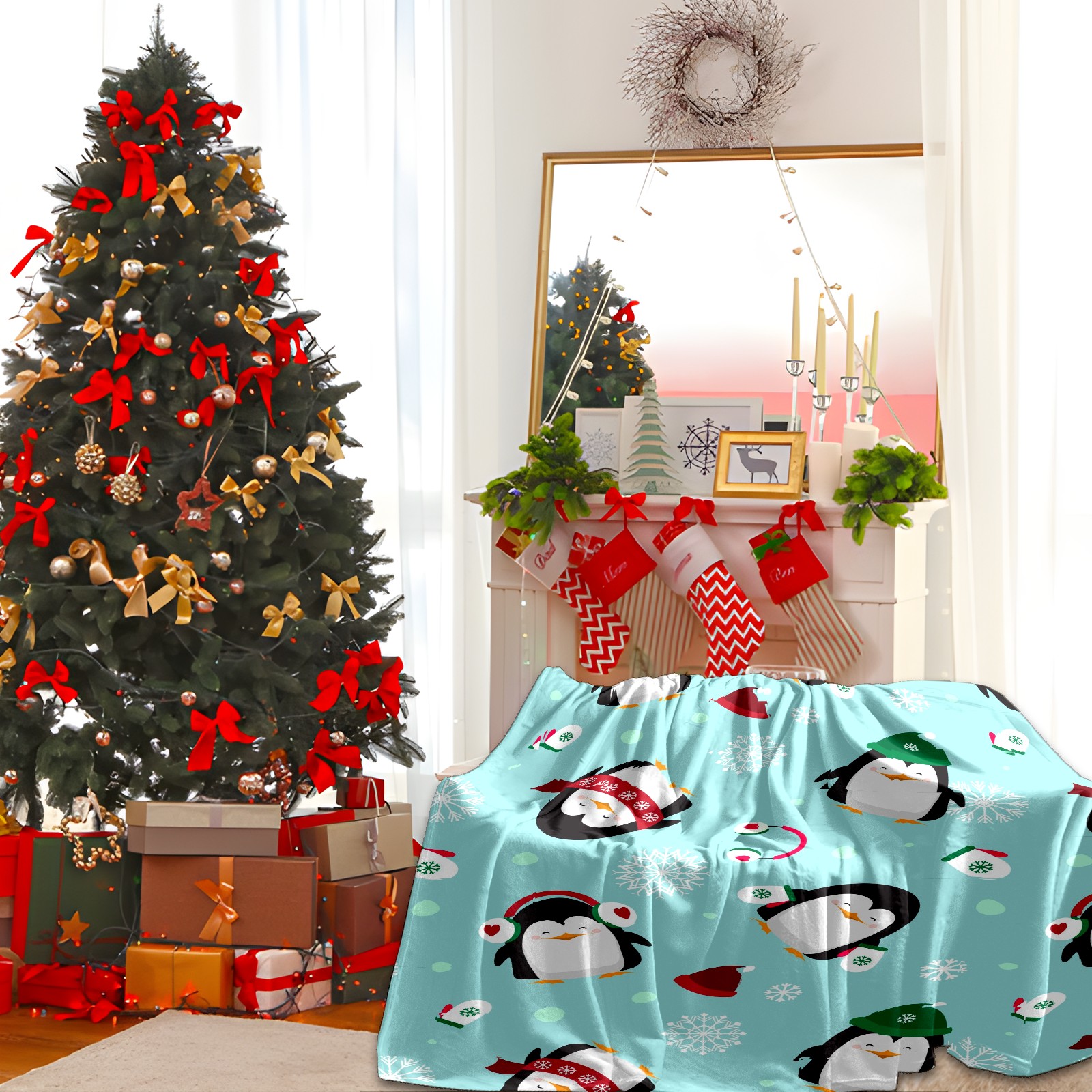 Flannel Blanket, Ultra-Soft Comfortable Home Decor Rug, The Perfect Comfort Gift for Both Men Women, Suitable for Beds, Sofas, Loungewear, and Travel 30x39in(Christmas Penguins Pattern)