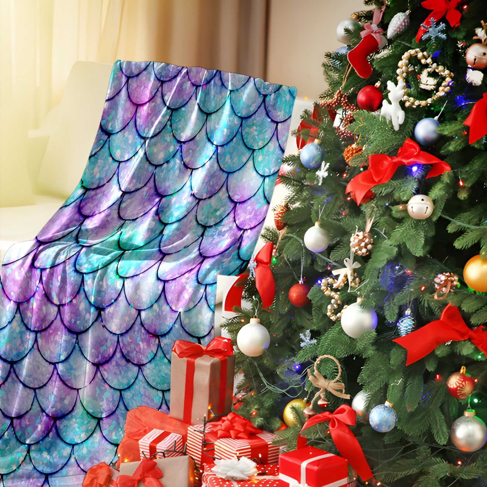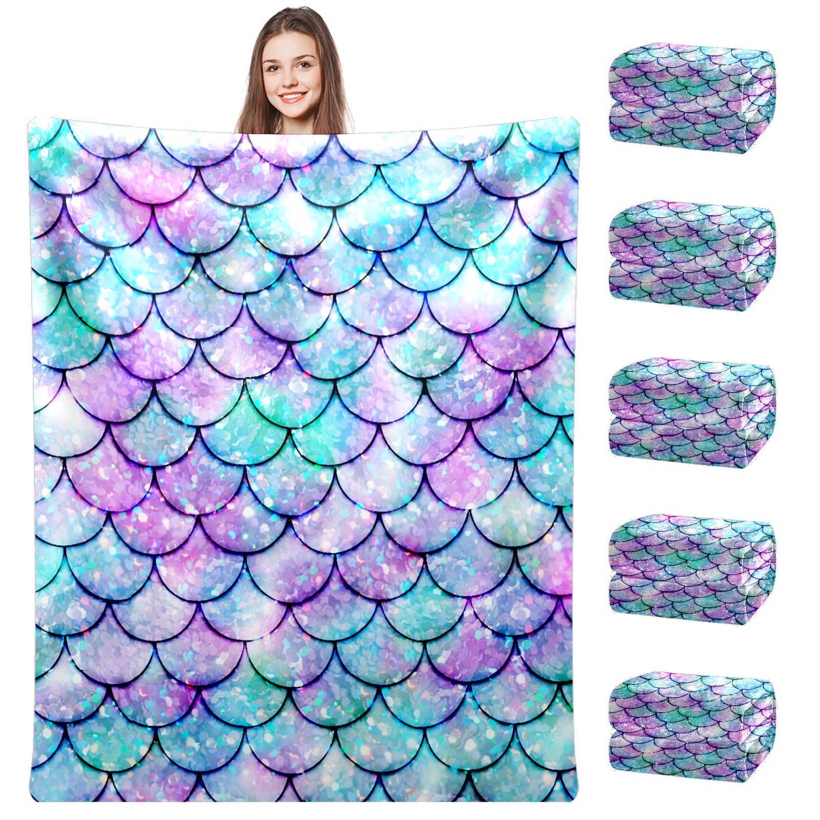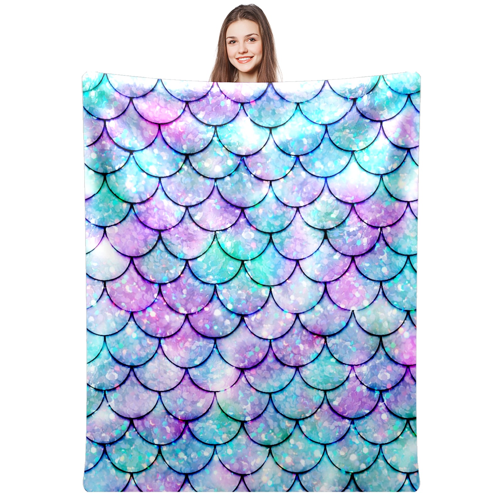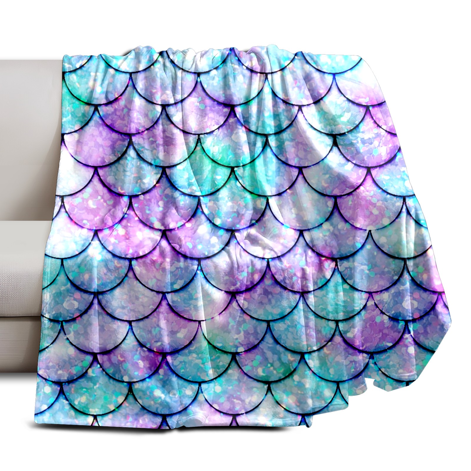 Flannel Blanket, Ultra-Soft Comfortable Home Decor Rug, The Perfect Comfort Gift for Both Men Women, Suitable for Beds, Sofas, Loungewear, and Travel 30x39in(Bling Mermaid Scales)